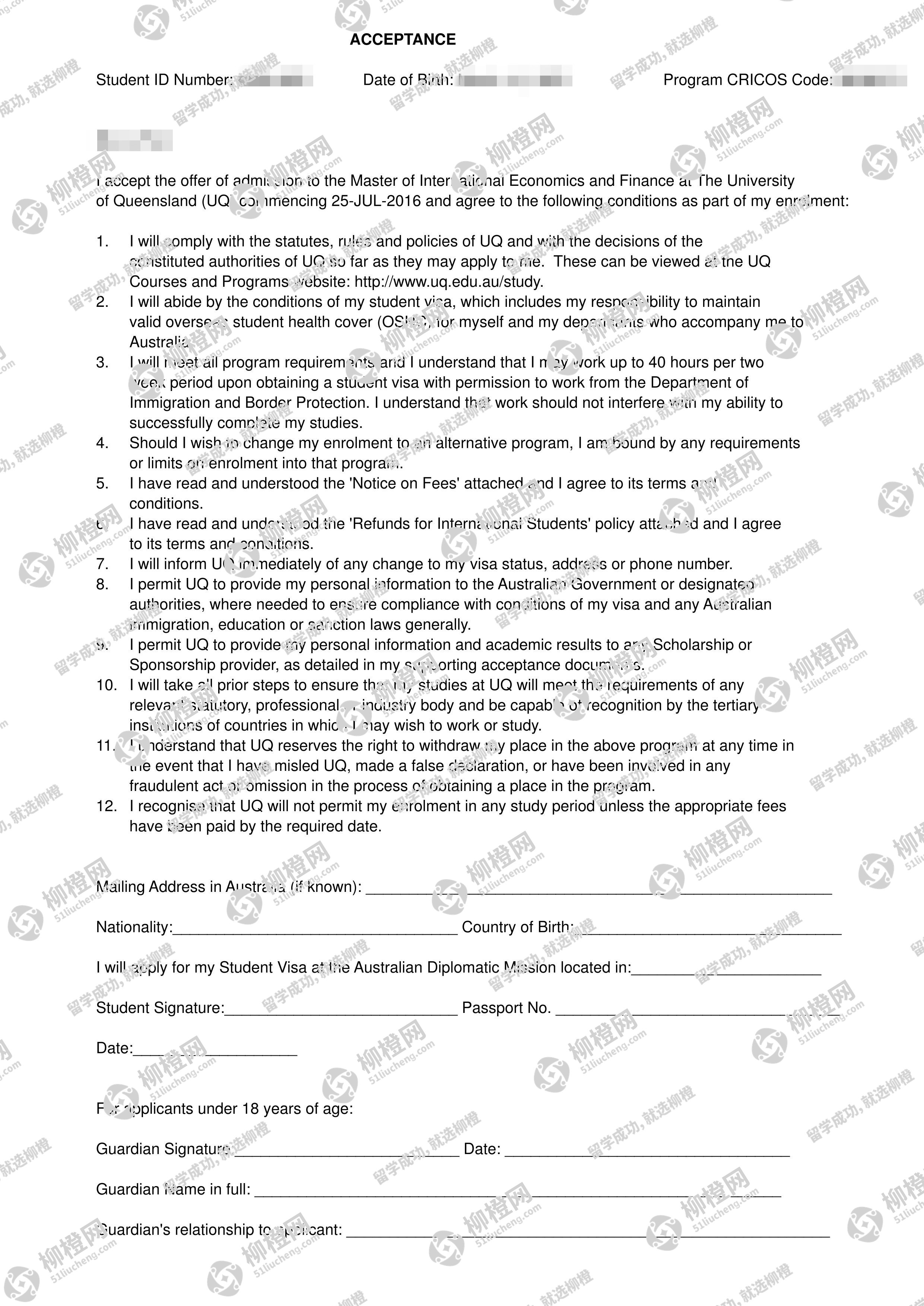 潘同学,大连大学英语专业学生,均分81分,在柳橙网专业老师的帮助下,成功拿到了澳洲顶级名校昆士兰大学的offer