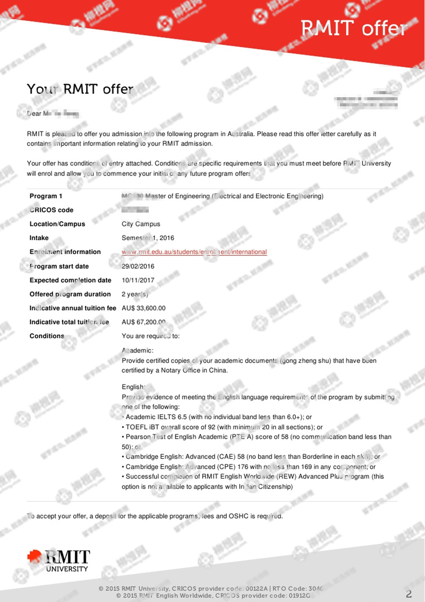 华中科技大学热能与动力工程专业的封同学,在柳橙网的帮助下获澳洲皇家墨尔本理工大学offer。