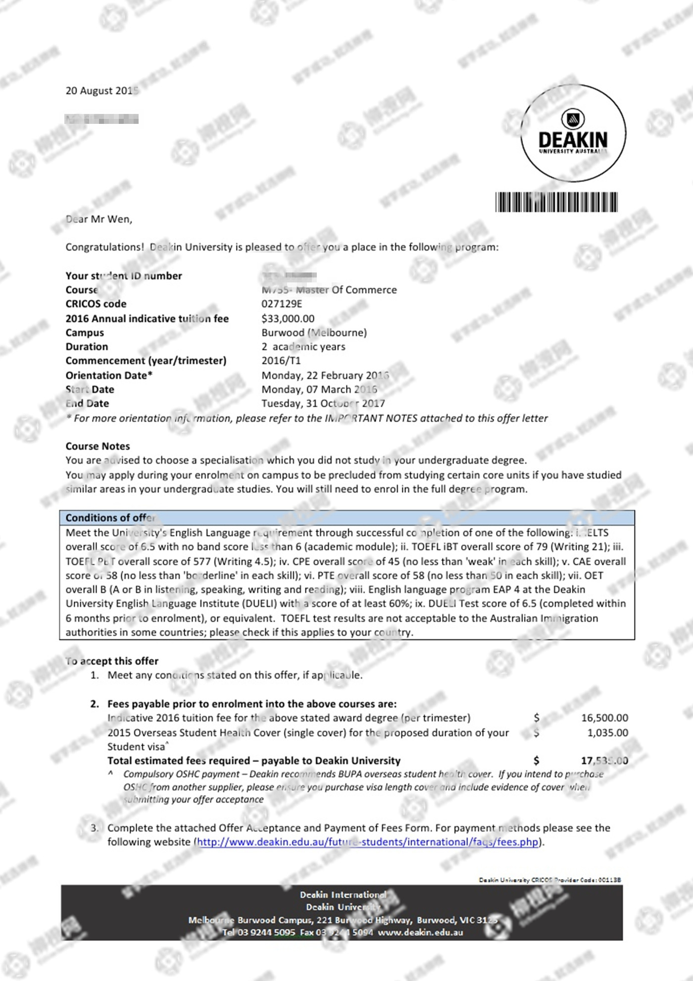 重庆师范大学广播电视编导专业的文同学,在柳橙网的帮助下获澳洲迪肯大学offer。