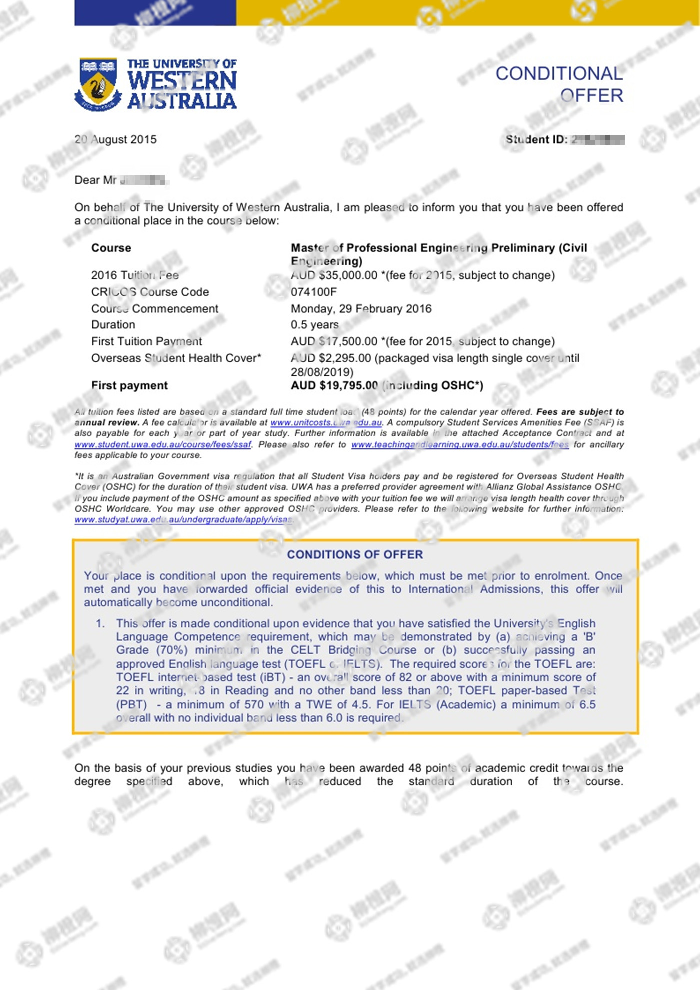 sahmyook university建筑学专业的陈同学,在柳橙网的帮助下获西澳大利亚大学offer。