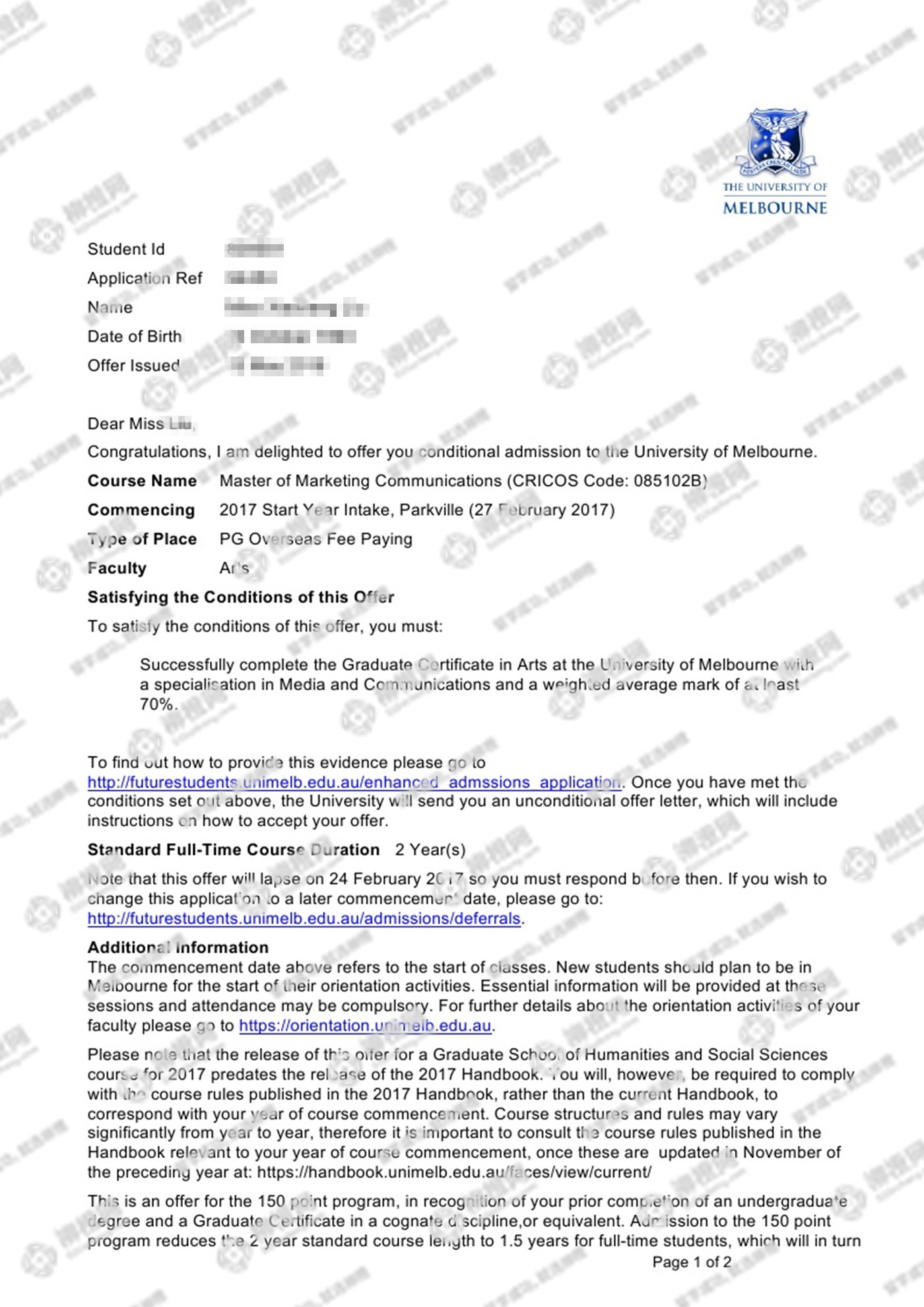 华中农业大学艺术设计专业的柳同学,在柳橙网的帮助下获澳洲墨尔本大学offer。