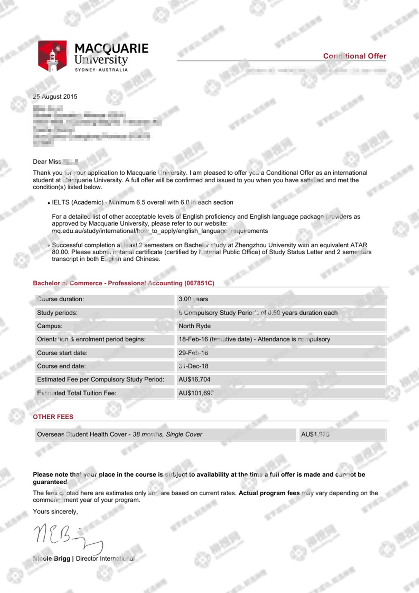 郑州大学新闻与传播专业的季同学,在柳橙网的帮助下获澳洲麦考瑞大学offer。