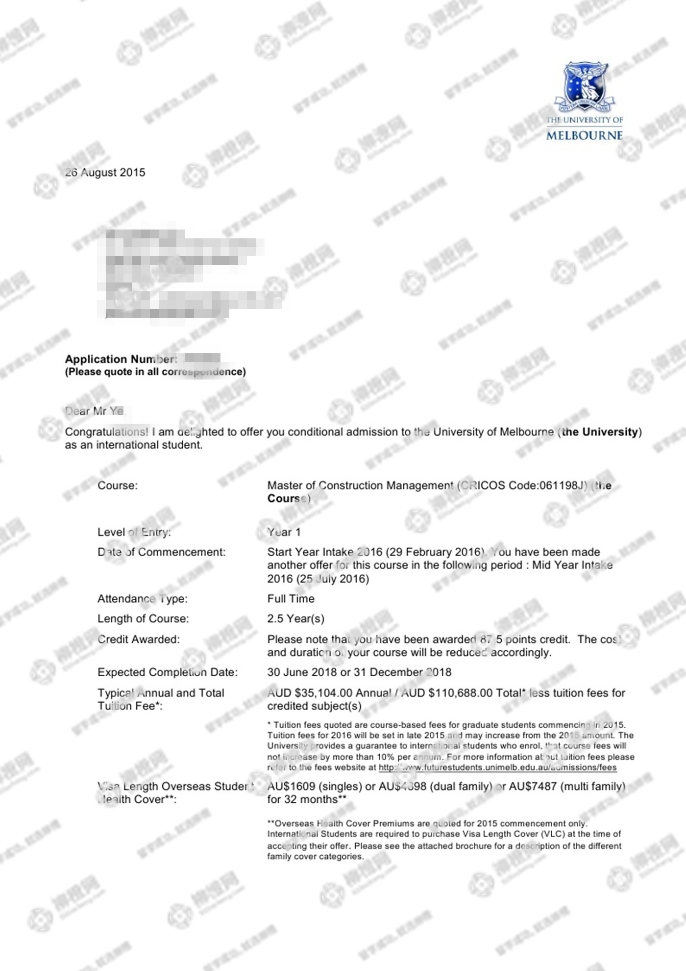 浙江大学宁波理工学院工程管理专业的叶同学,在柳橙网的帮助下获澳洲墨尔本大学offer。