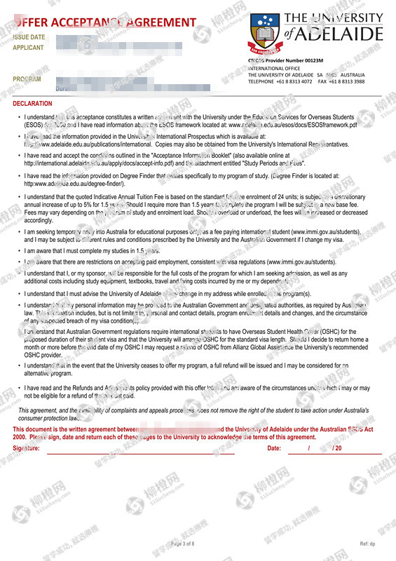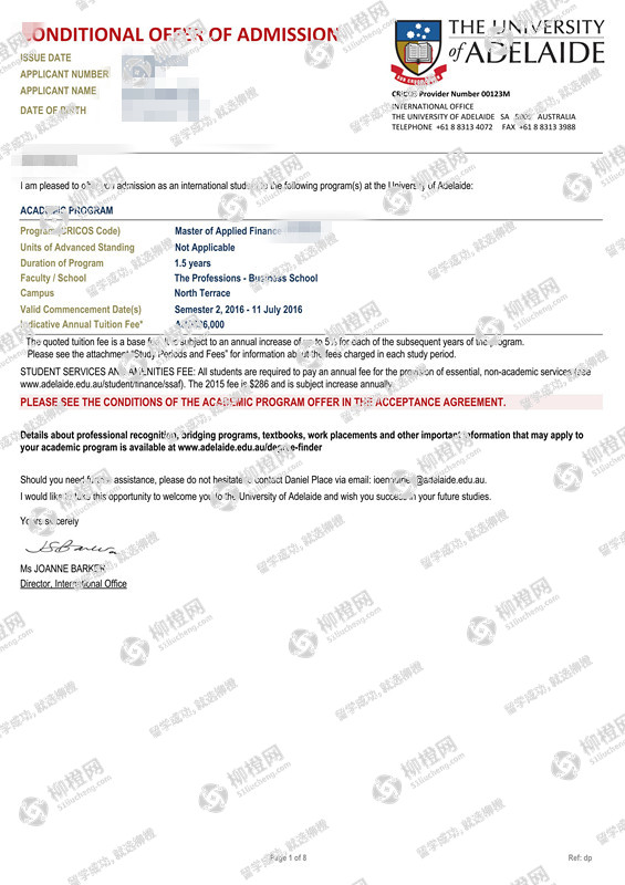 湖南农业大学管理学 电子商务专业的孙同学,在柳橙网的帮助下获澳洲阿德莱德大学offer。