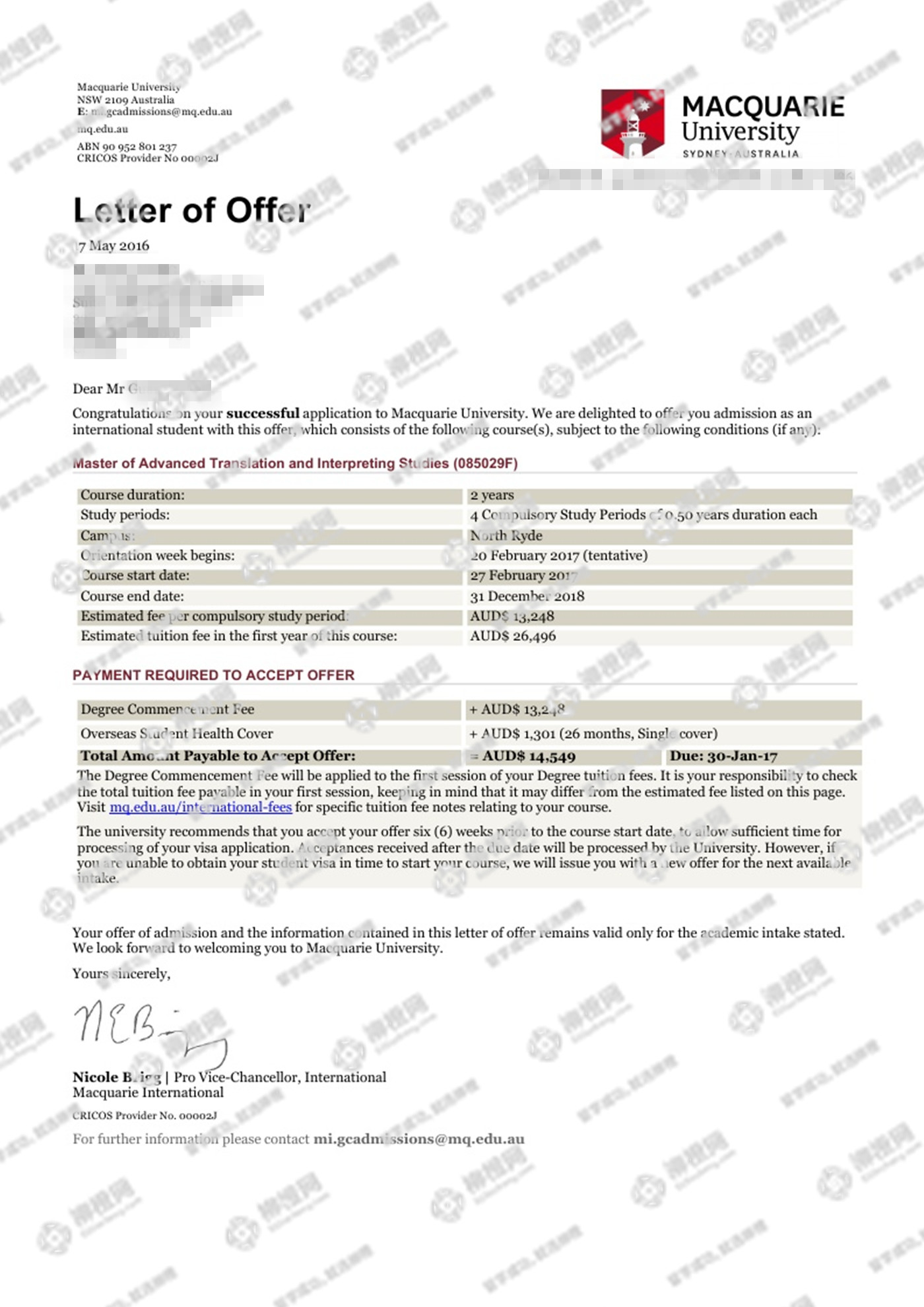 解放军信息工程大学通信工程专业的杨同学,在柳橙网的帮助下获澳洲麦考瑞大学offer。