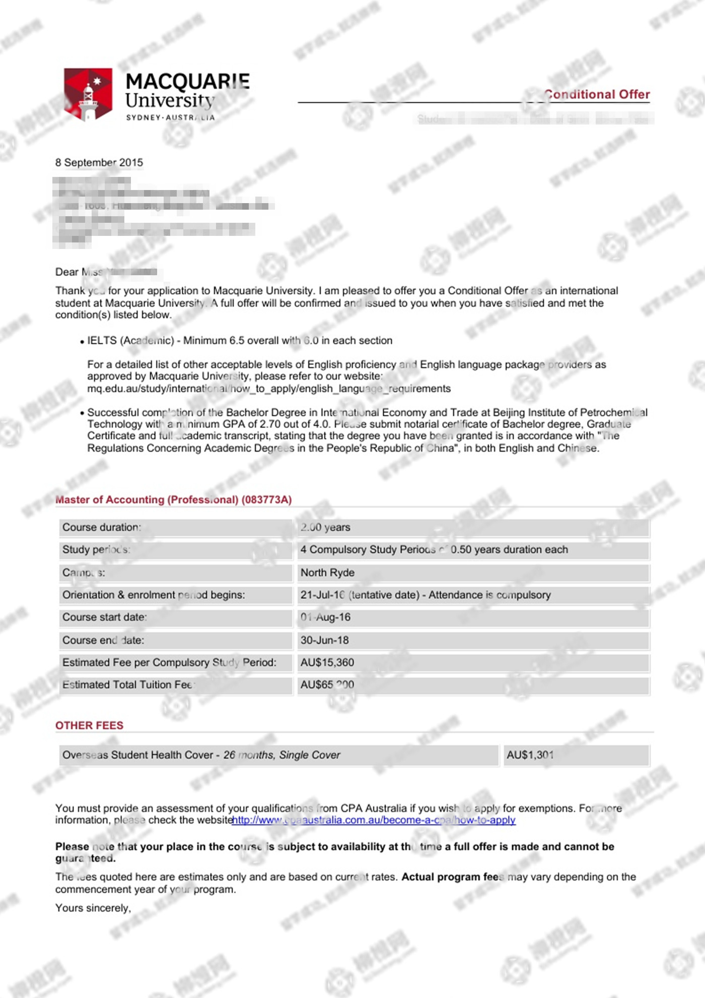 北京石油化工学院国际经济与贸易专业的乔同学,在柳橙网的帮助下获澳洲麦考瑞大学offer。