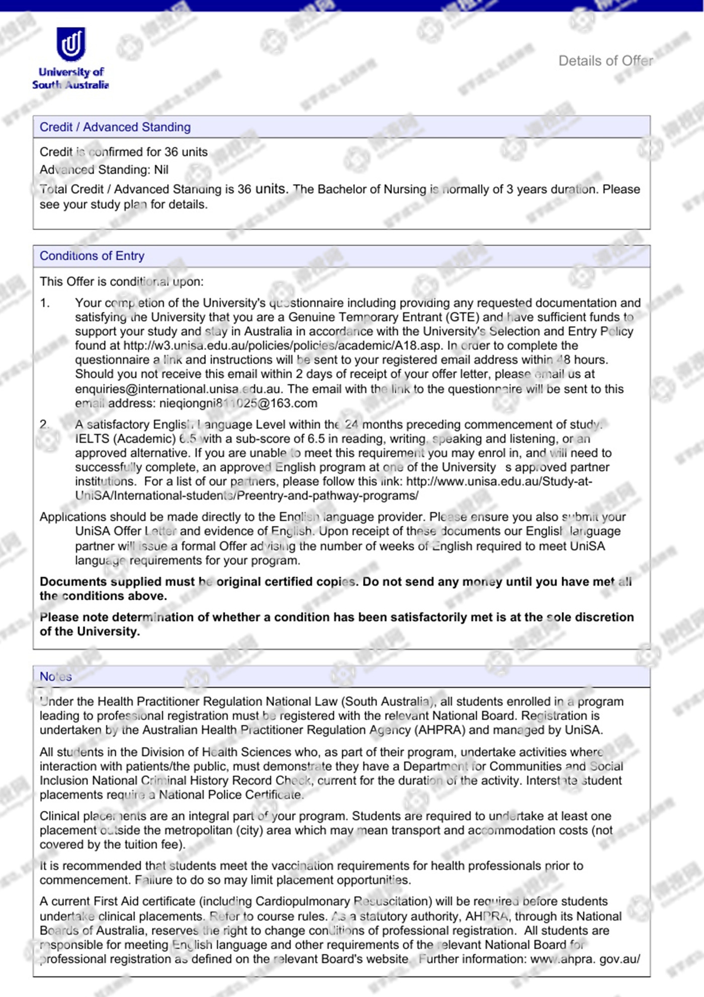 武汉大学护理学专业的聂同学,在柳橙网的帮助下获澳洲南澳大学offer。