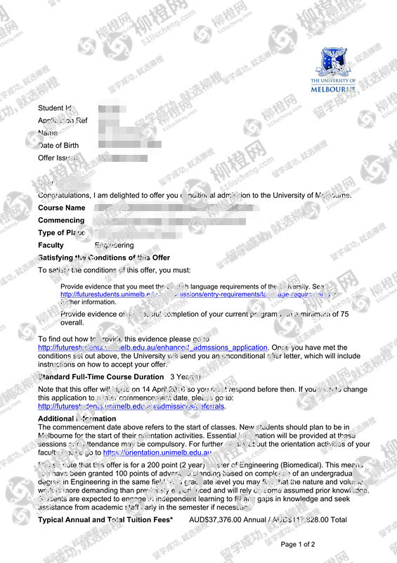 西北农林科技大学生物工程专业的郑同学,在柳橙网的帮助下获墨尔本大学offer。