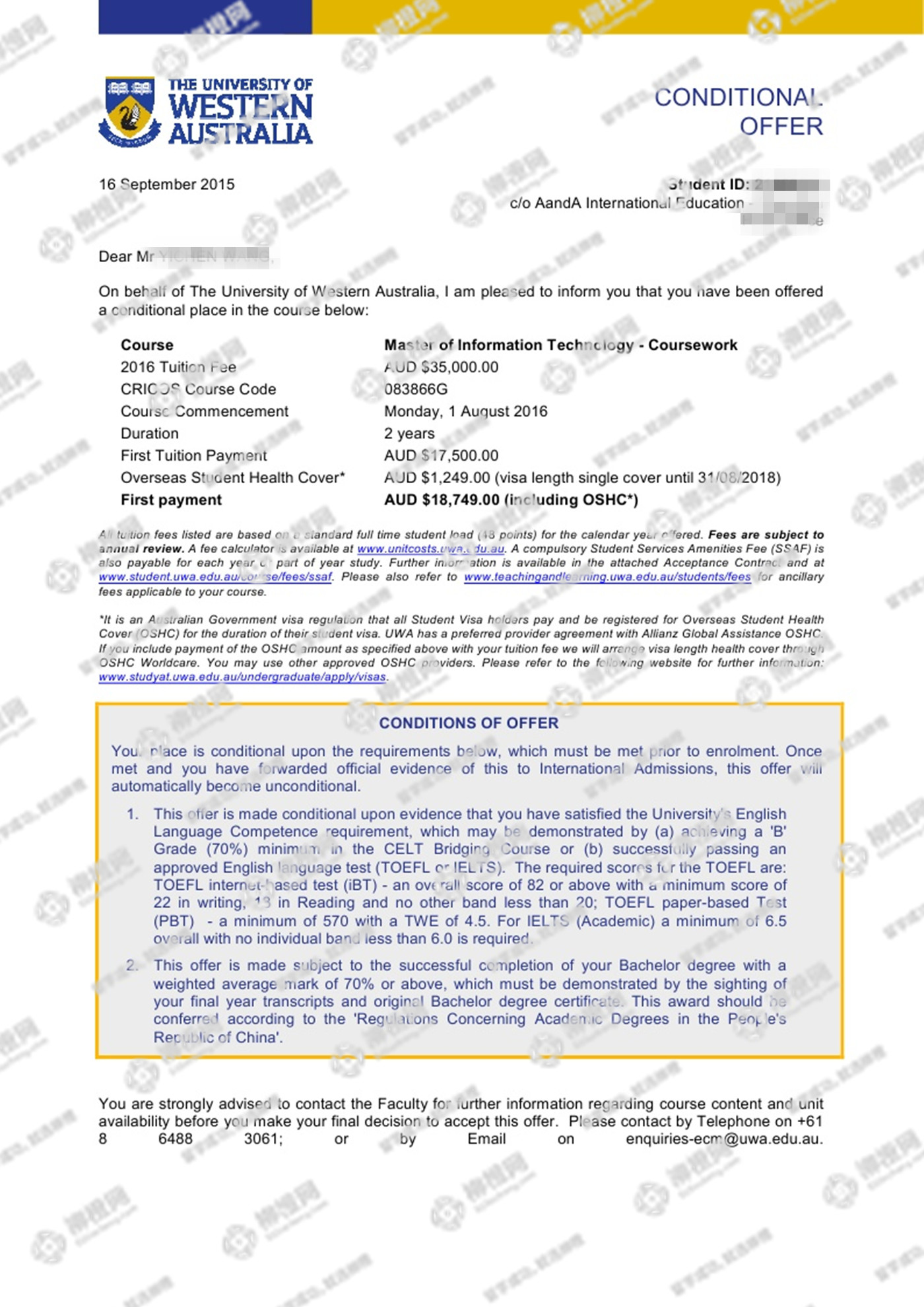 西安交通大学自动化专业的王同学,在柳橙网的帮助下获西澳大利亚大学offer。