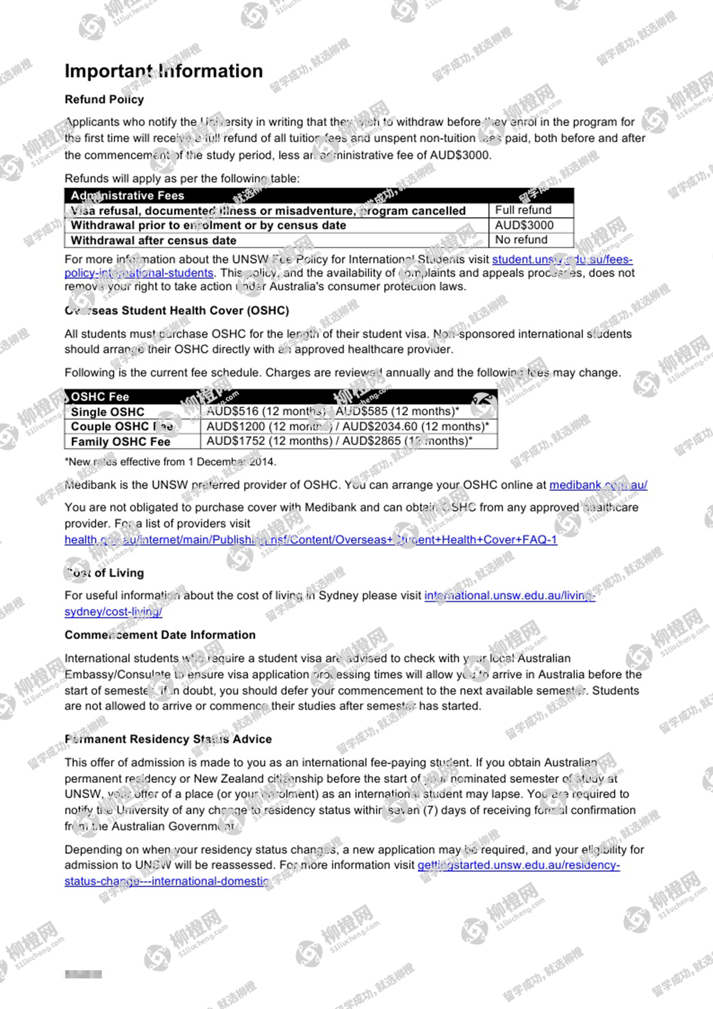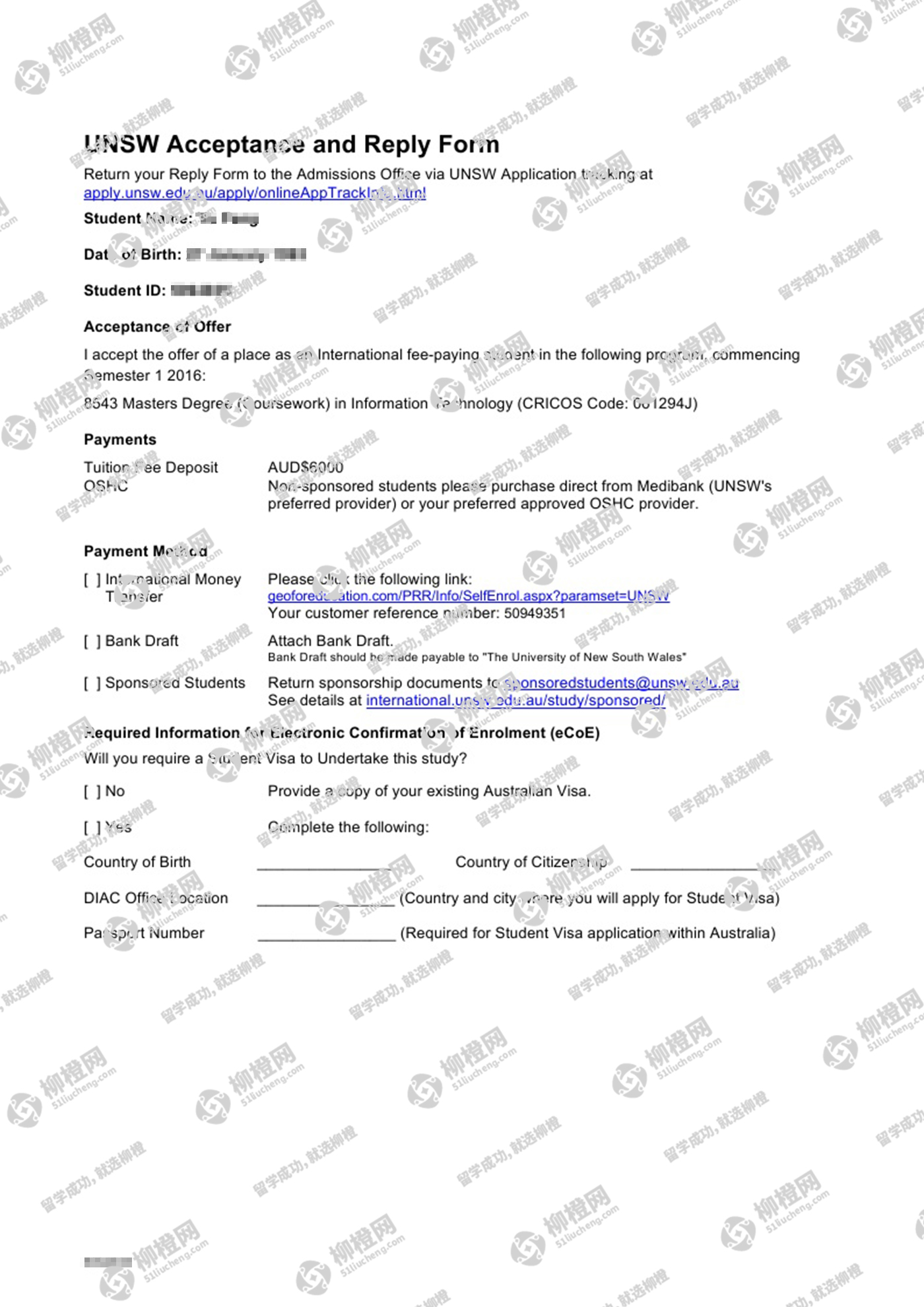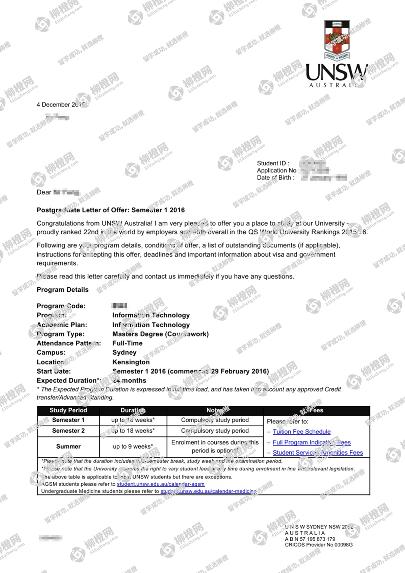 华中科技大学热能与动力工程专业的封同学,在柳橙网的帮助下获新南威尔士大学offer。