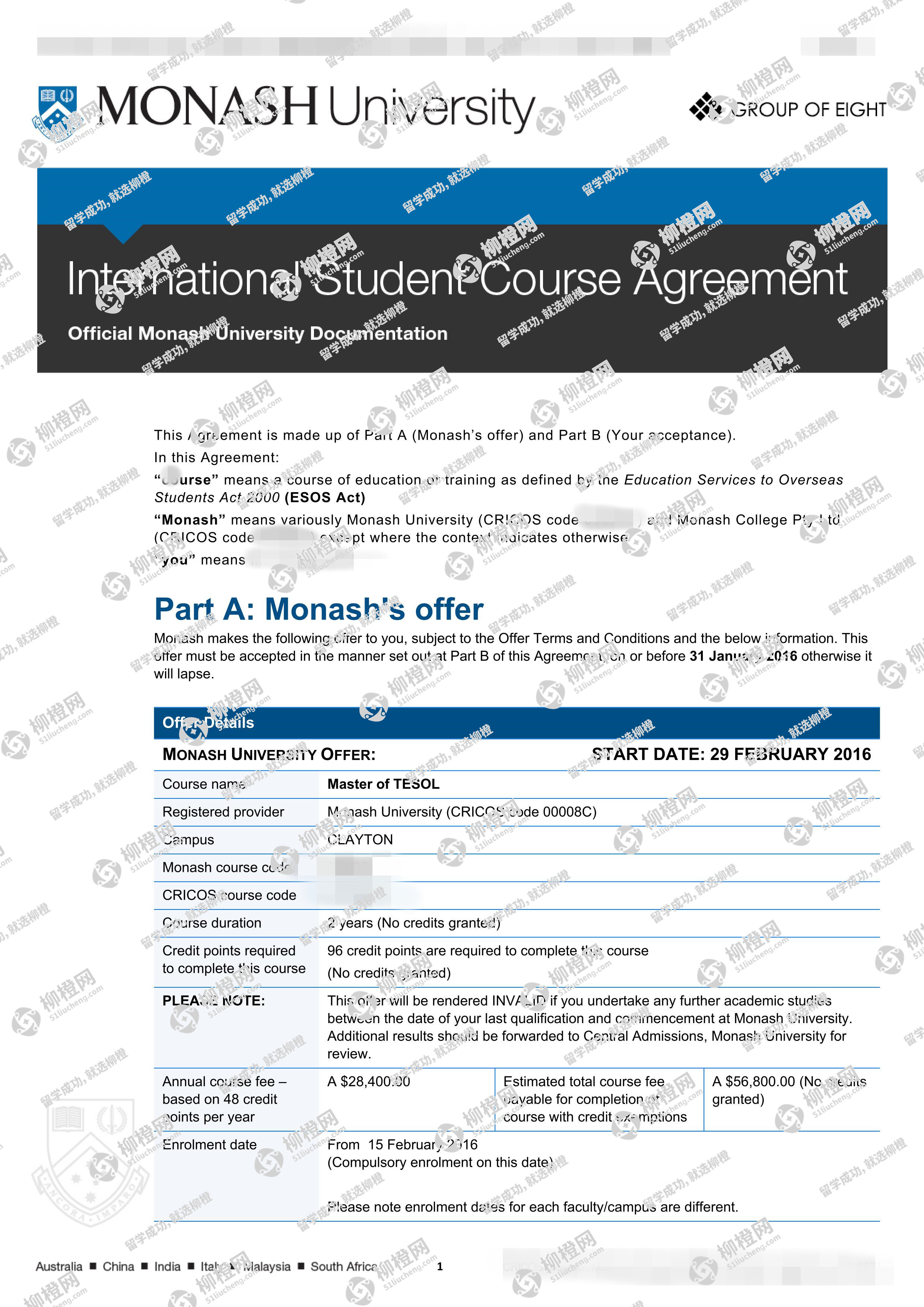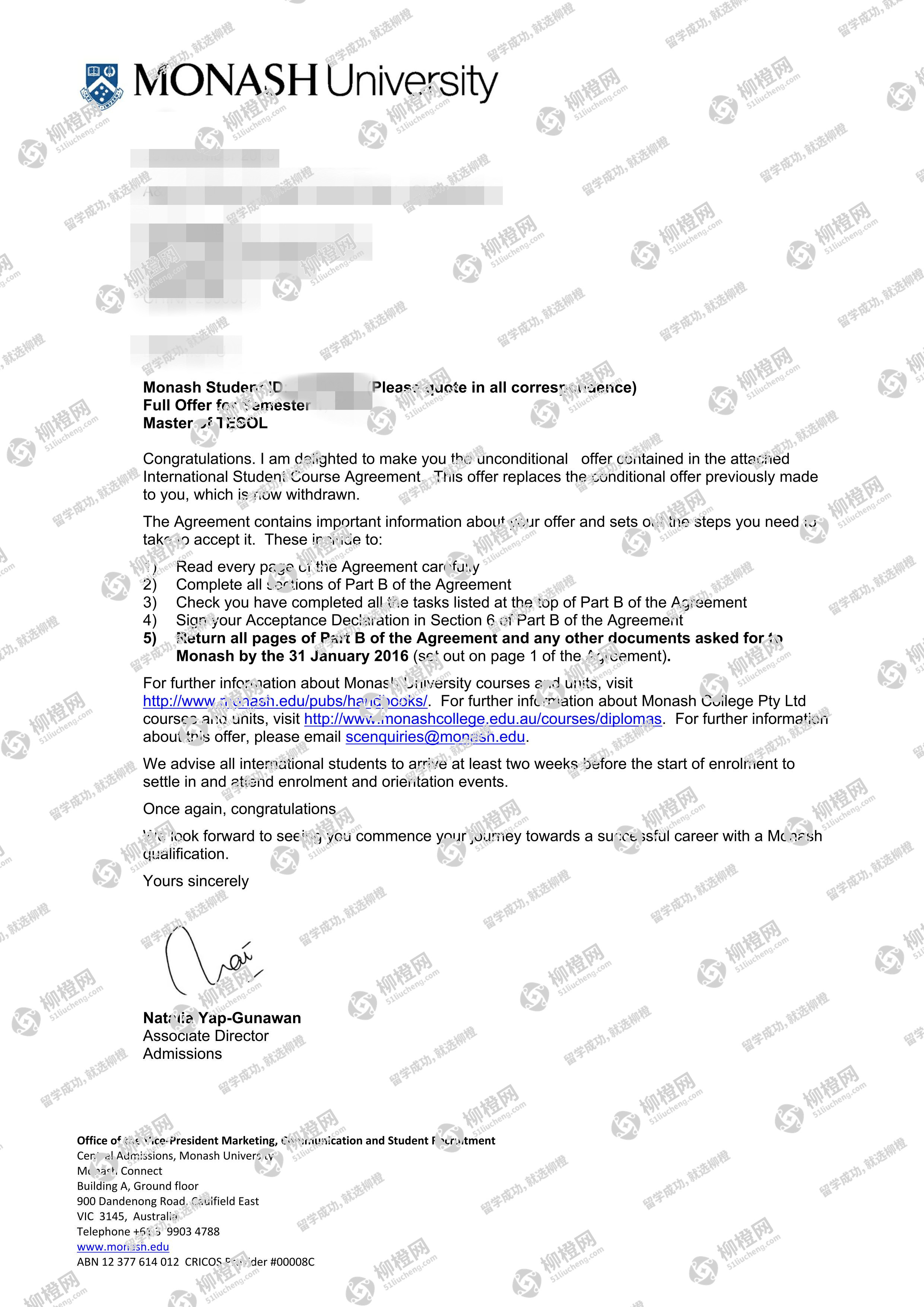 北京外国语大学英语专业的付同学,在柳橙网的帮助下获莫纳什大学offer。