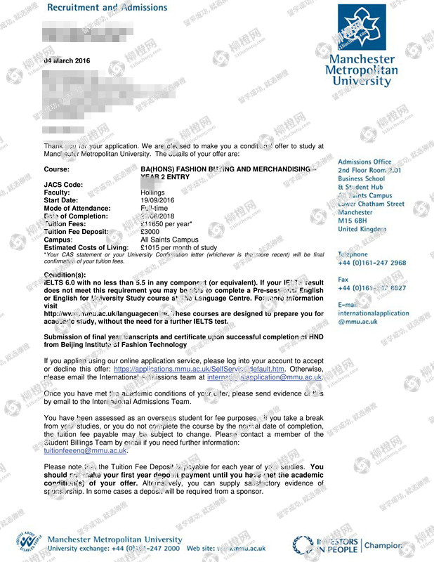 北京服装学院服装设计专业的陆同学,在柳橙网的帮助下获曼彻斯特城市大学offer。