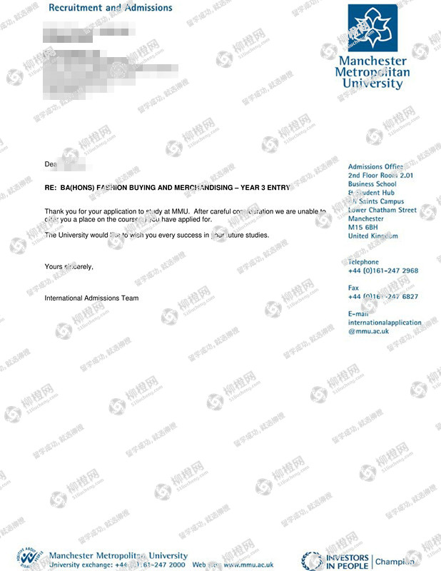 北京服装学院服装设计专业的陆同学,在柳橙网的帮助下获曼彻斯特城市大学offer。