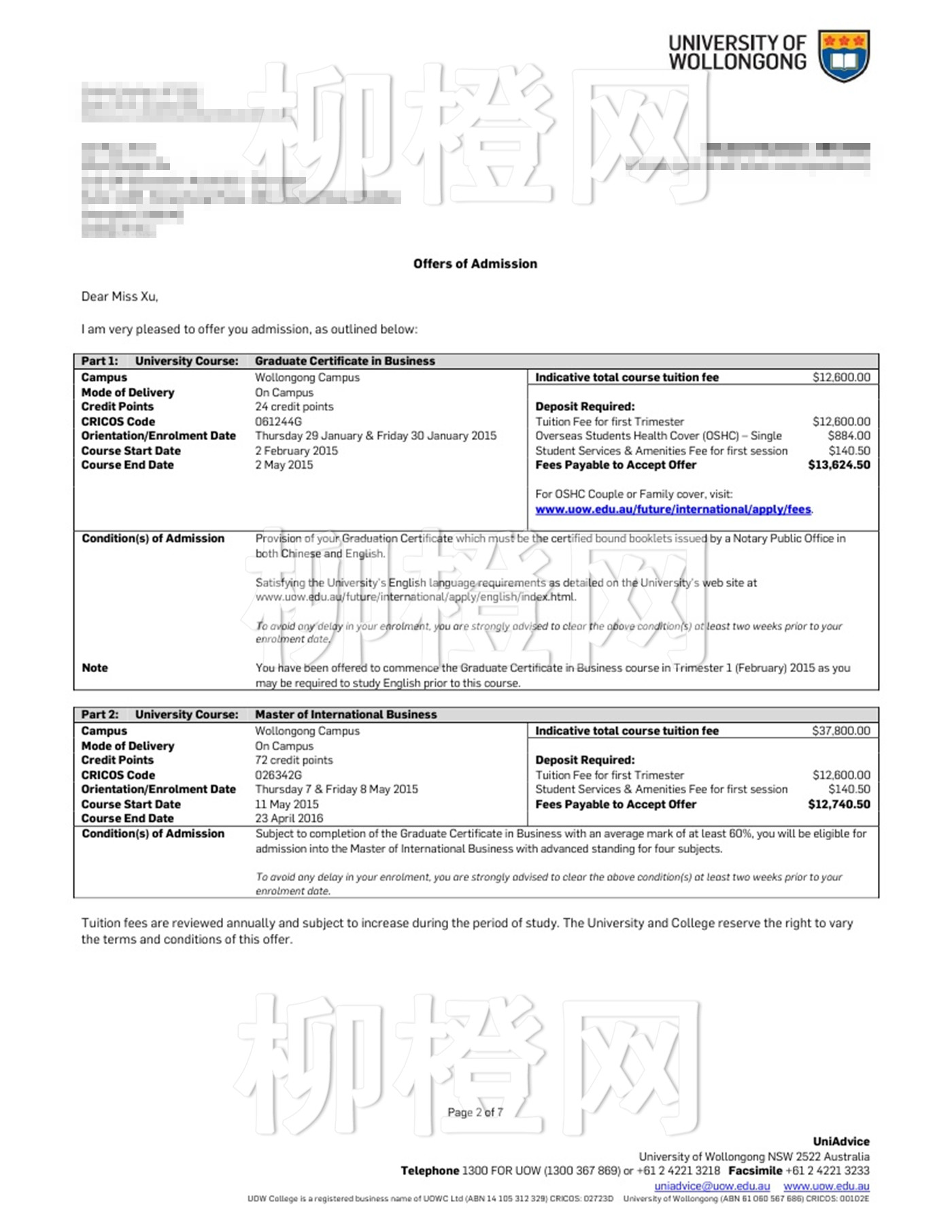 精准的定位帮助徐同学低分高就,GPA72成功申请澳洲四星大学。