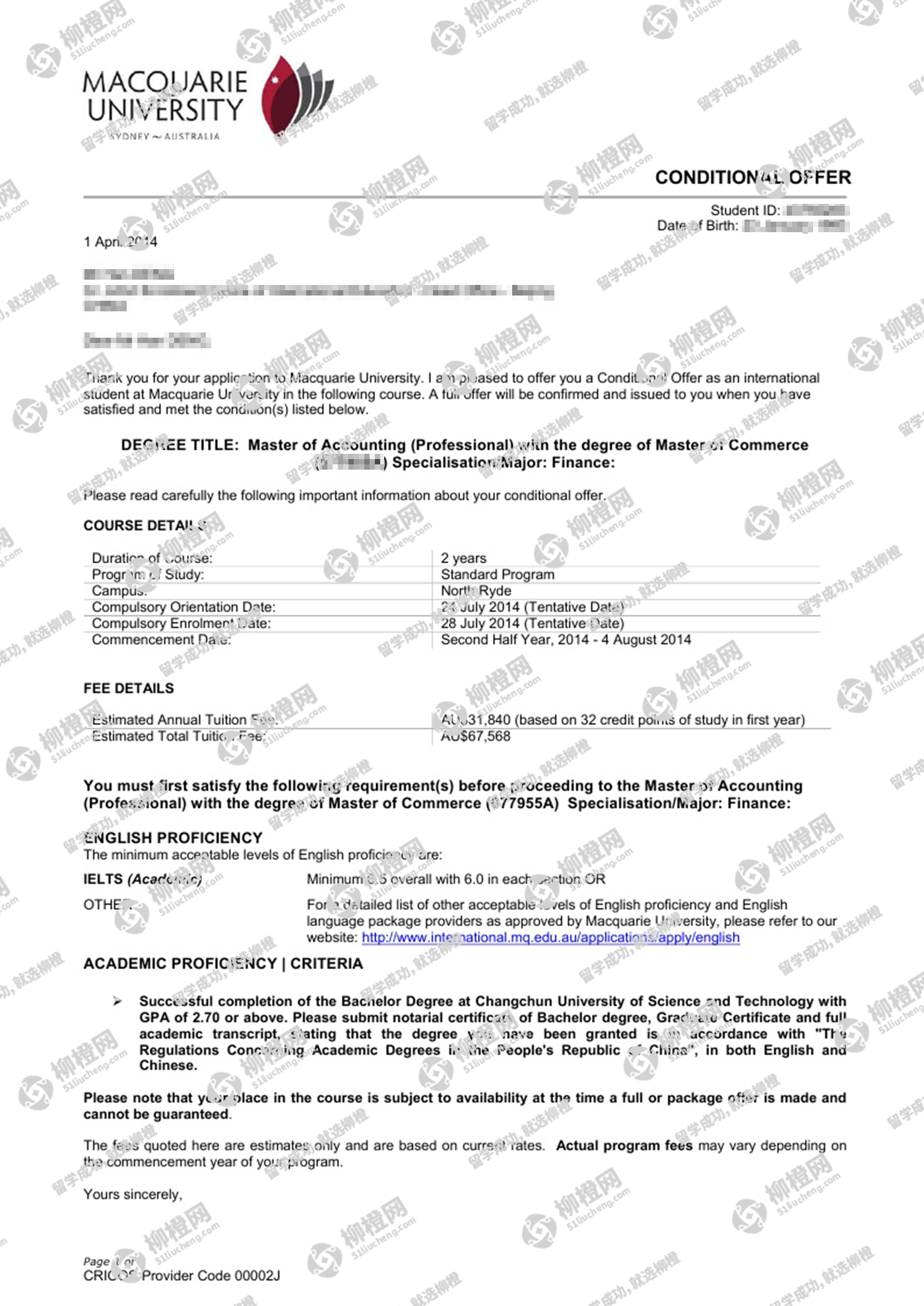 长春理工大学经济学专业的邓同学,在柳橙网的帮助下获麦考瑞大学offer。