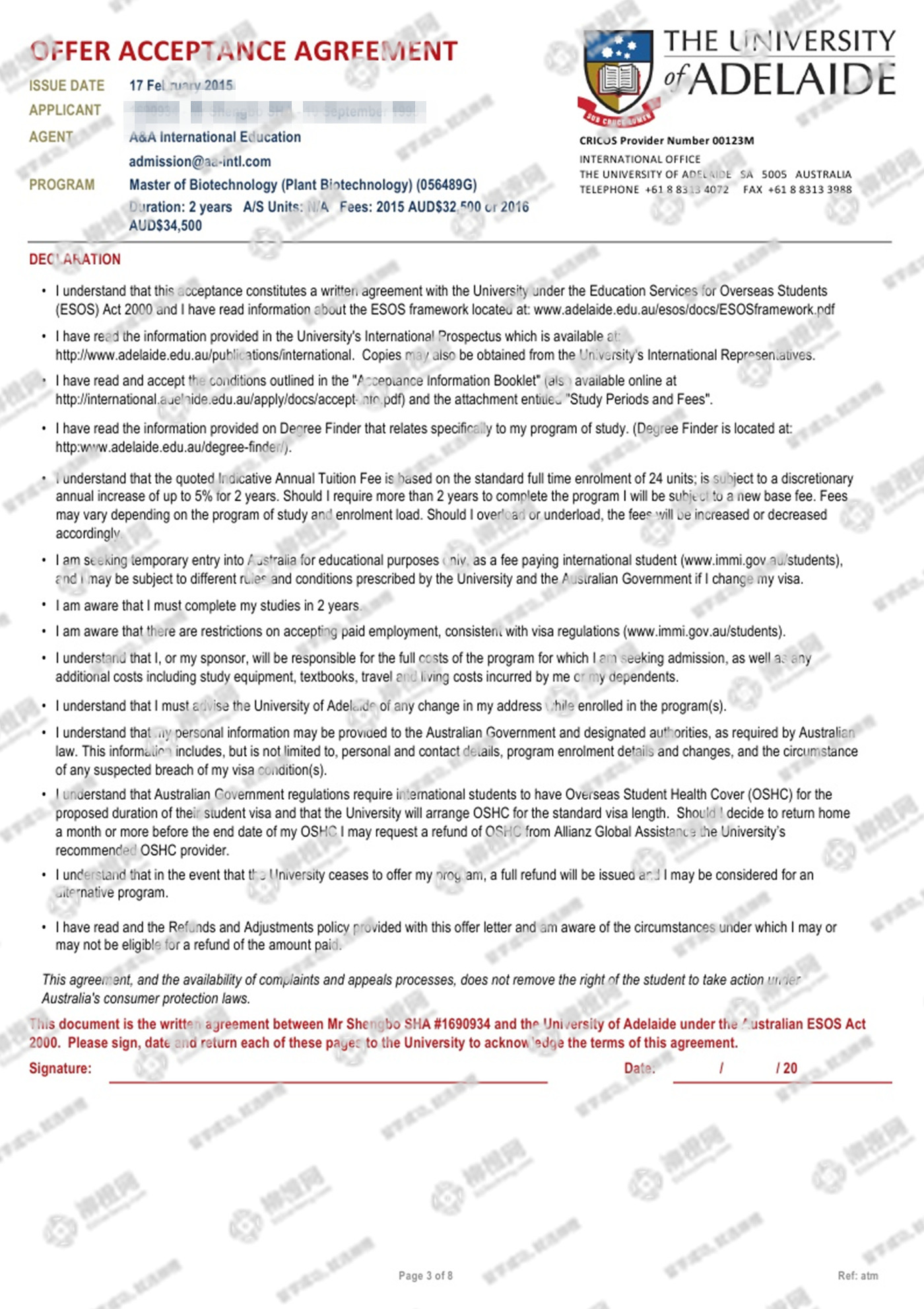 湖南农业大学种子科学与工程专业的沙同学,在柳橙网的帮助下获澳洲阿德莱德大学offer。