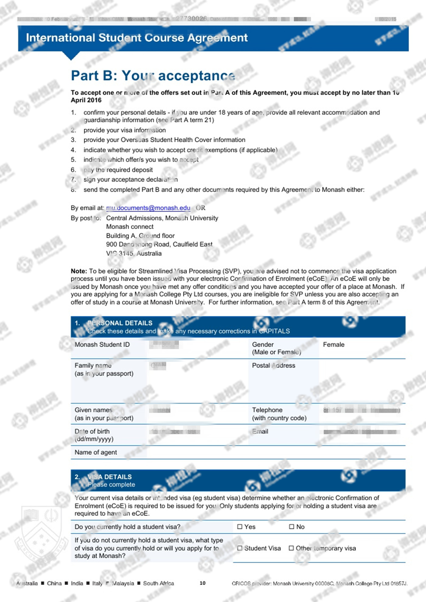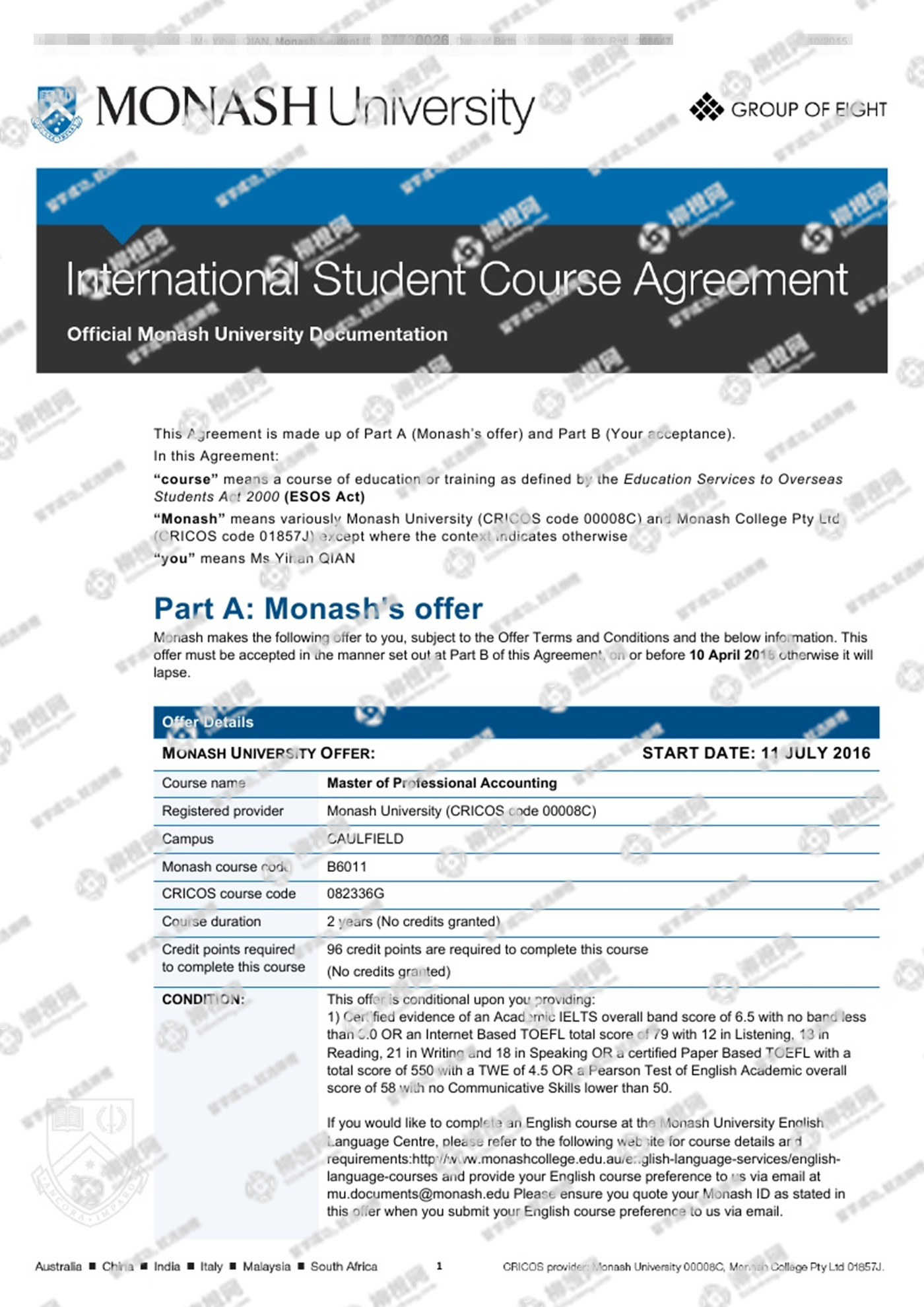 在柳橙网老师的专业指导下成功的申请到了澳洲莫纳什大学,全程高效透明,值得推荐