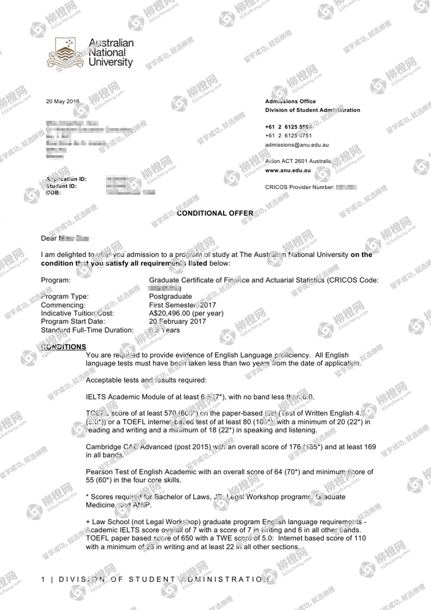 郭同学,GPA80,通过柳橙网成功申请到澳国立
