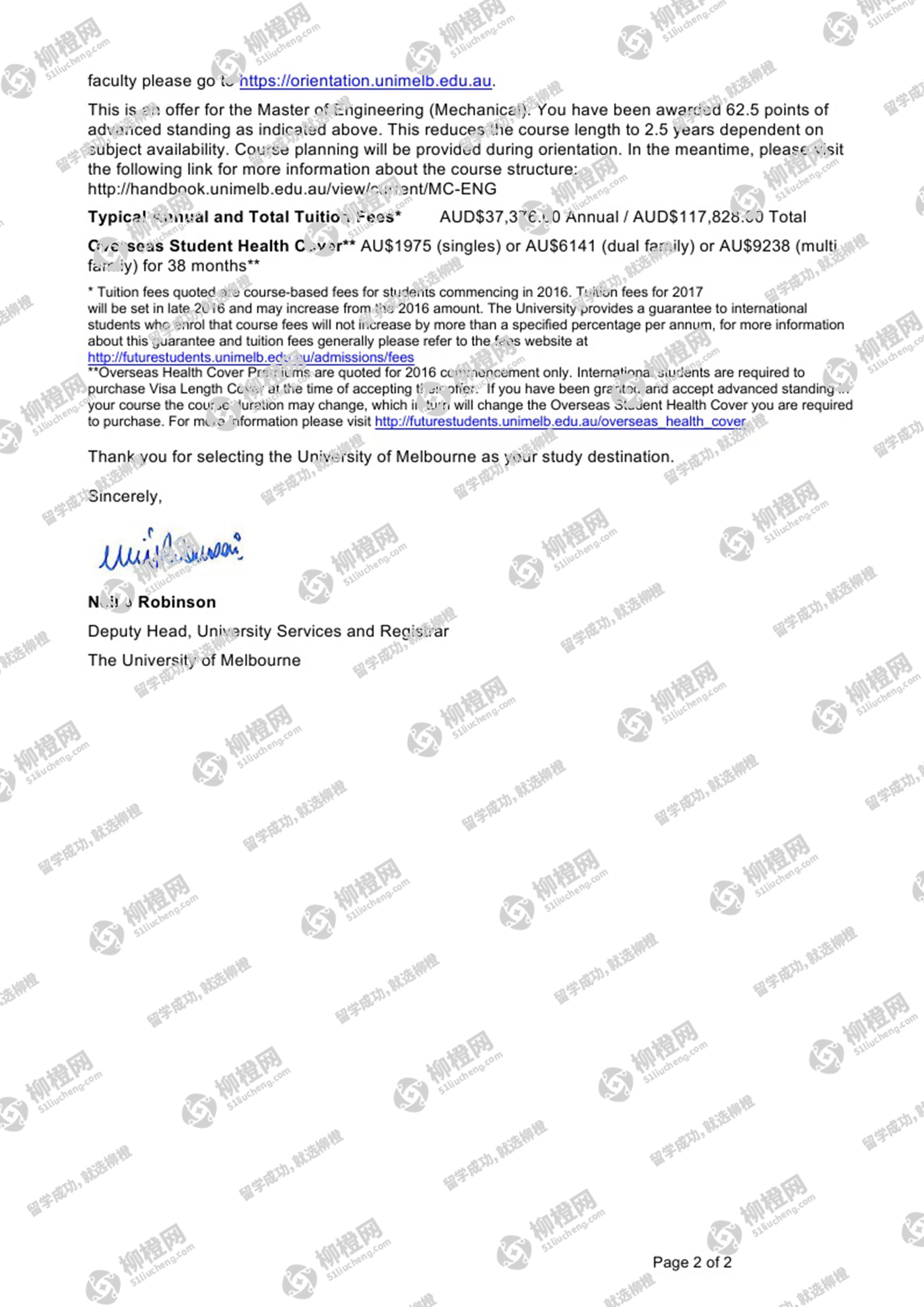 在柳橙网老师的专业指导下成功的申请到了澳洲墨尔本大学,全程高效透明,值得推荐