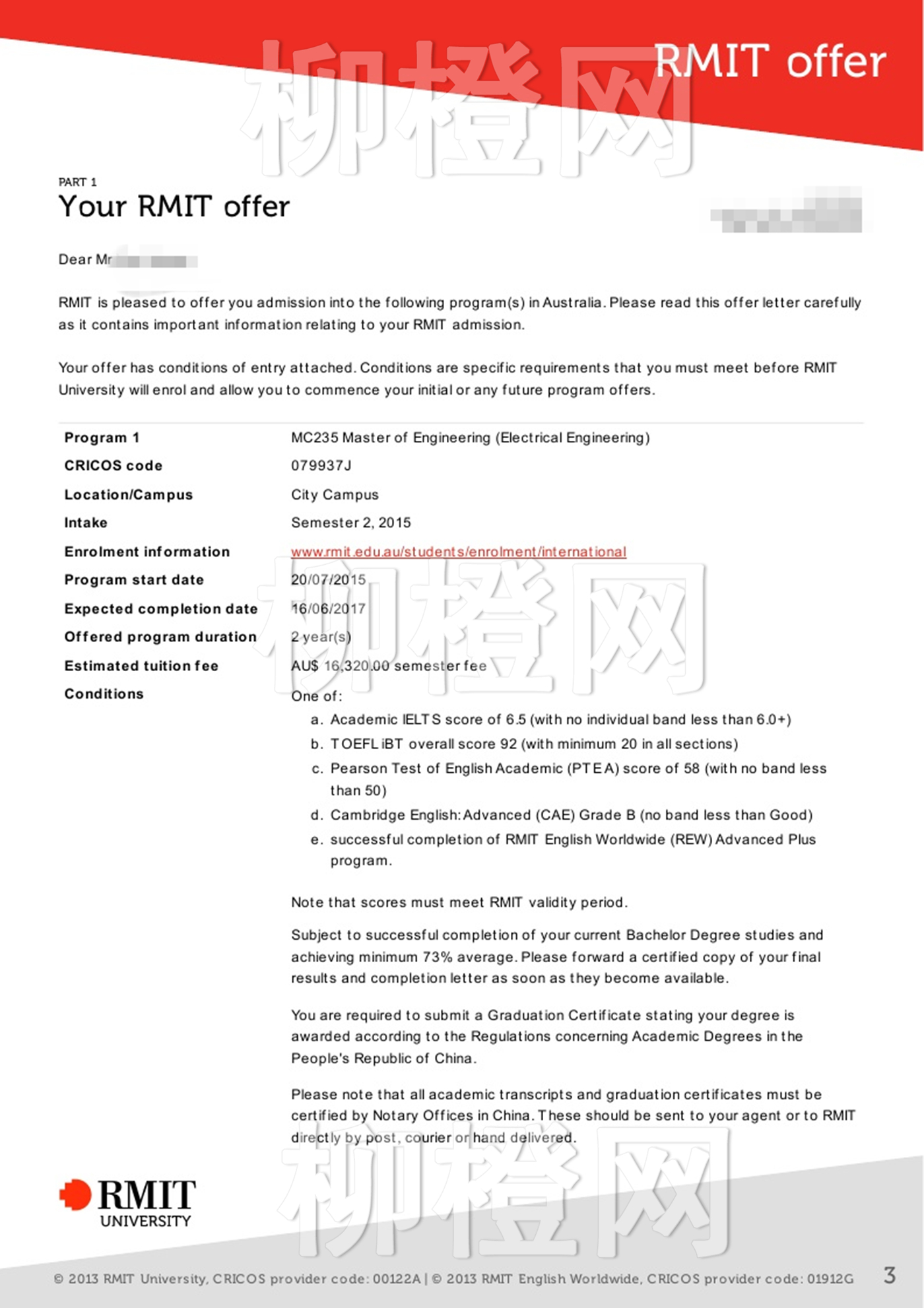 国内双非院校背景的黄同学,柳橙运用了互联网留学的优势,高效的服务,专业的指导,帮助学生扬长避短,顺利拿到了澳大利亚非常著名的皇家墨尔本理工的OFFER