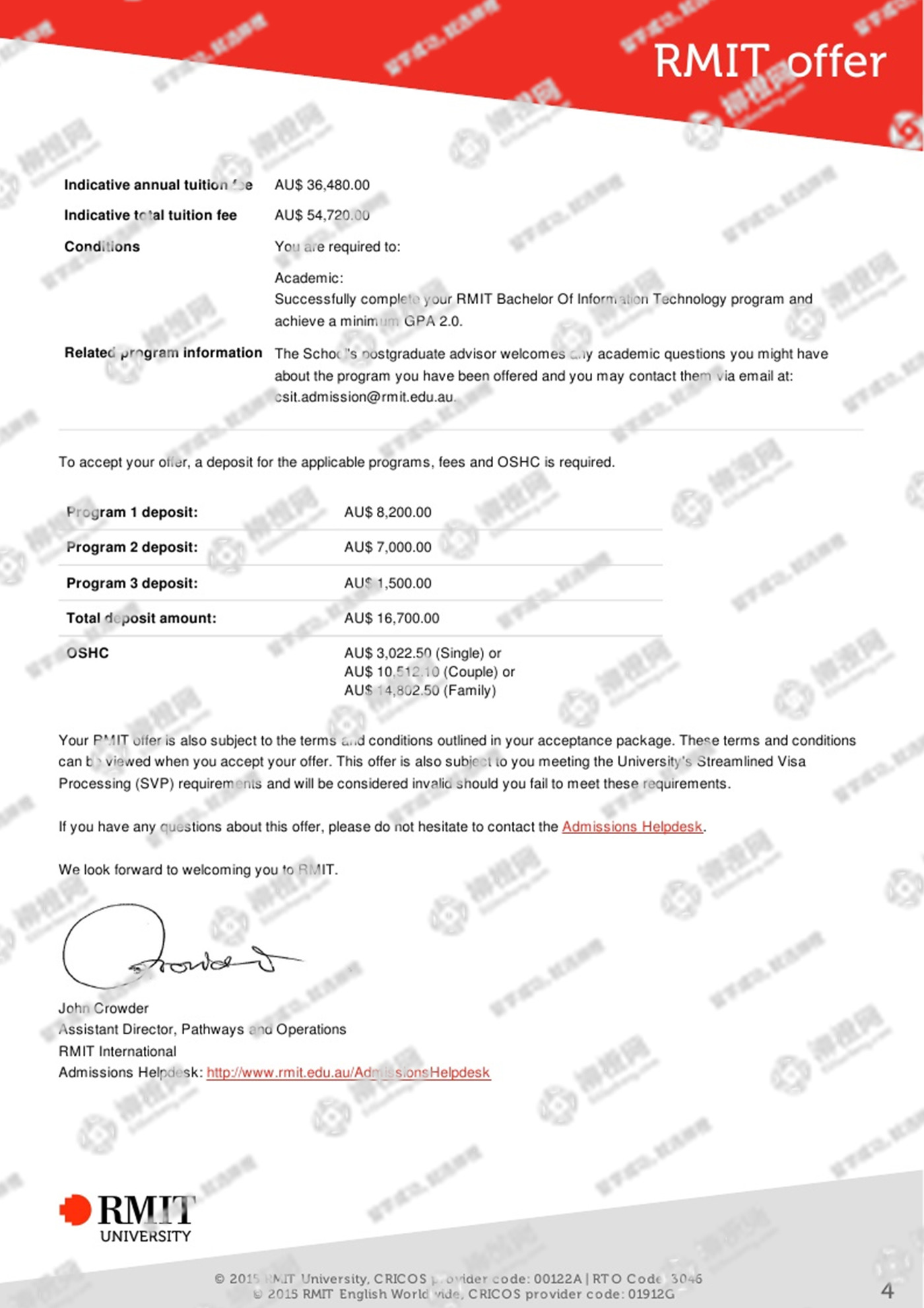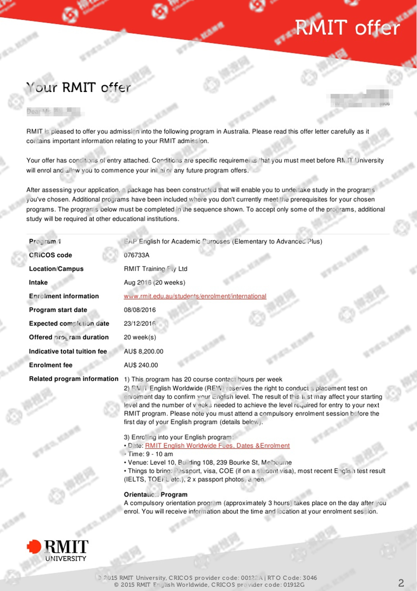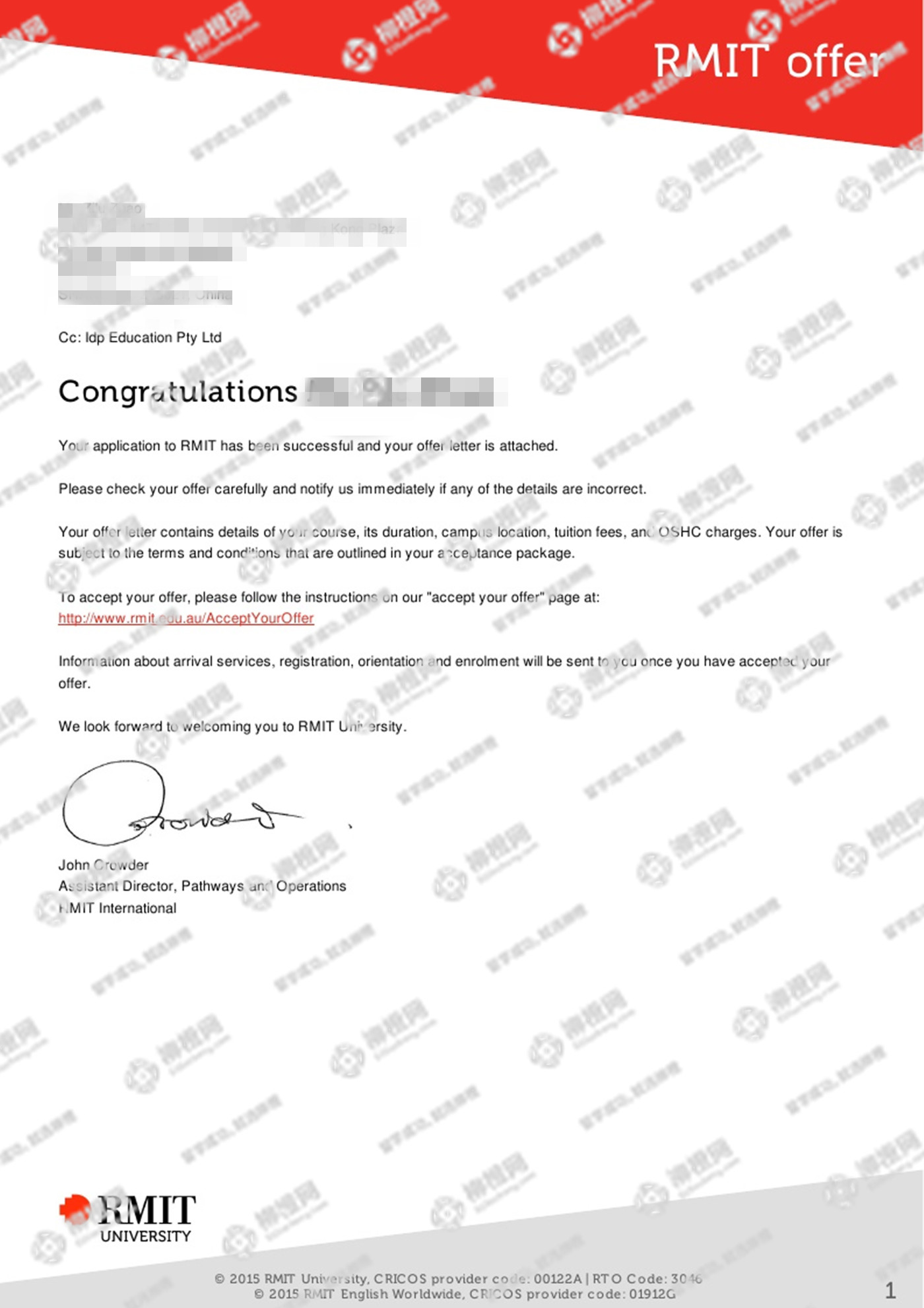 赵同学,GPA86,通过柳橙网成功申请到澳洲皇家墨尔本理工大学