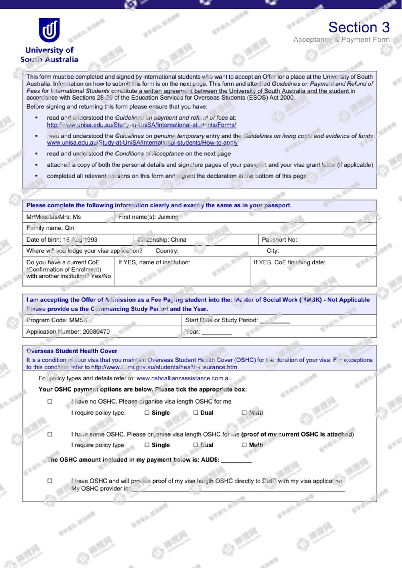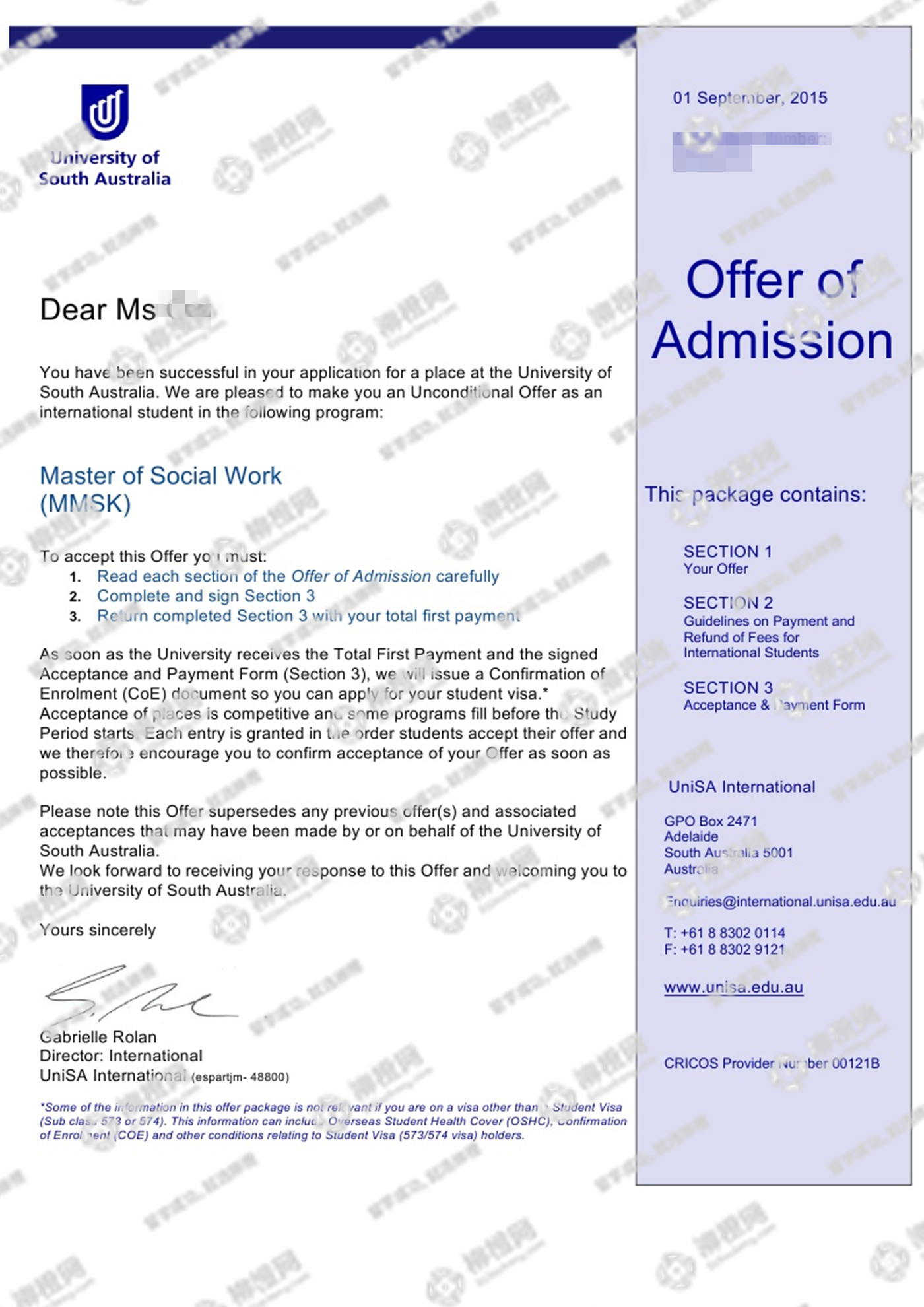 黑龙江大学法学专业的秦同学,在柳橙网的帮助下获澳洲南澳大学offer。