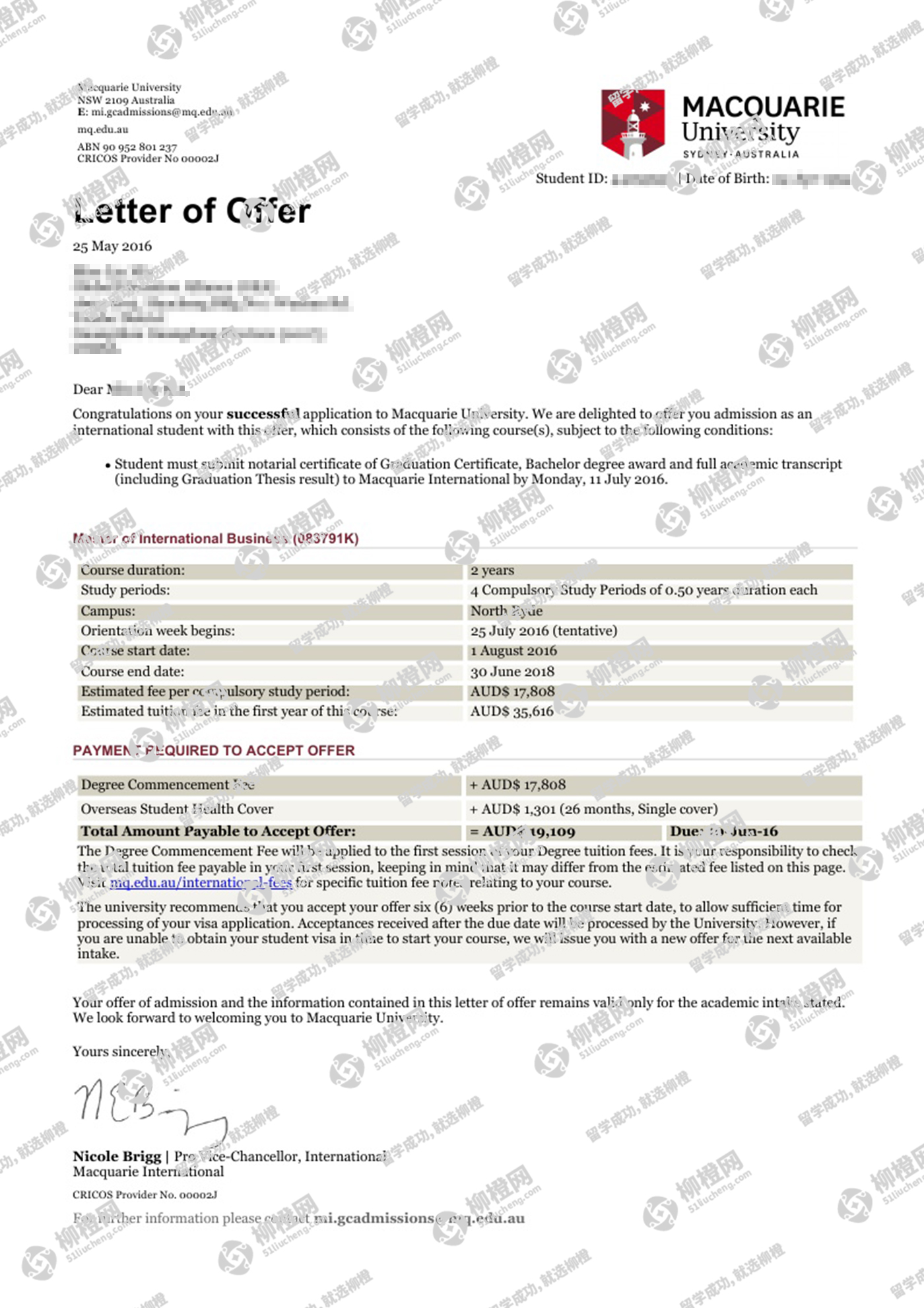 厦门理工学院酒店管理专业的马同学,在柳橙网的帮助下获麦考瑞大学offer。
