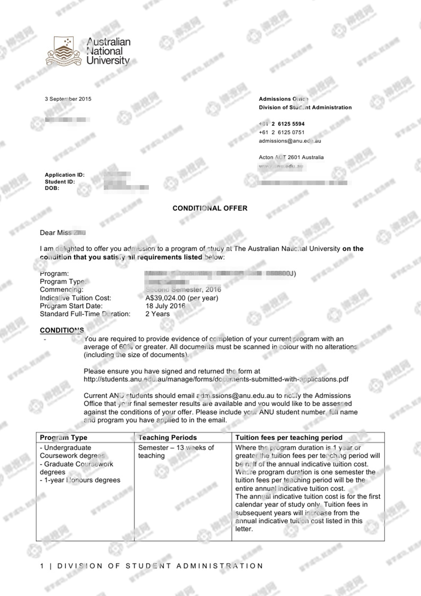 宁波诺丁汉大学BA. (Hons) Finance, Accounting and Management专业的祝同学,在柳橙网的帮助下获澳洲国立大学offer。