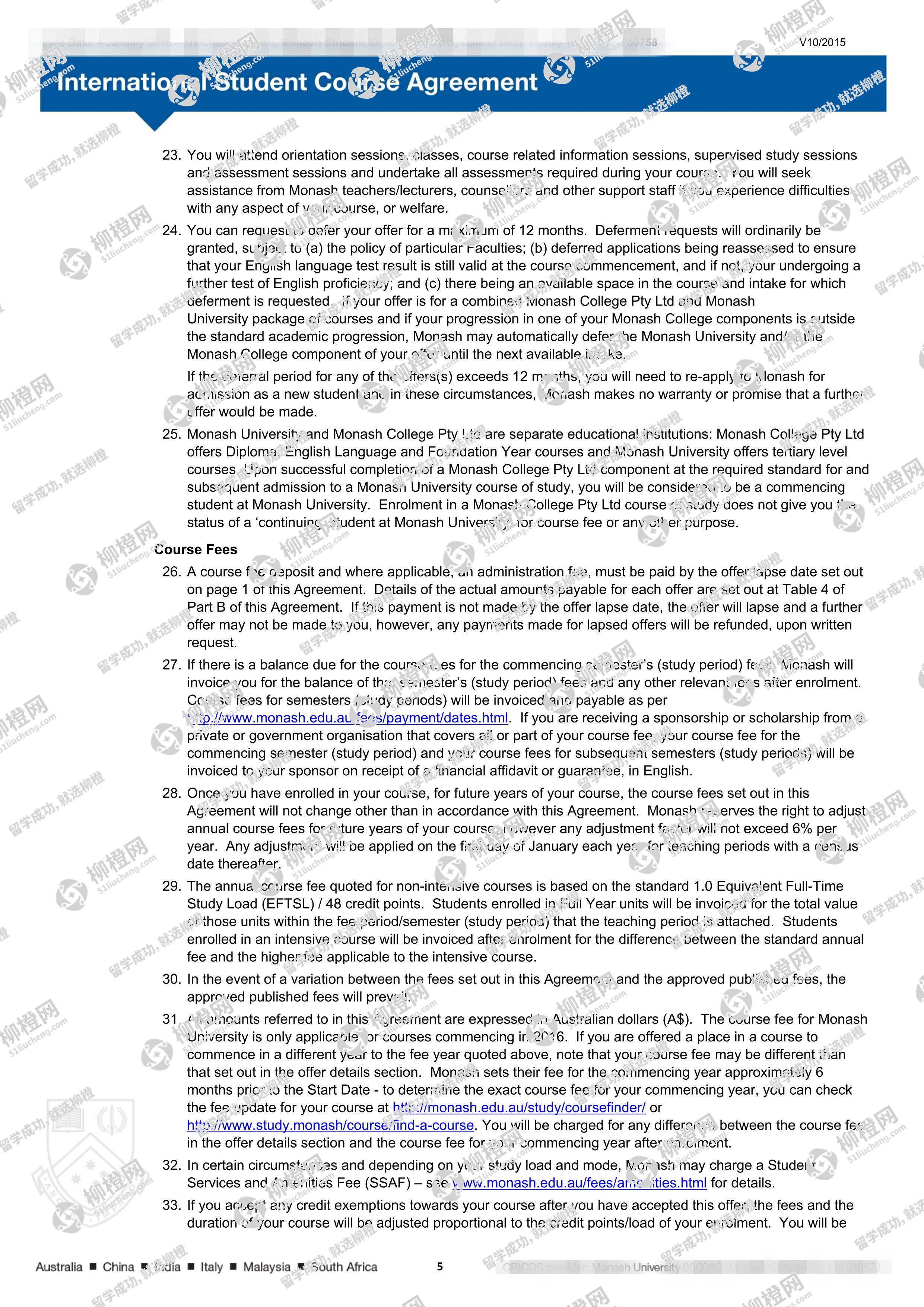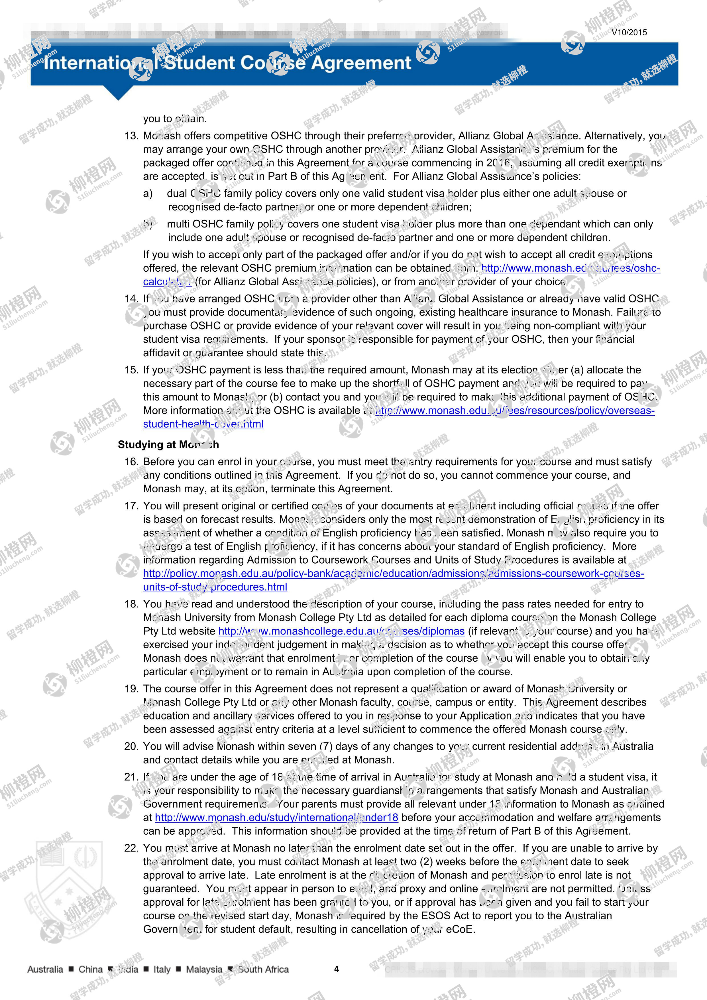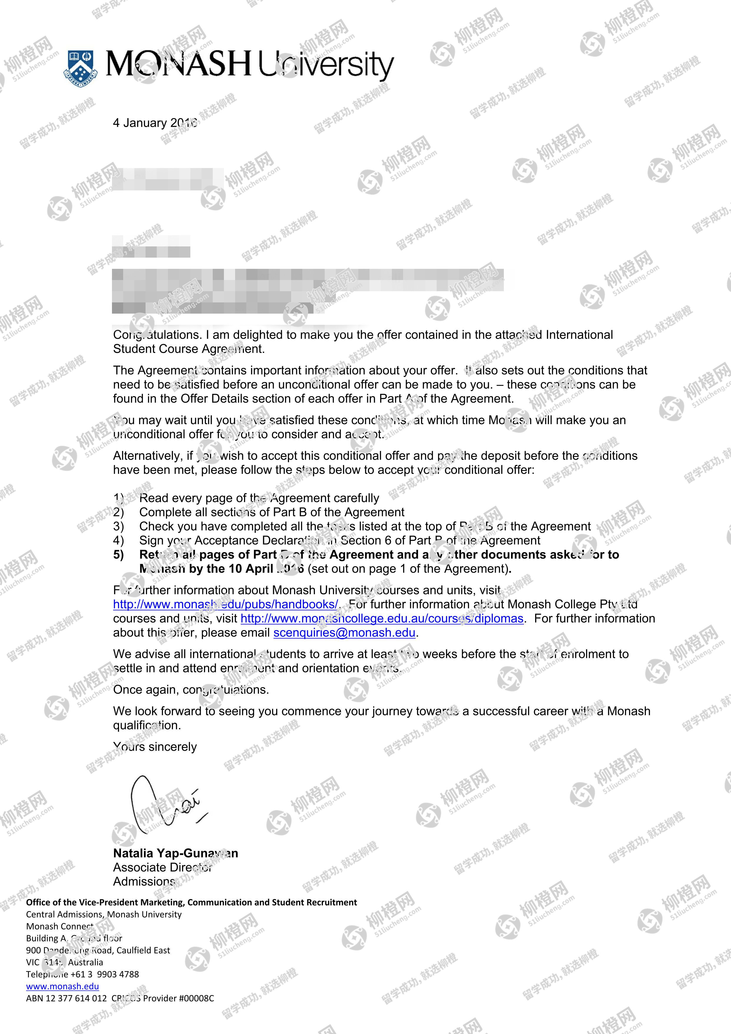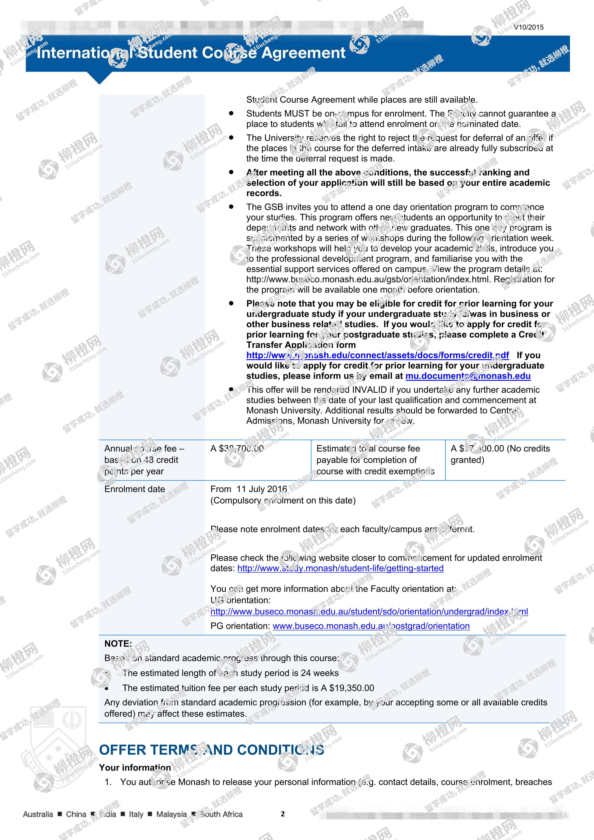 兰州商学院财务管理专业的干同学,在柳橙网的帮助下获莫纳什大学offer。
