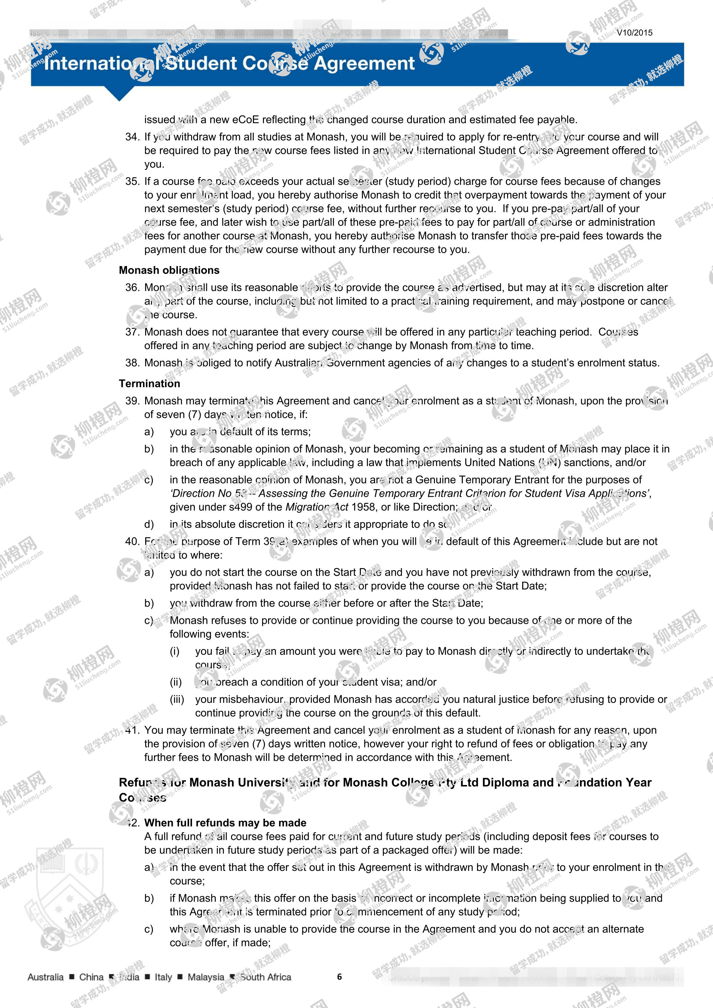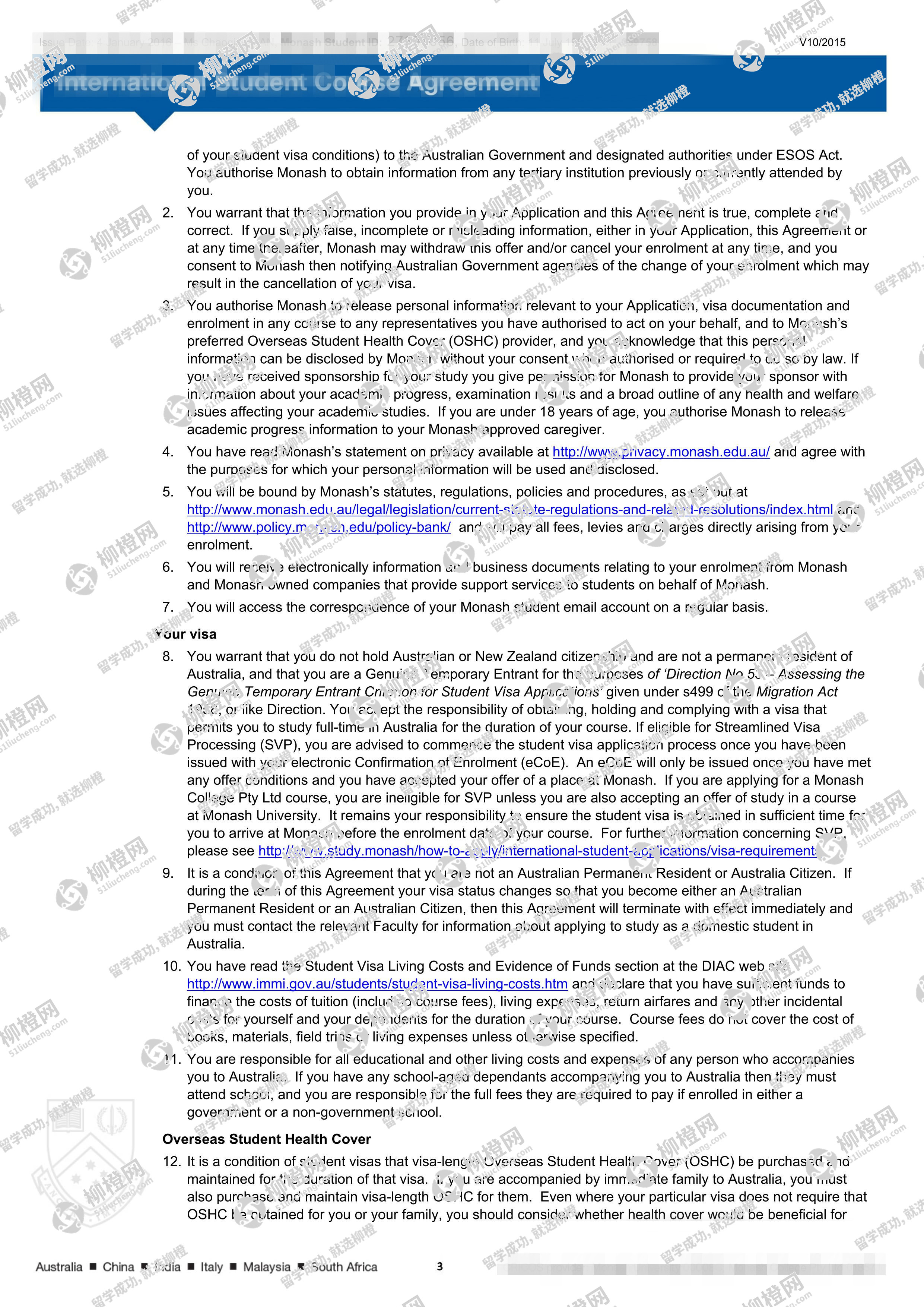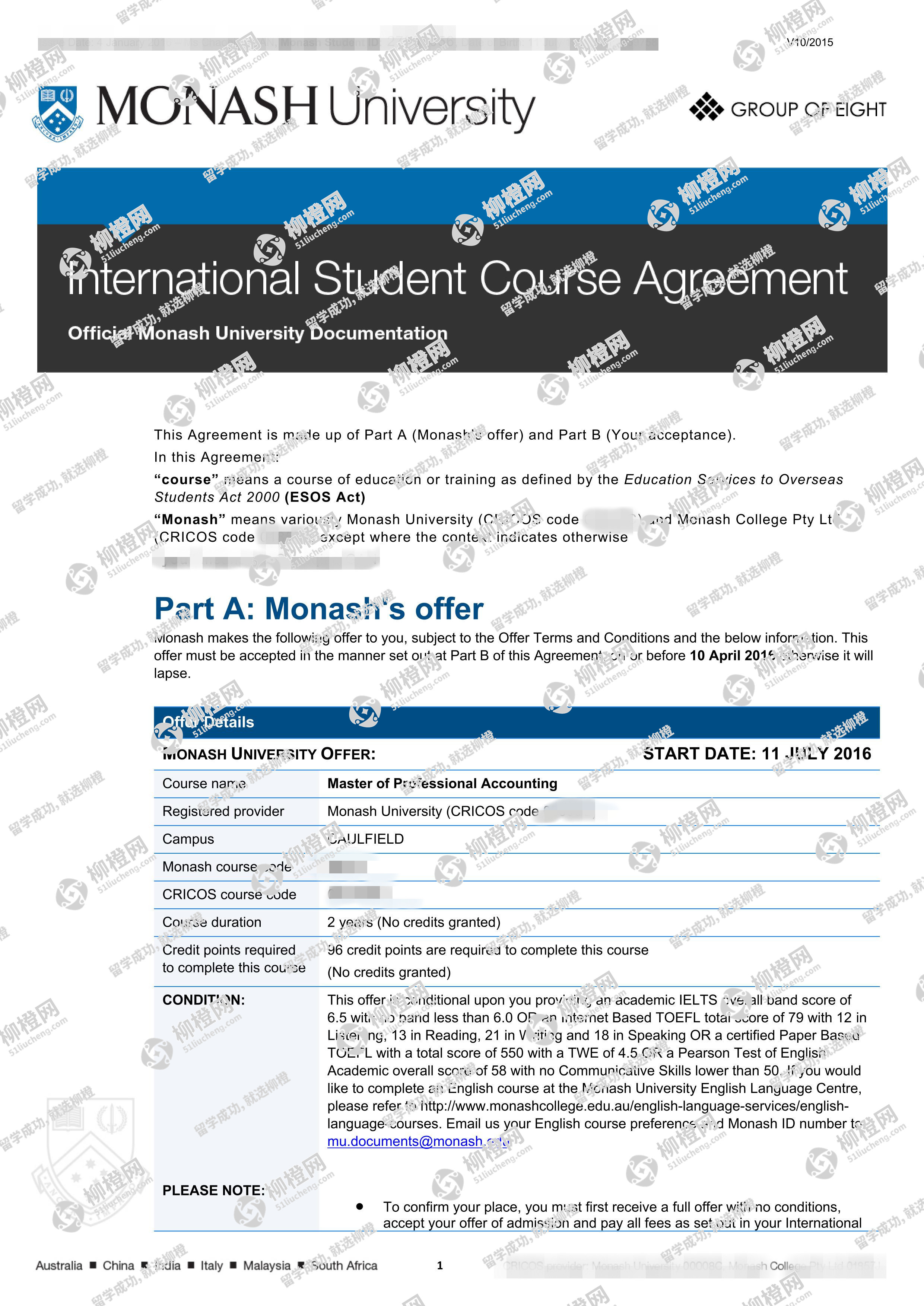兰州商学院财务管理专业的干同学,在柳橙网的帮助下获莫纳什大学offer。