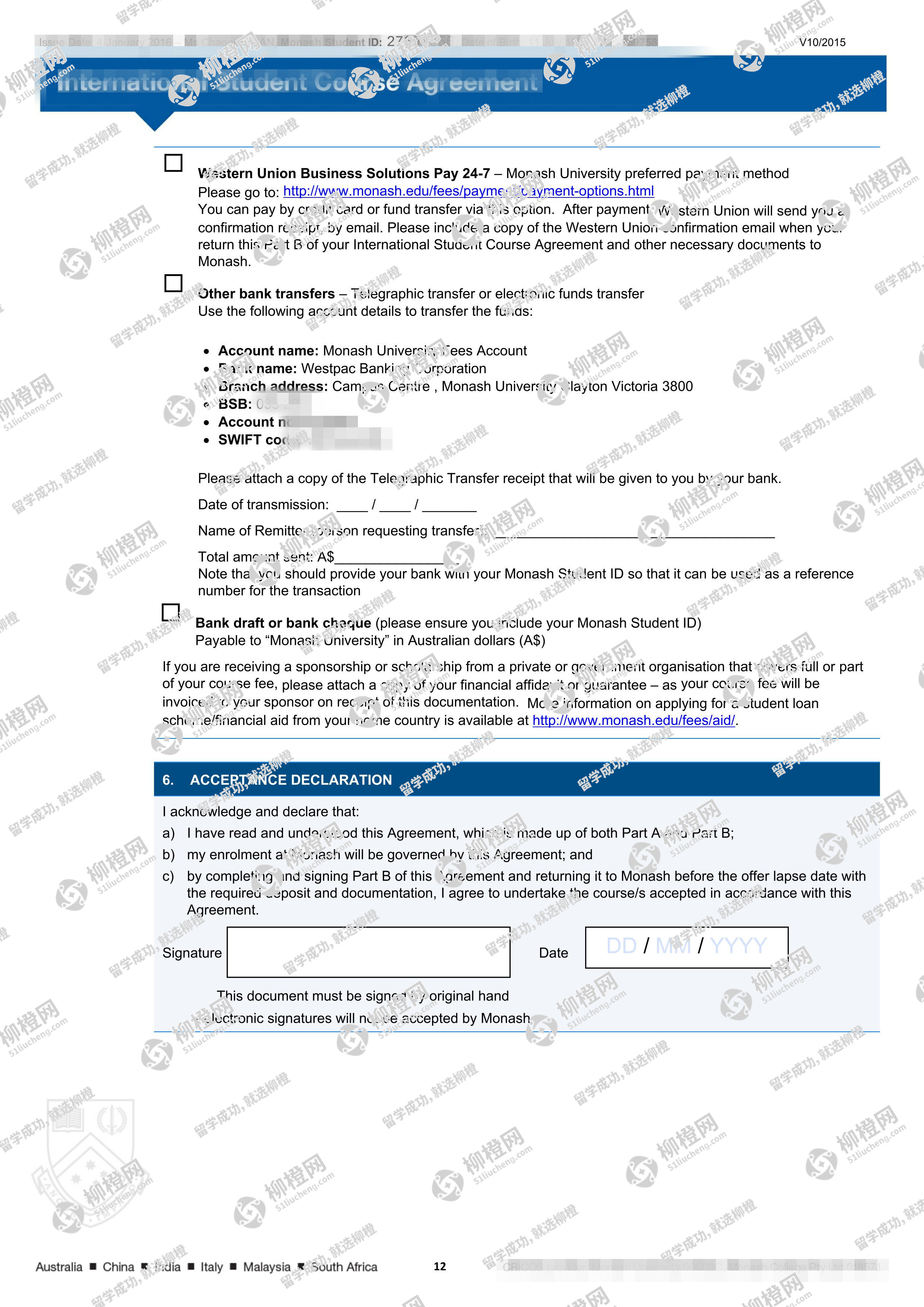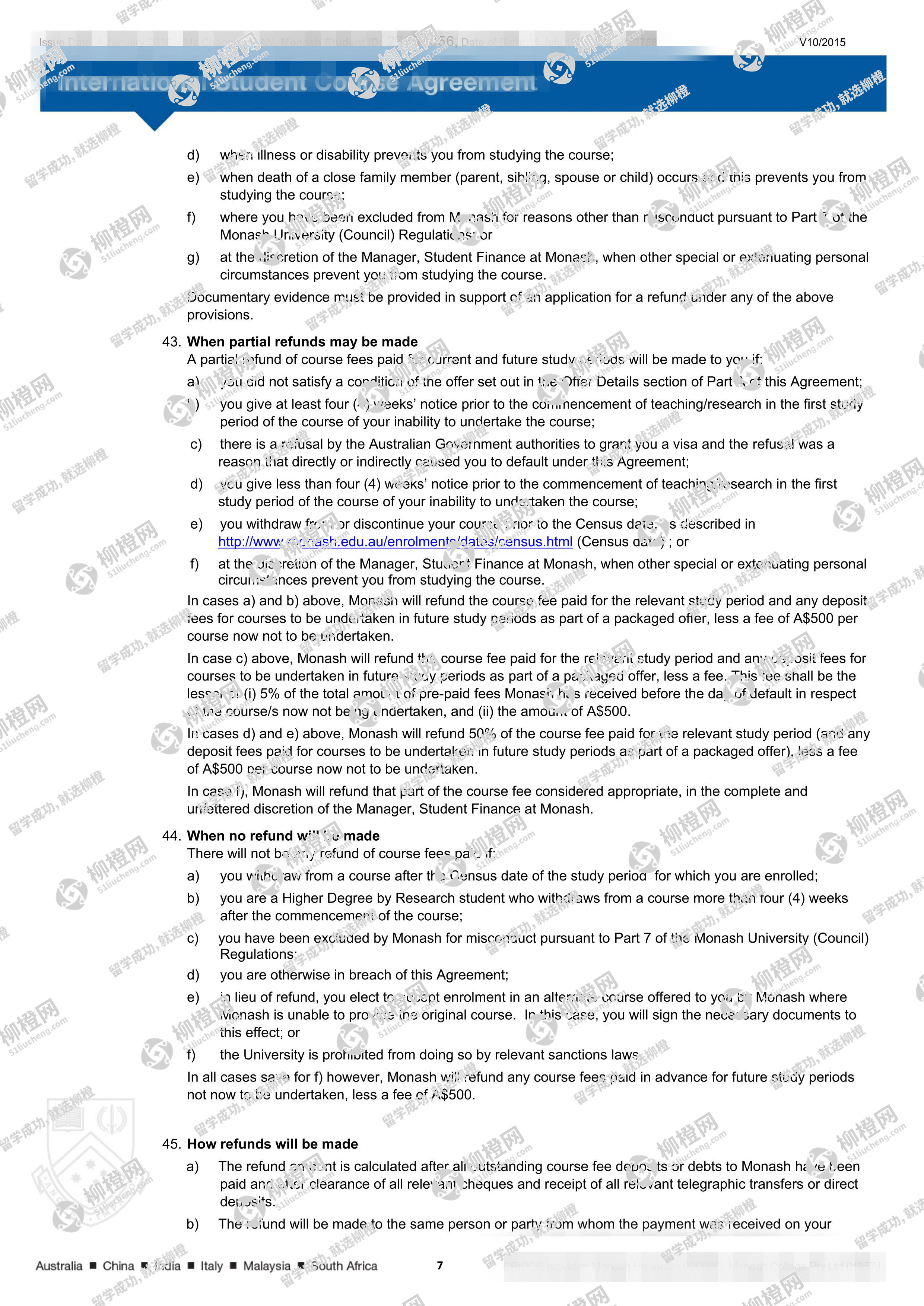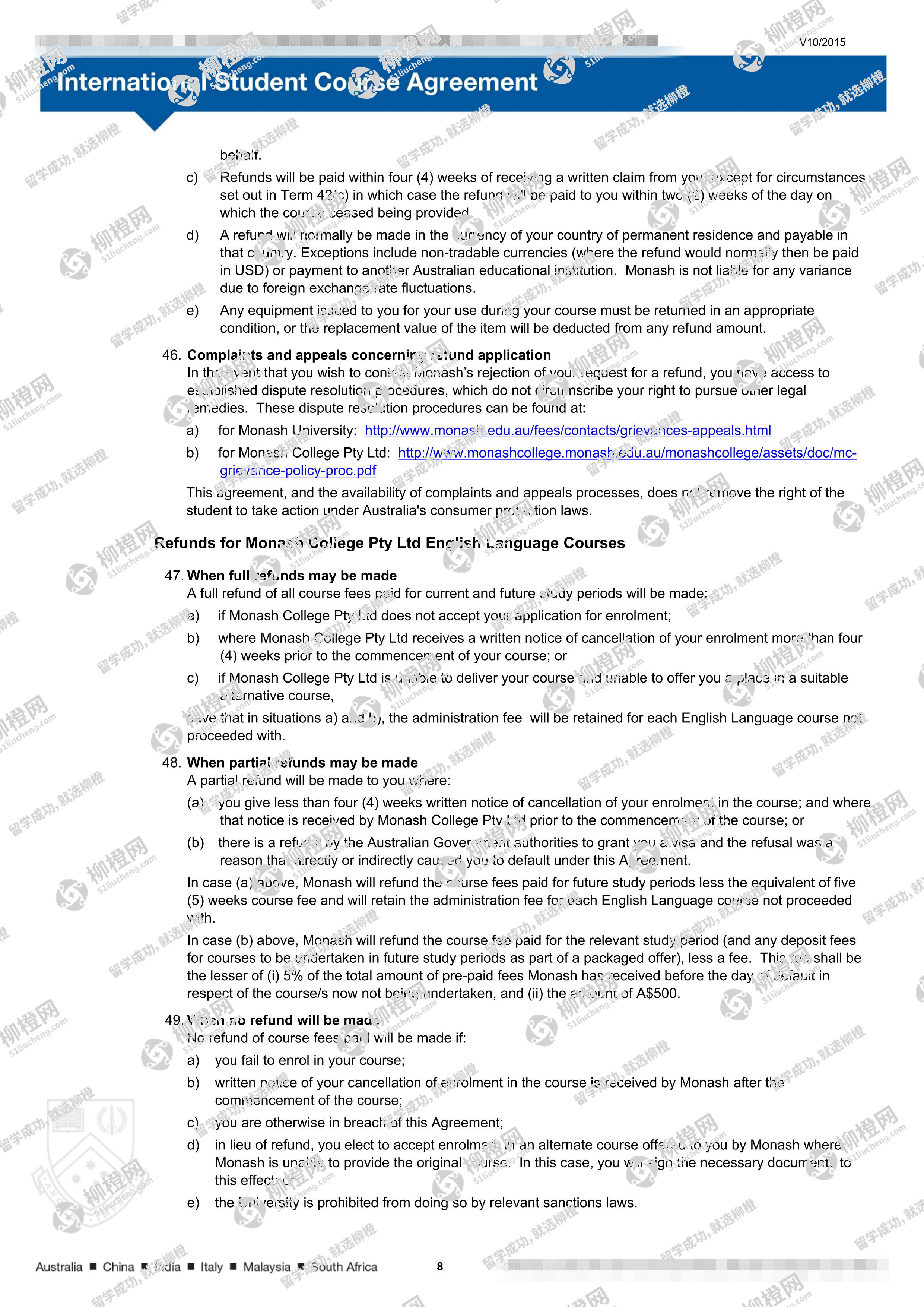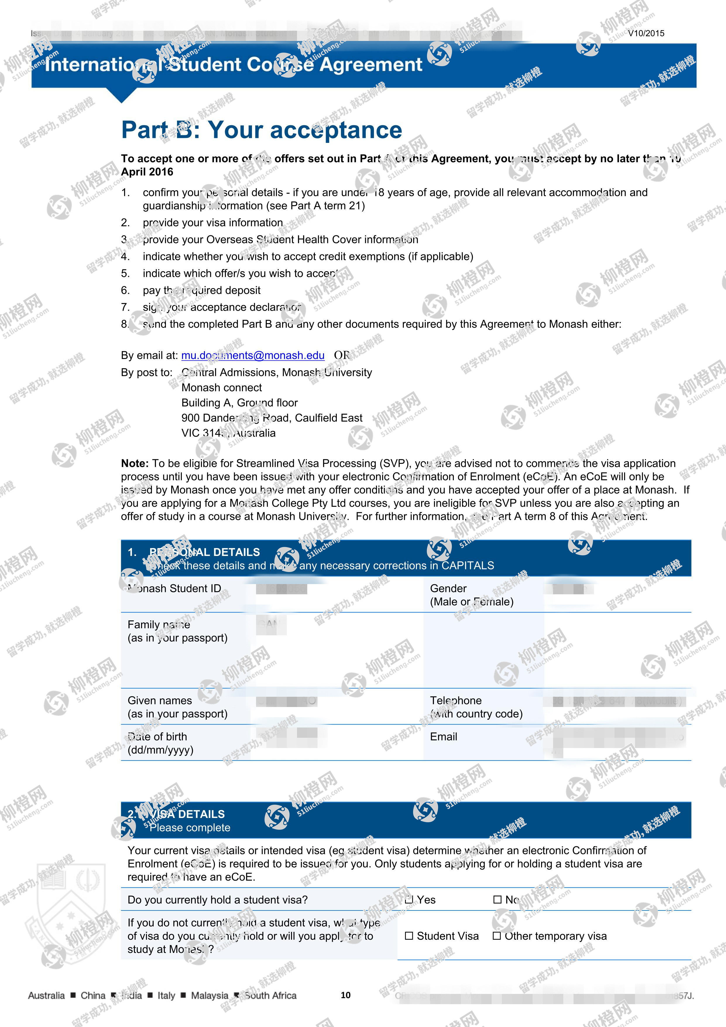 兰州商学院财务管理专业的干同学,在柳橙网的帮助下获莫纳什大学offer。