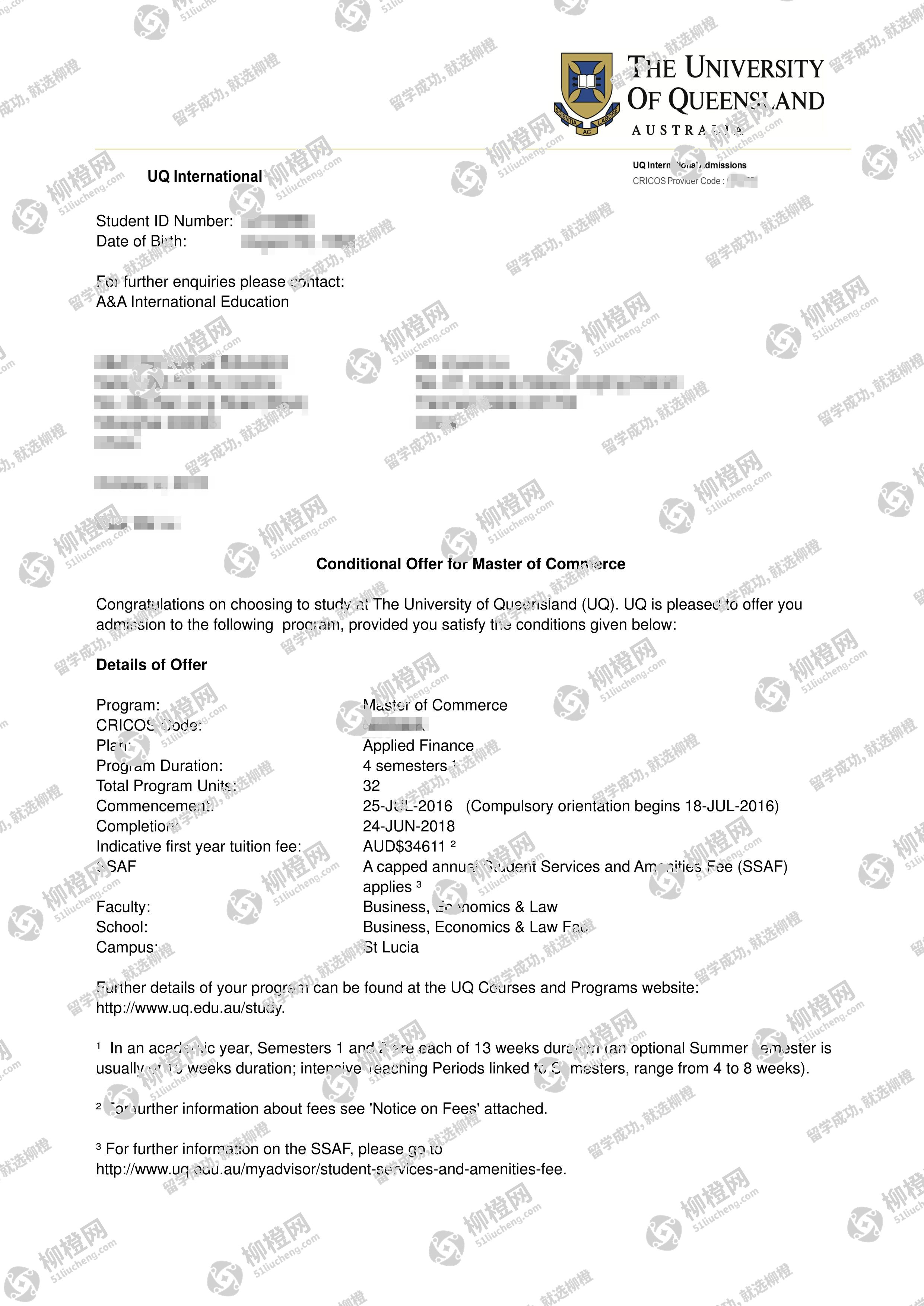 北京石油化工学院国际经济与贸易专业的卢同学,在柳橙网的帮助下获昆士兰大学offer。