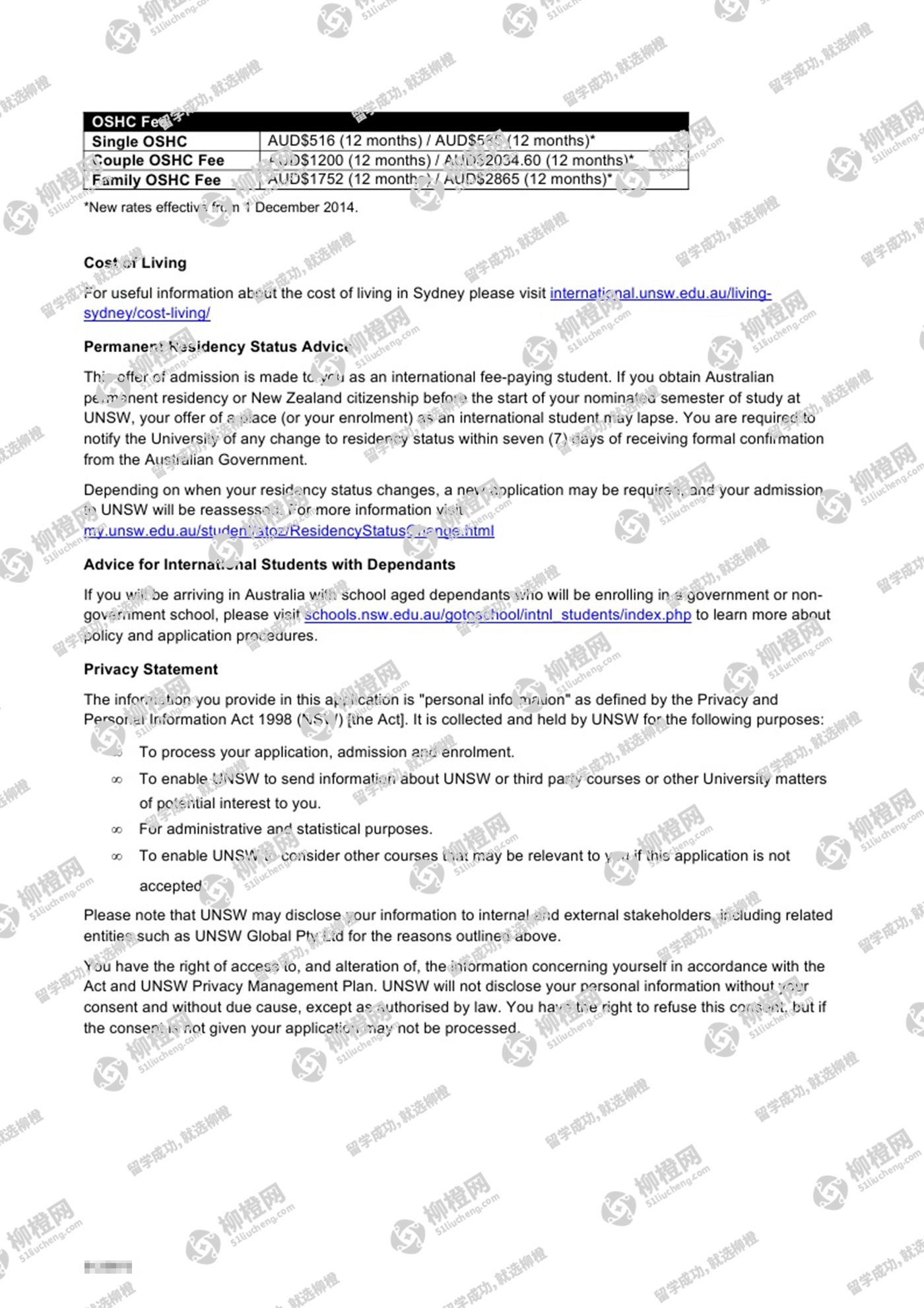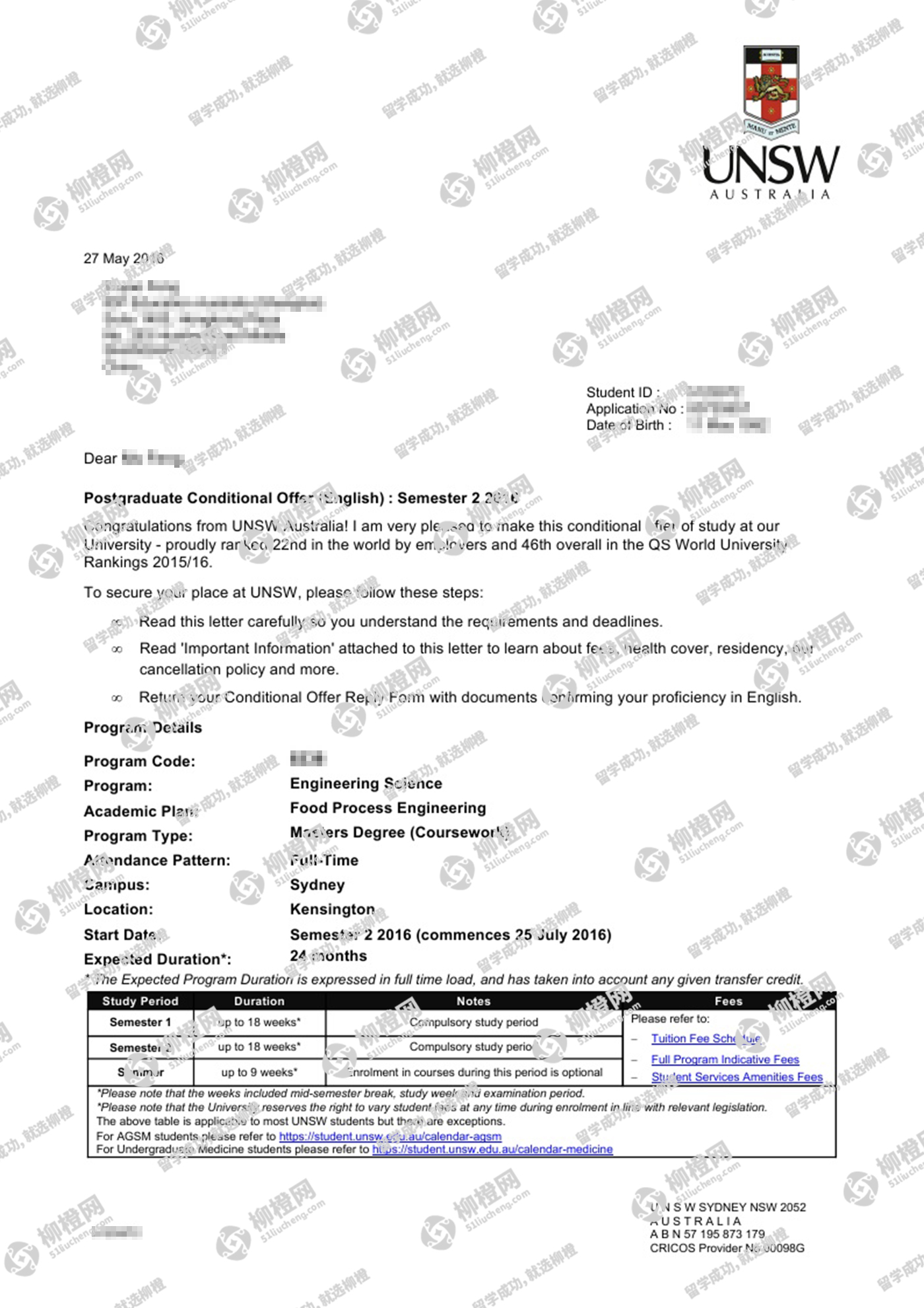 广西大学食品科学与工程专业的冯同学,在柳橙网的帮助下获新南威尔士大学offer。