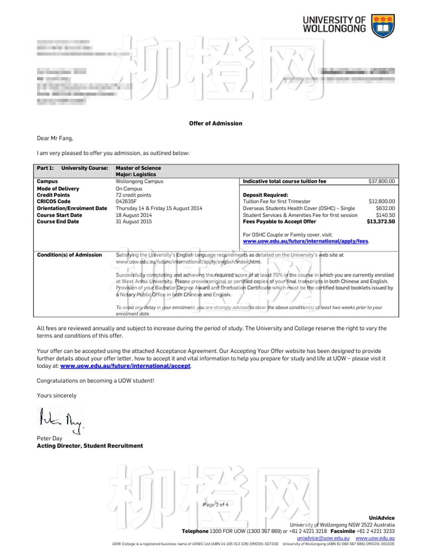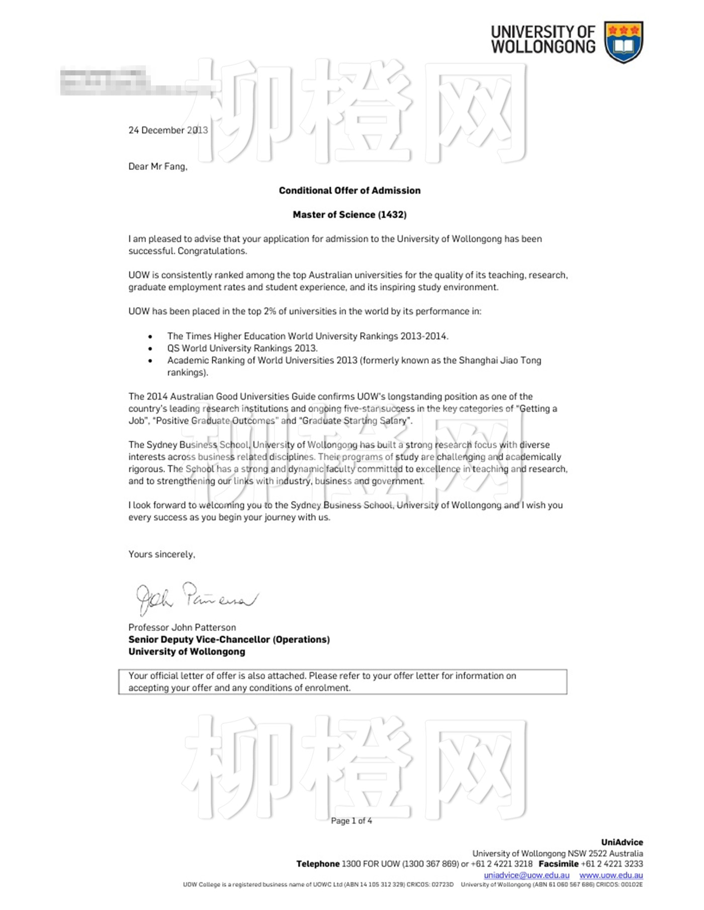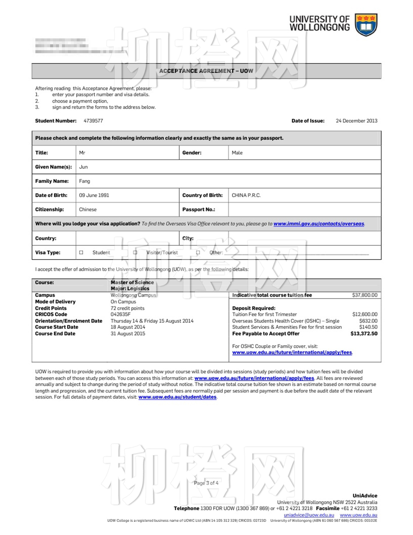 方同学本科背景不是很好,成绩尚可,合理的定位和规划使得其成功申请到了卧龙岗大学物流专业的研究生