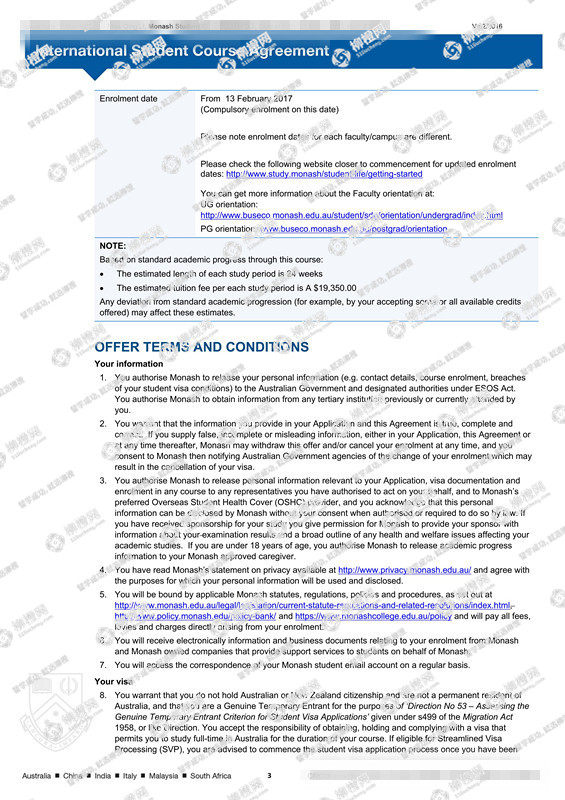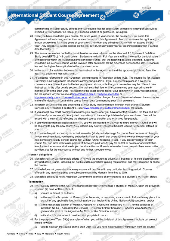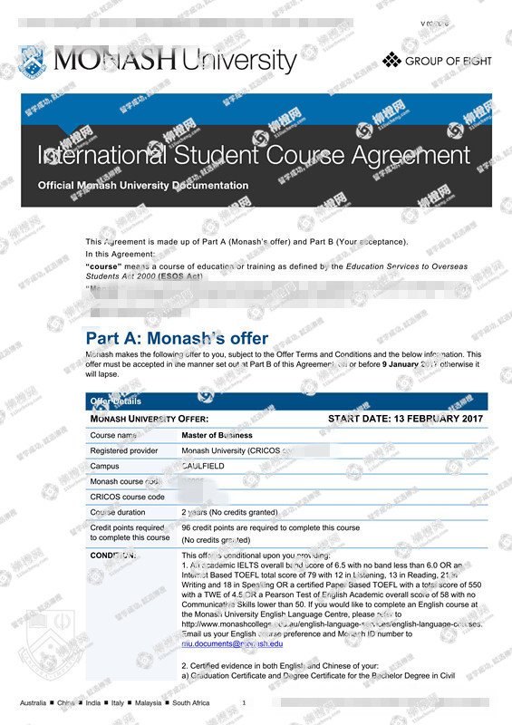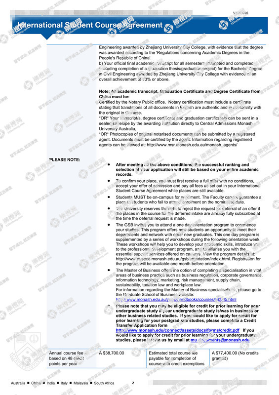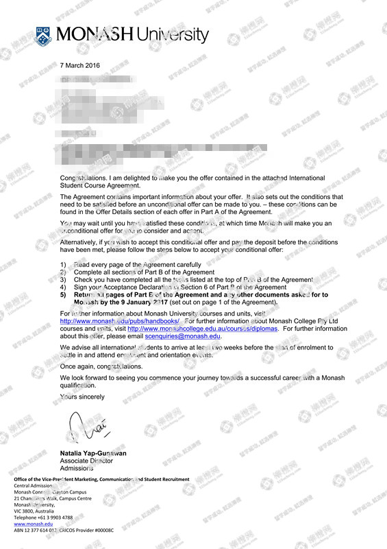浙江大学城市学院土木工程专业工程管理方向专业的李同学,在柳橙网的帮助下获莫纳什大学offer。