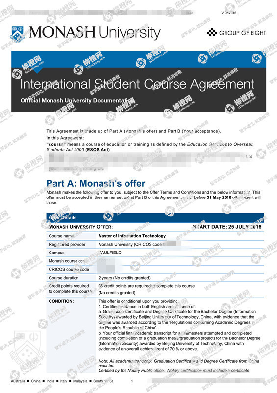 北京工业大学信息安全专业的刘同学,在柳橙网的帮助下获莫纳什大学offer。