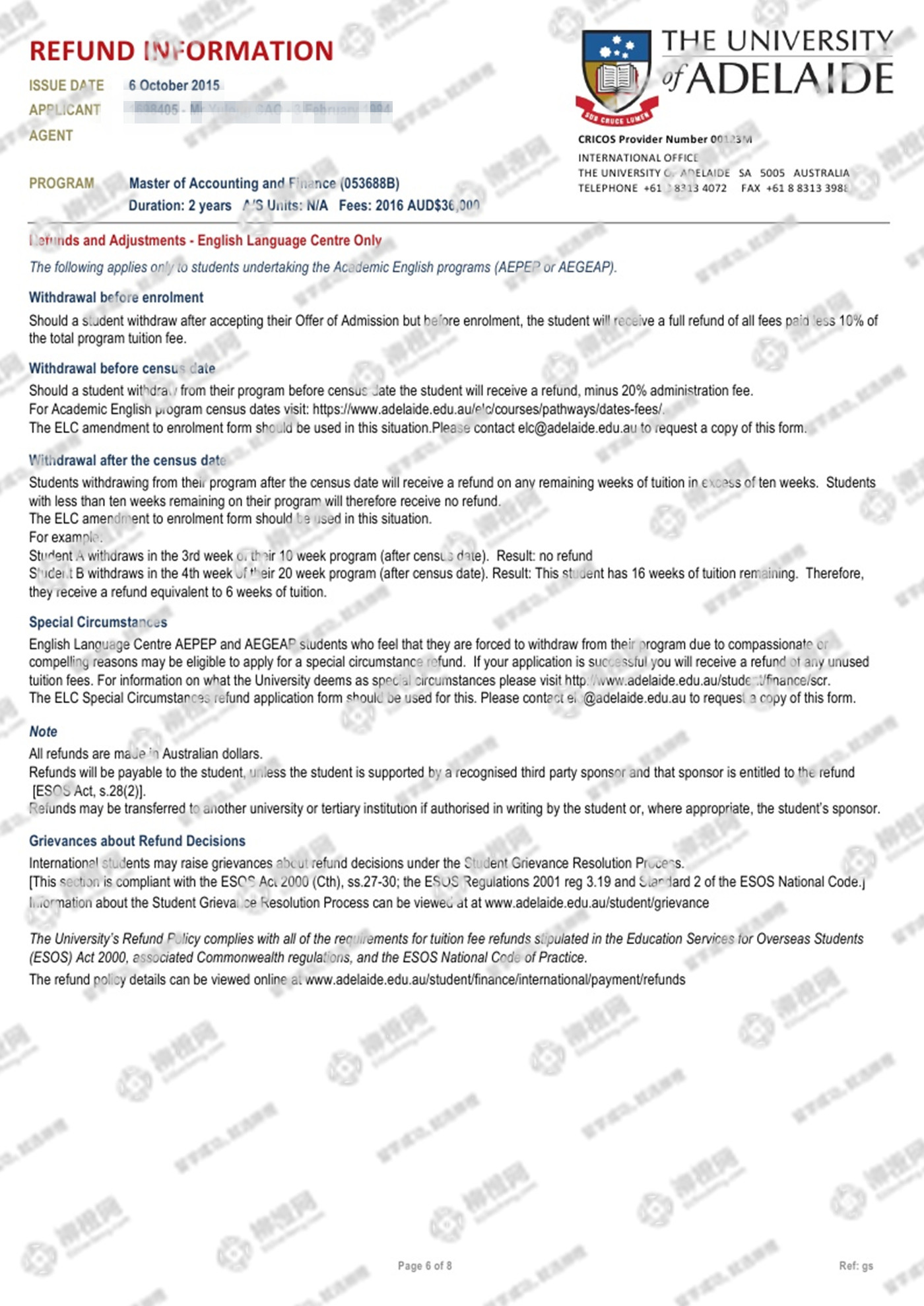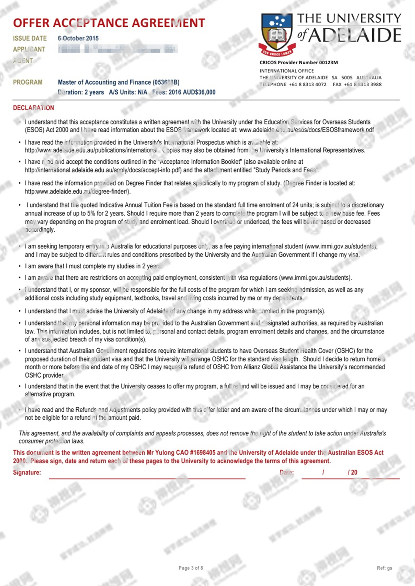 山东财经大学金融专业的曹同学,在柳橙网的帮助下获澳洲阿德莱德大学offer。