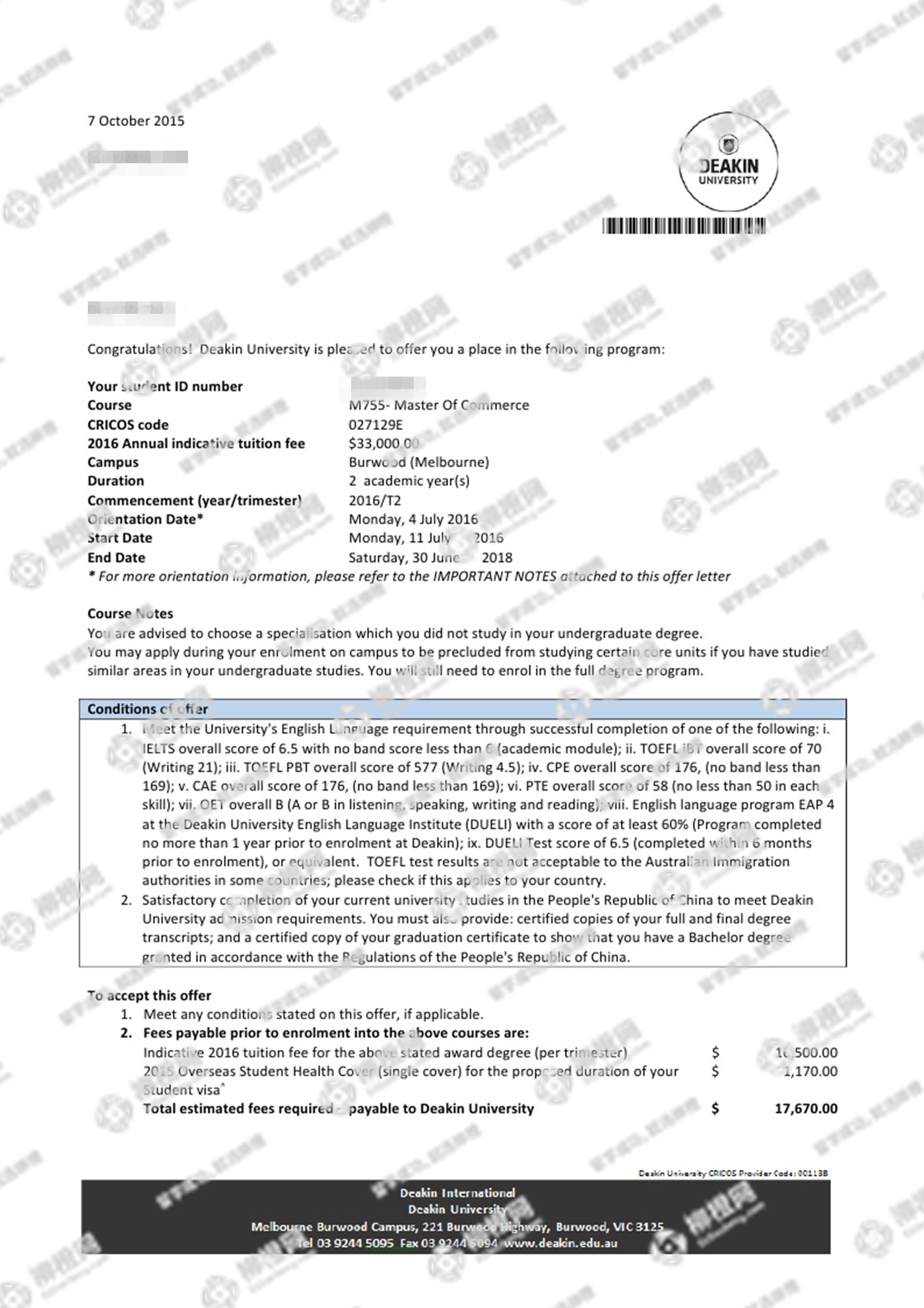 巢湖学院电子商务专业的翟同学,在柳橙网的帮助下获澳洲迪肯大学offer。