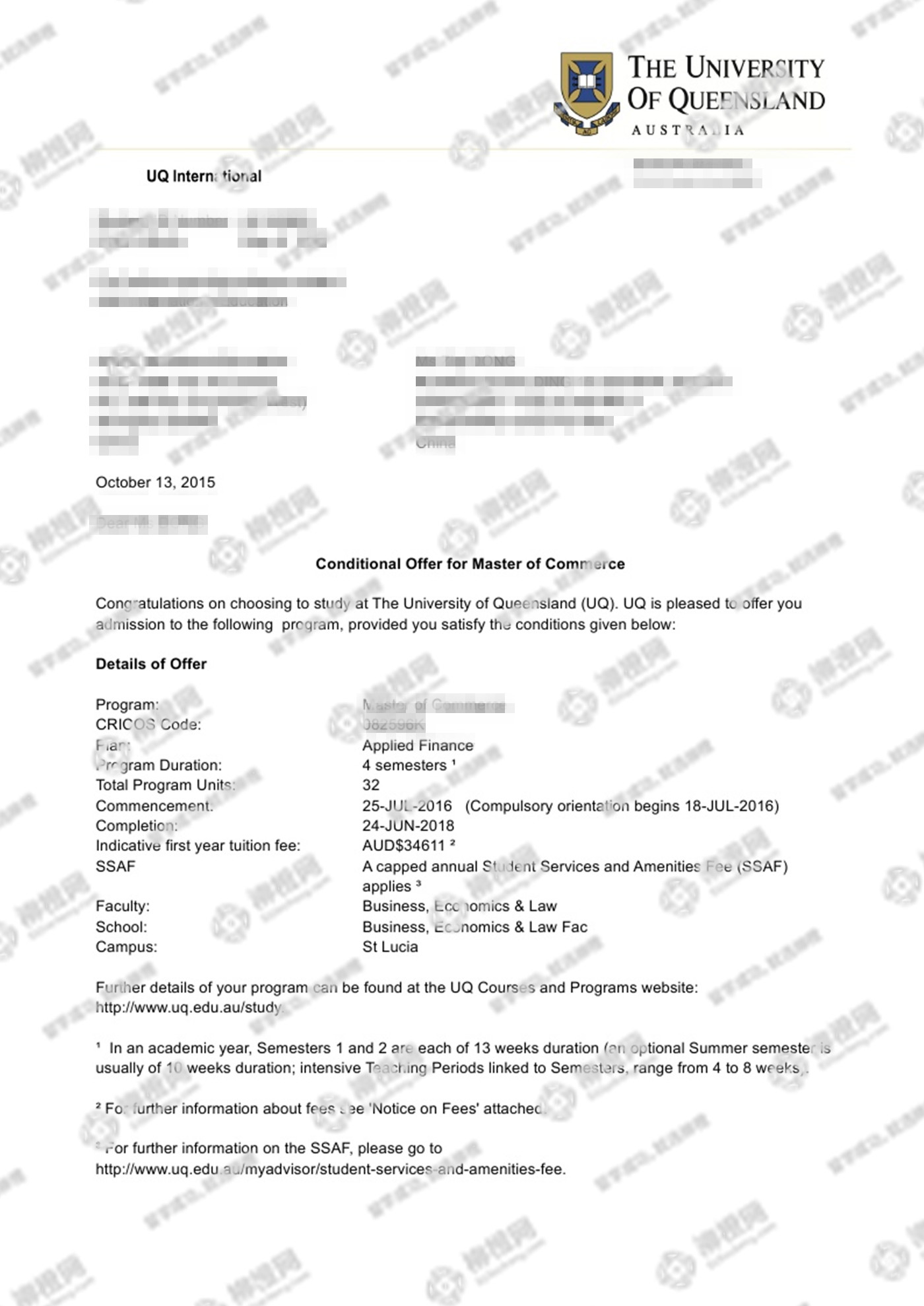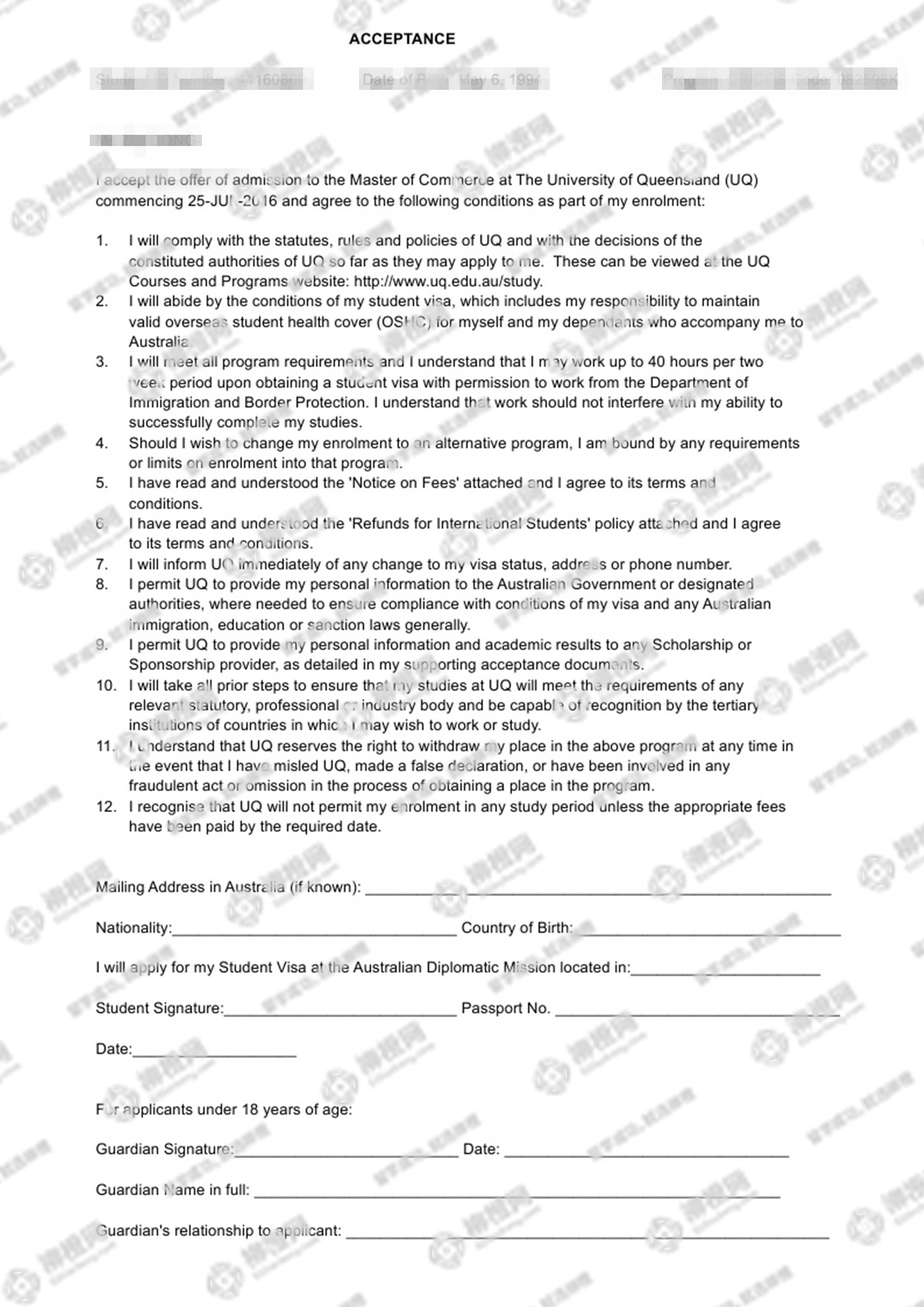 恭喜董同学成功在柳橙网录取澳洲昆士兰录取