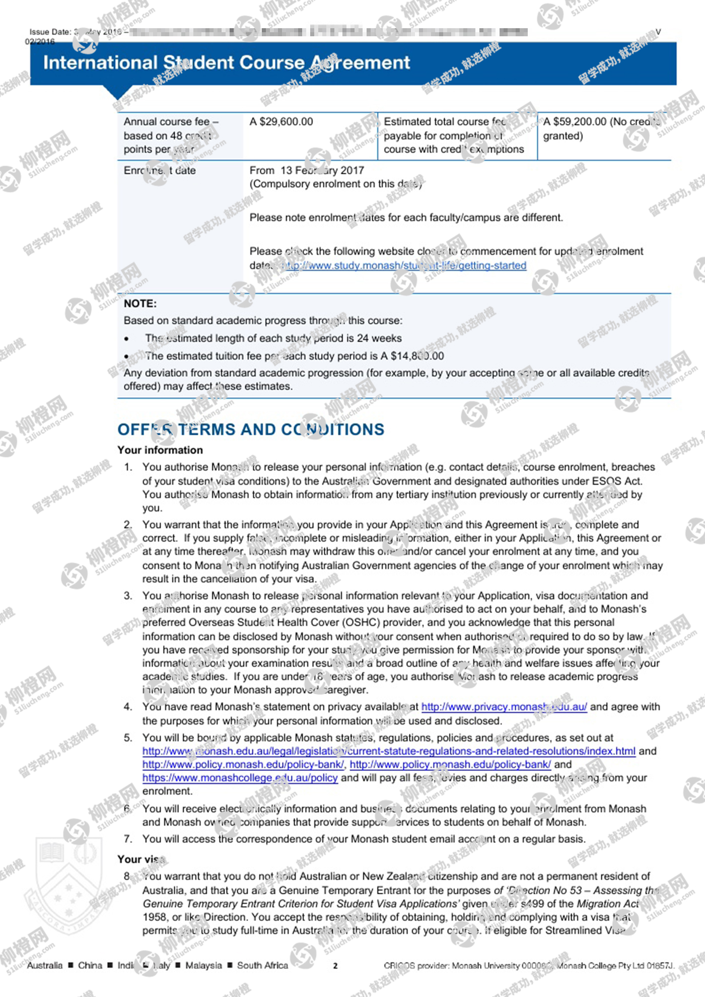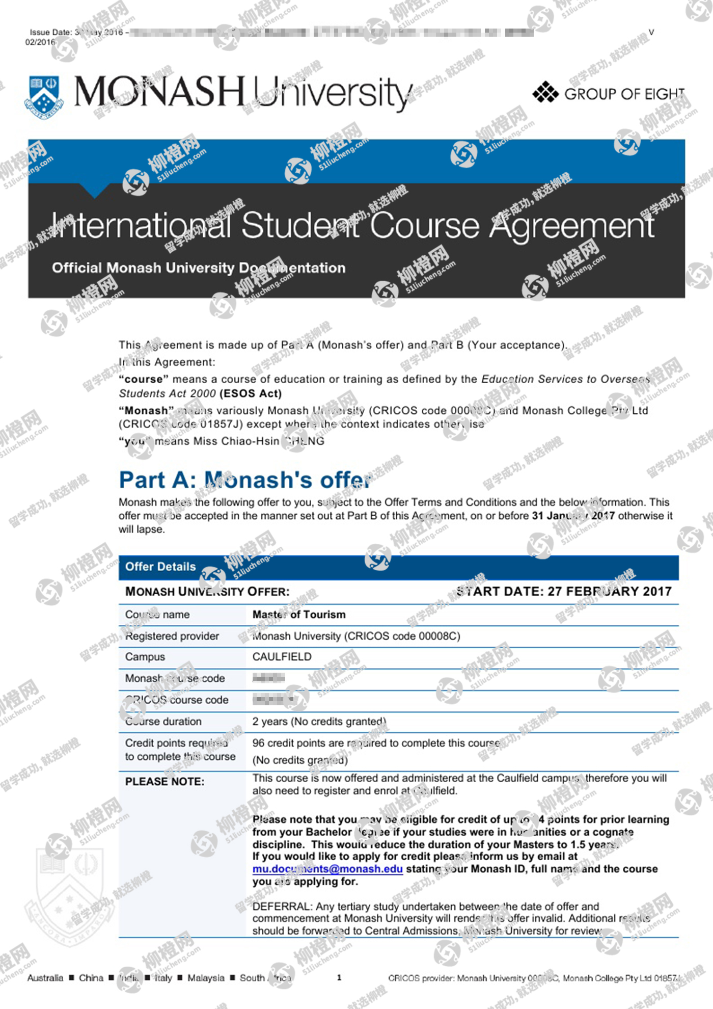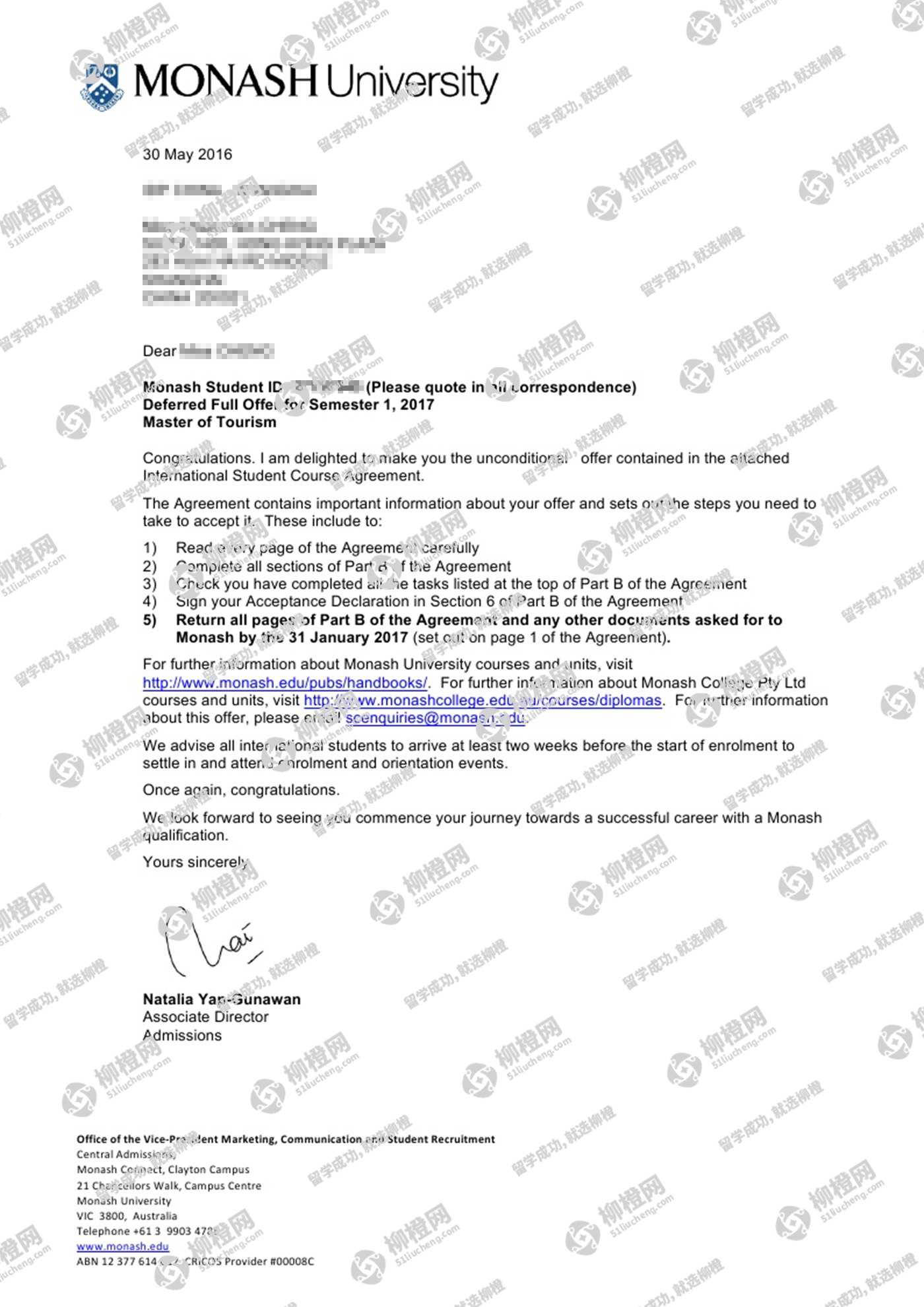 恭喜郑同学成功获得莫纳什大学offer