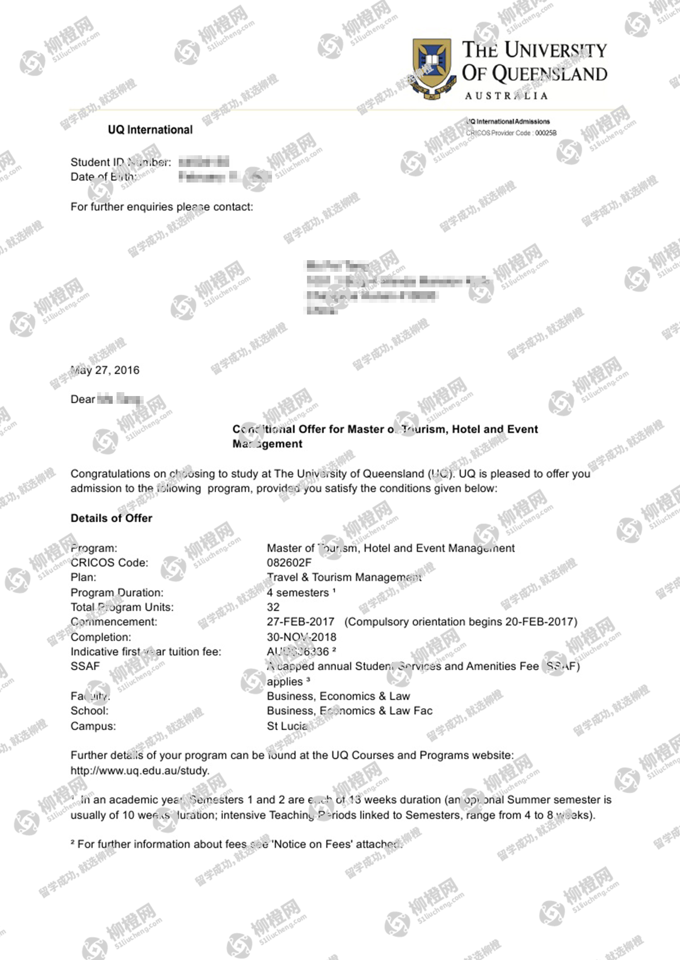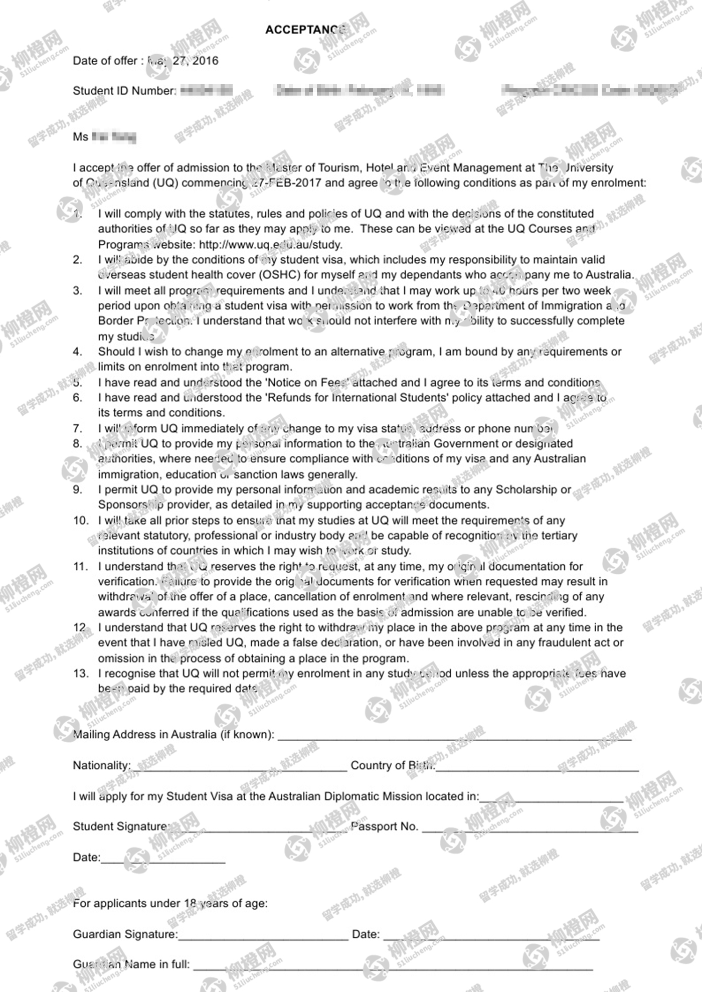 恭喜唐同学成功在柳橙获得澳洲八大昆士兰大学offer