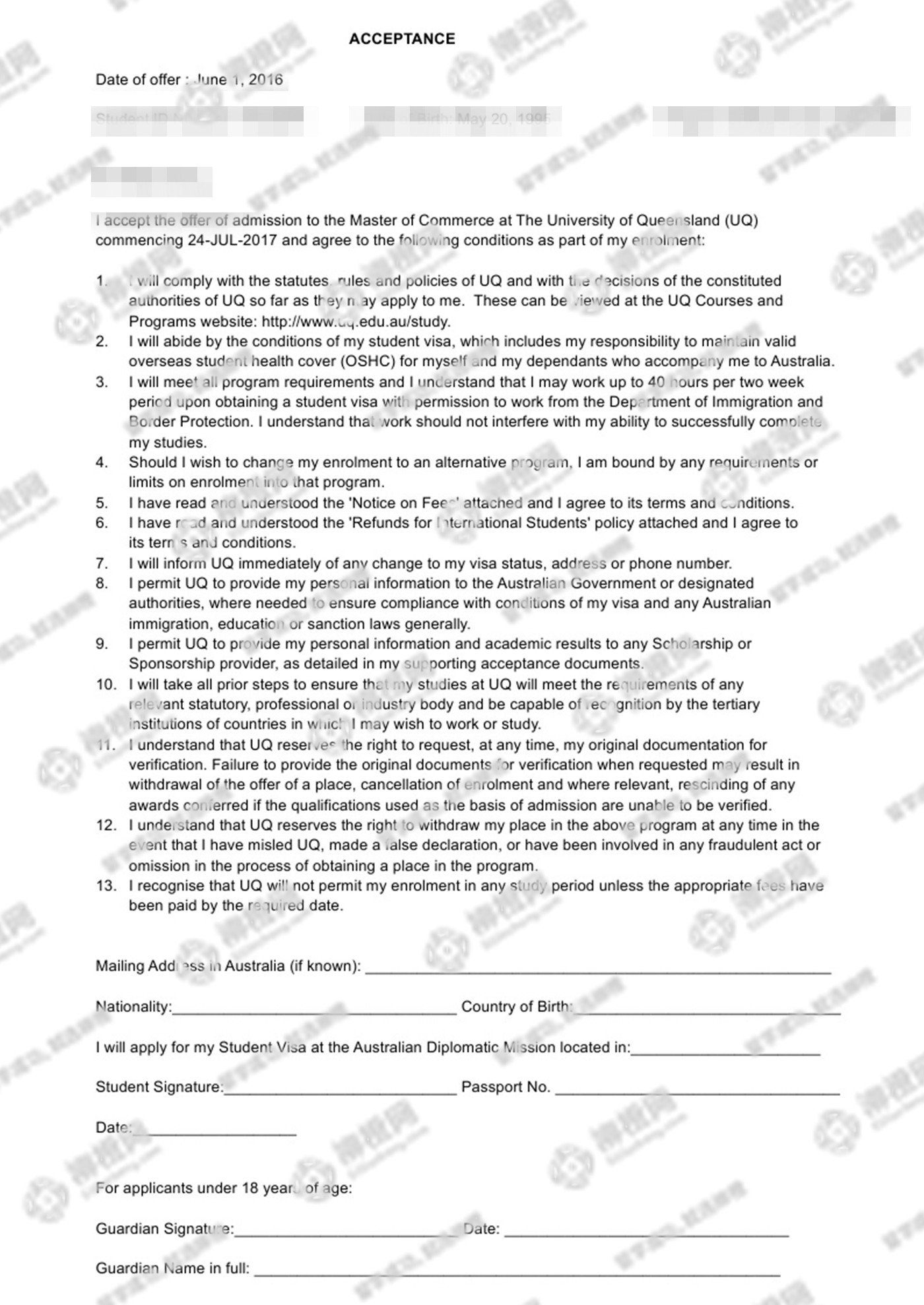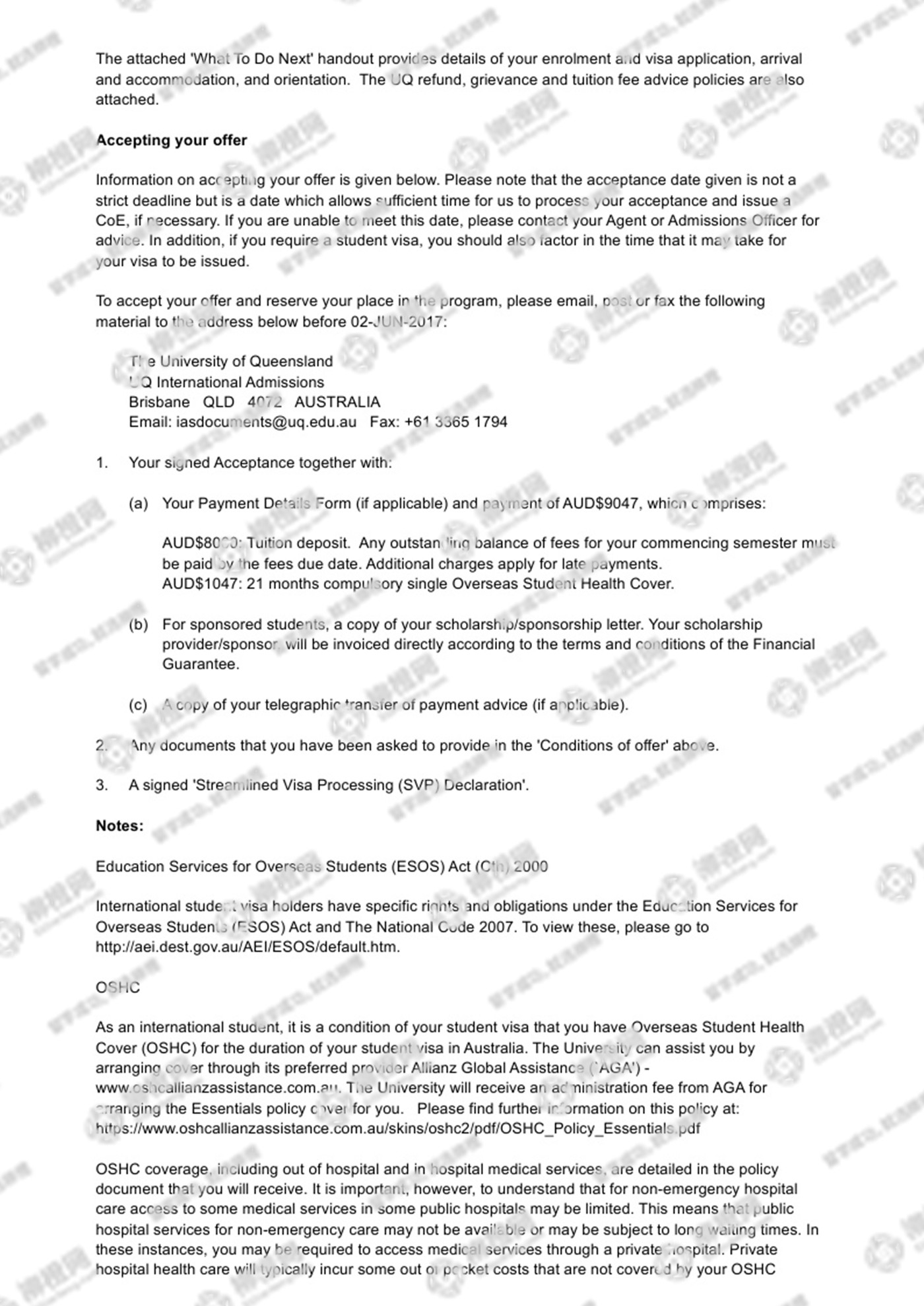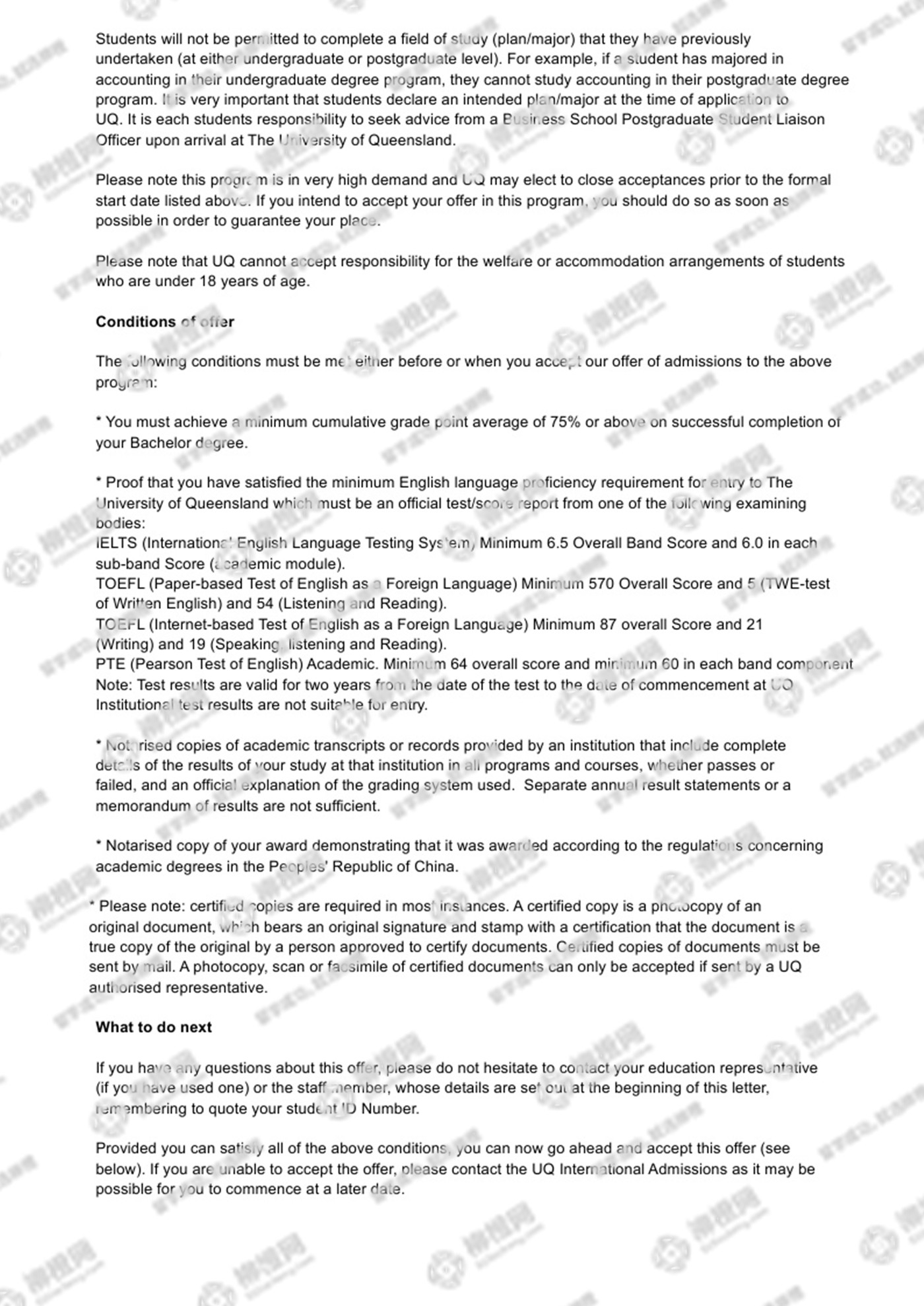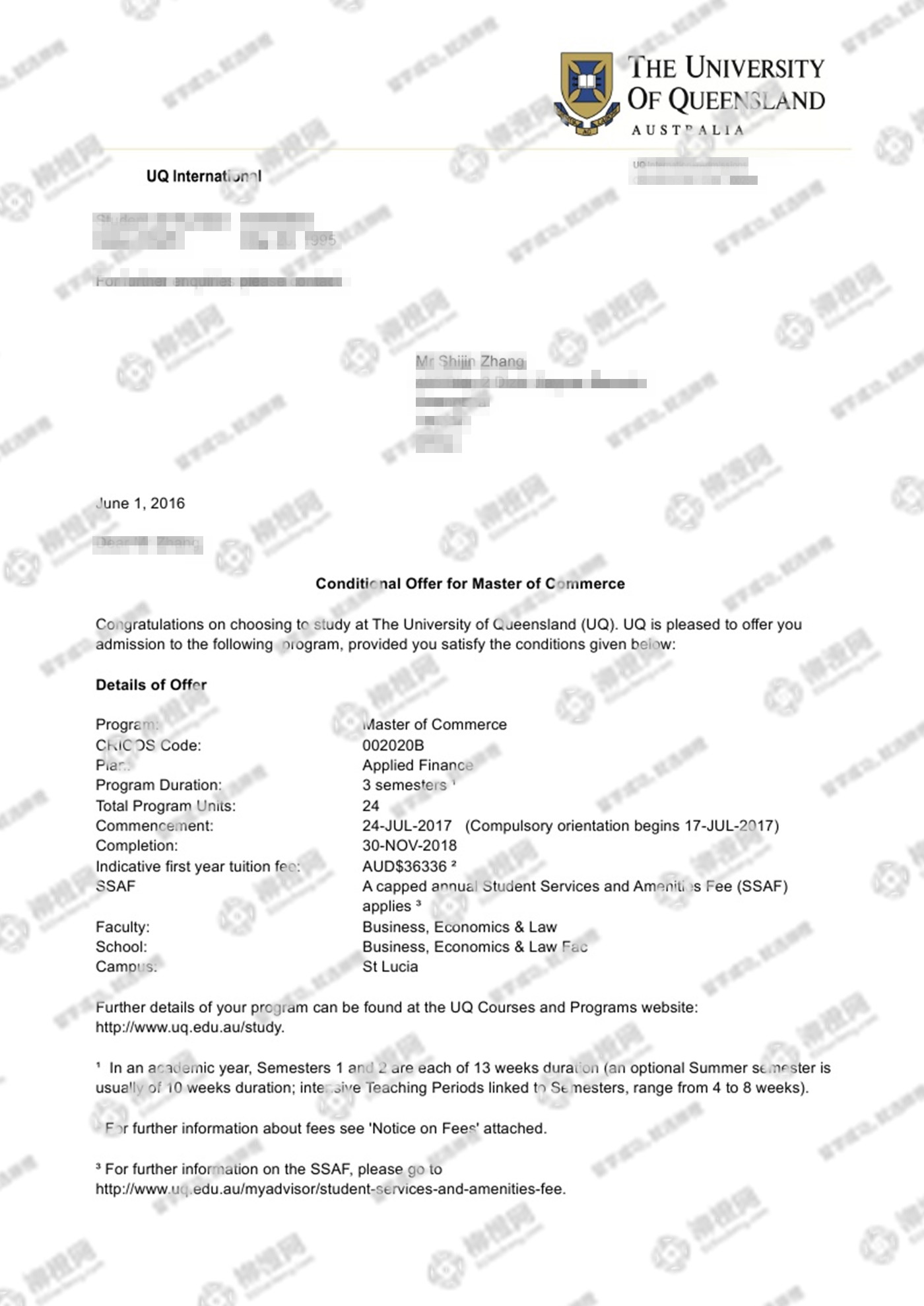 恭喜张同学在柳橙网拿到了澳洲昆士兰大学的offer