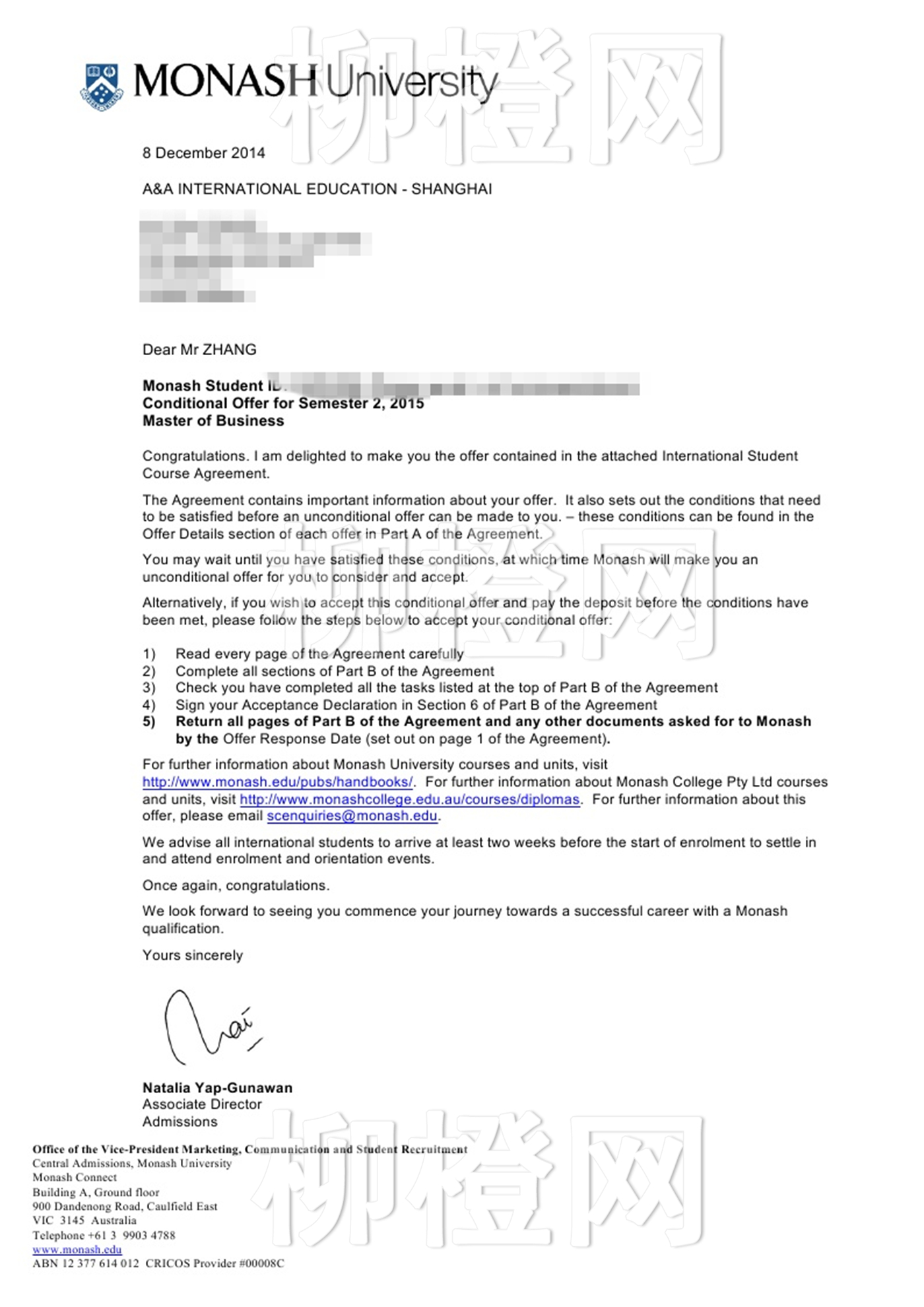 2015-2016年度QS世界大学排名,莫纳什大学综合排名第67位。商务英语专业成功转供应链,拿Offer水到渠成