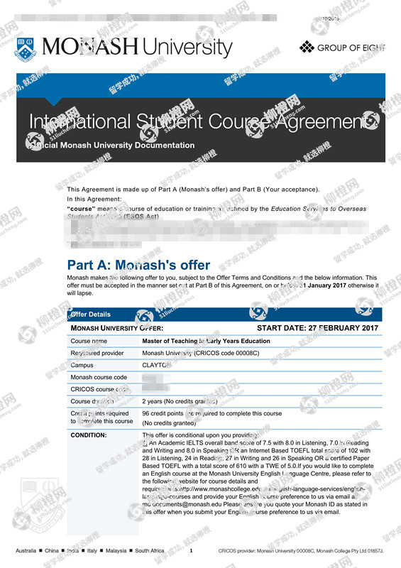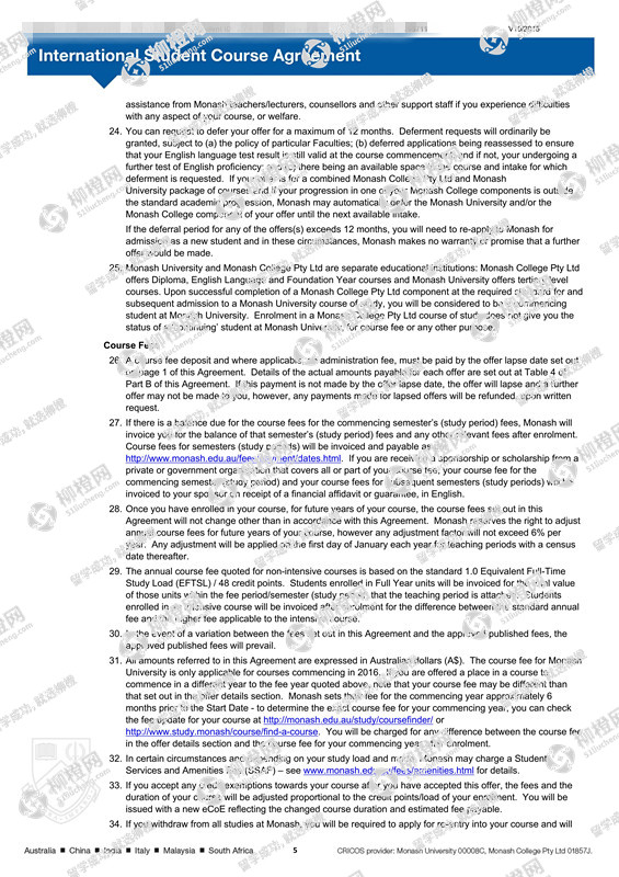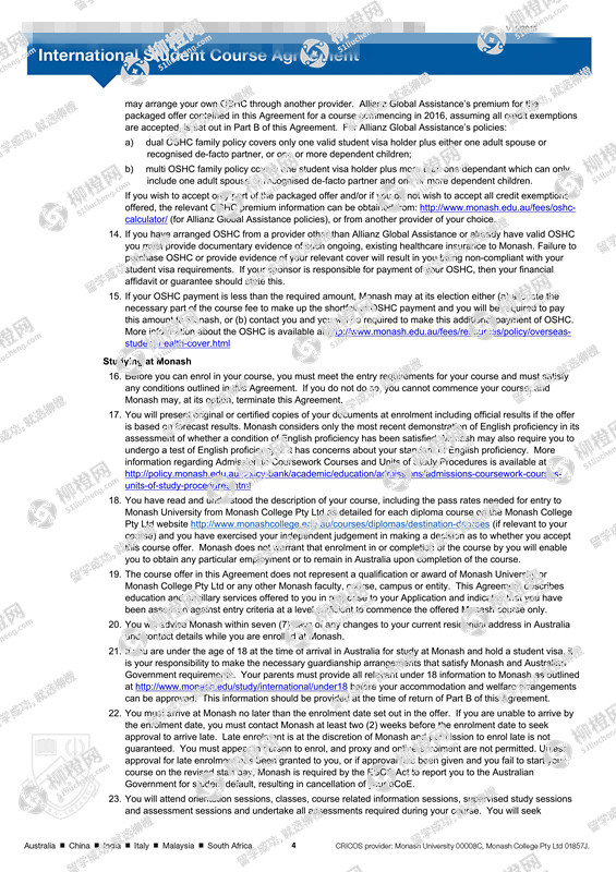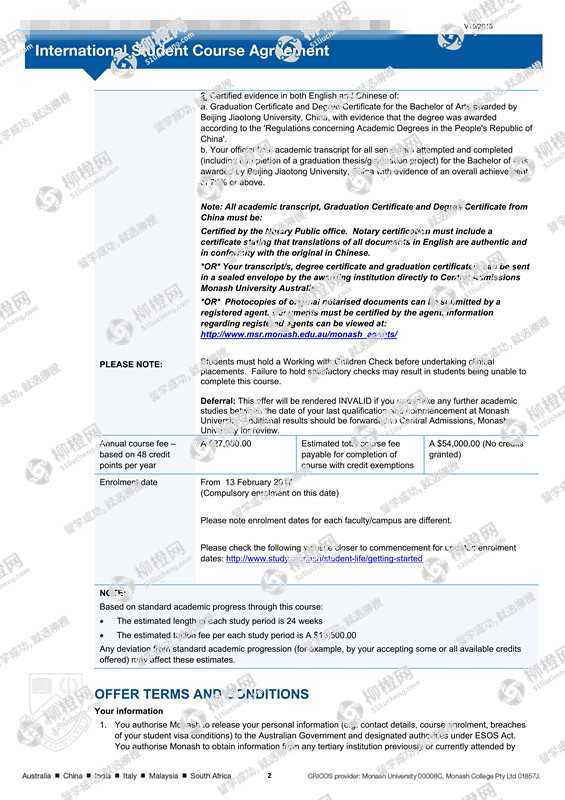 刘同学,北方交通大学,GPA85分,在上海柳橙网申请到了莫纳什大学offer,恭喜!
