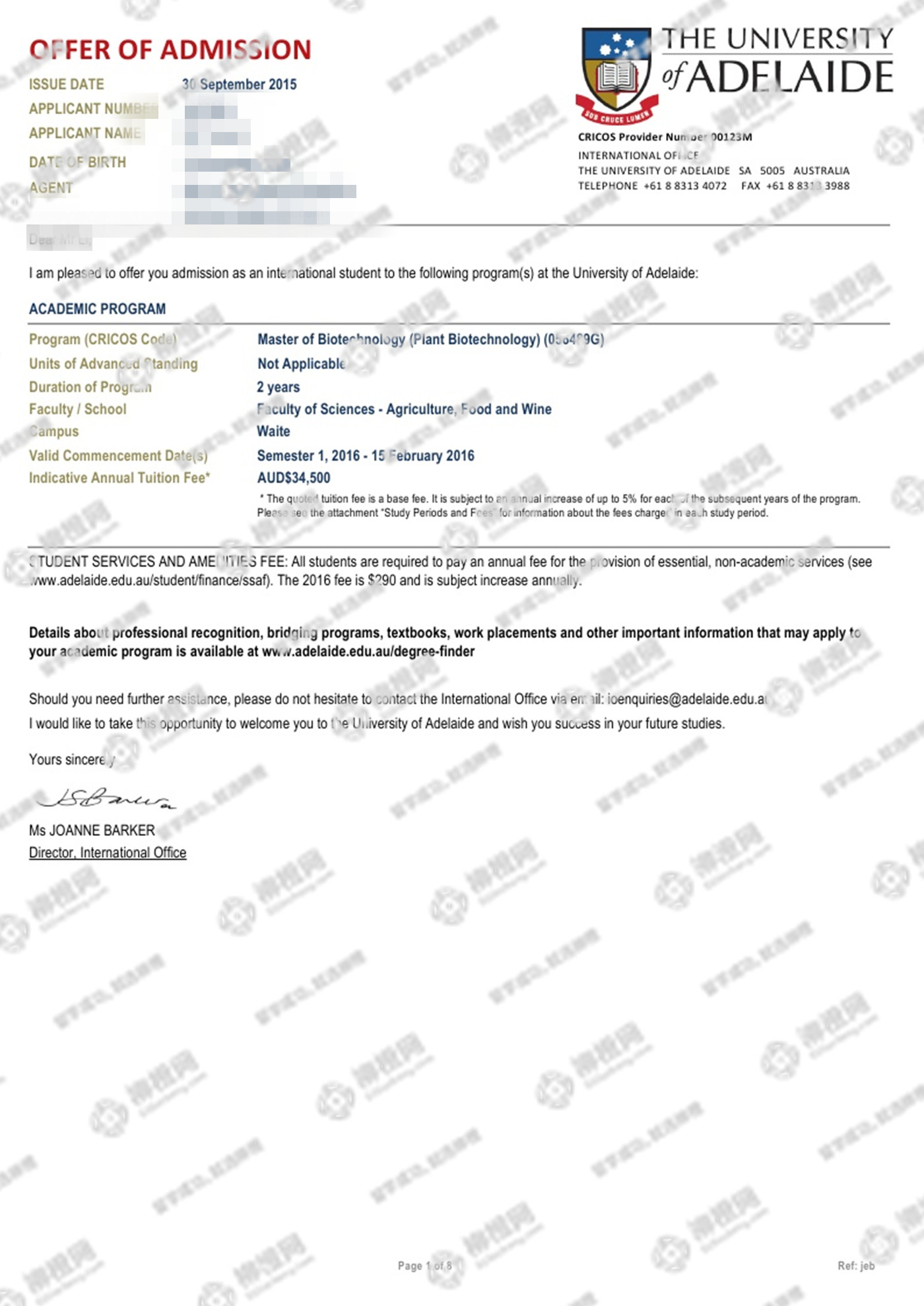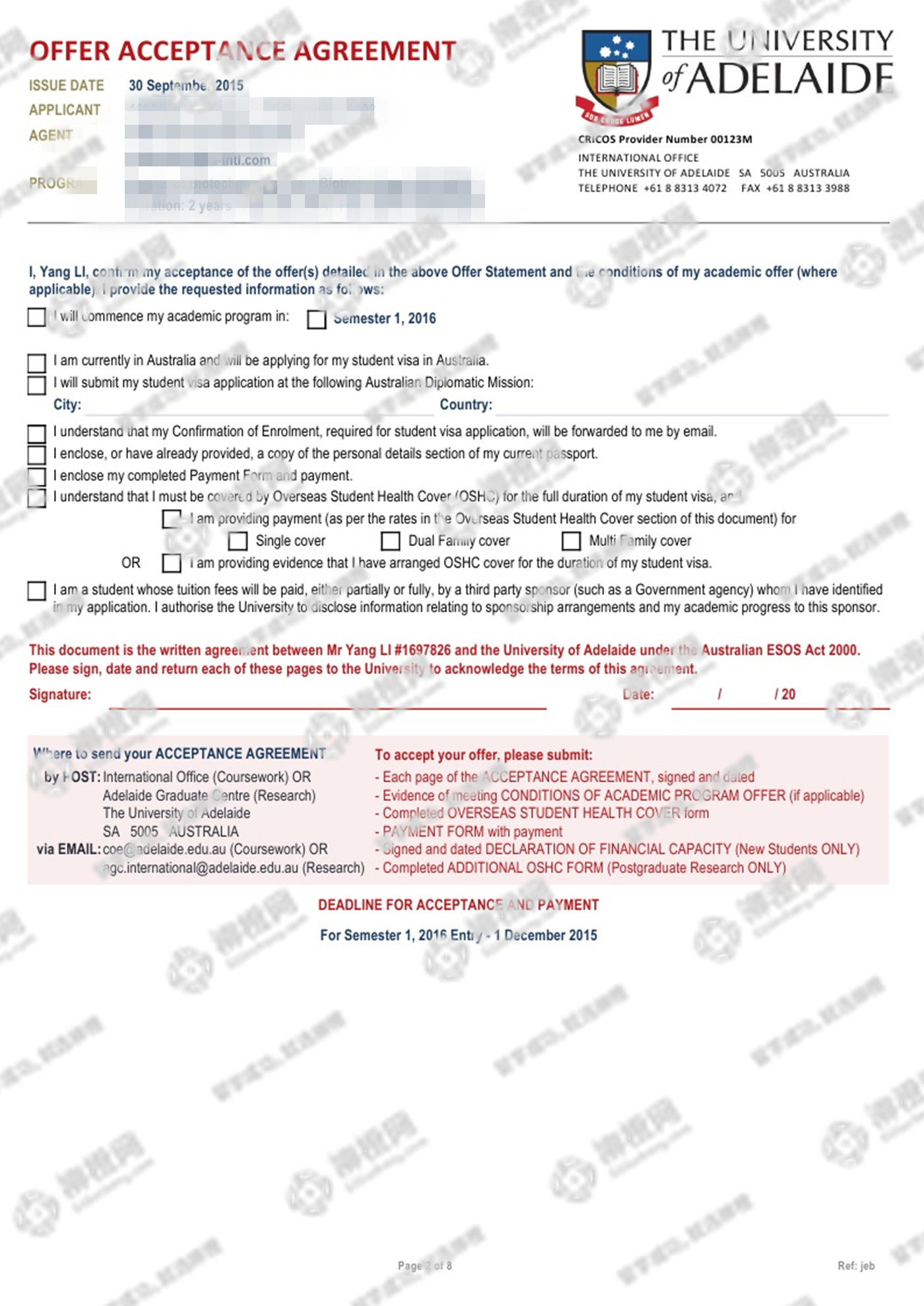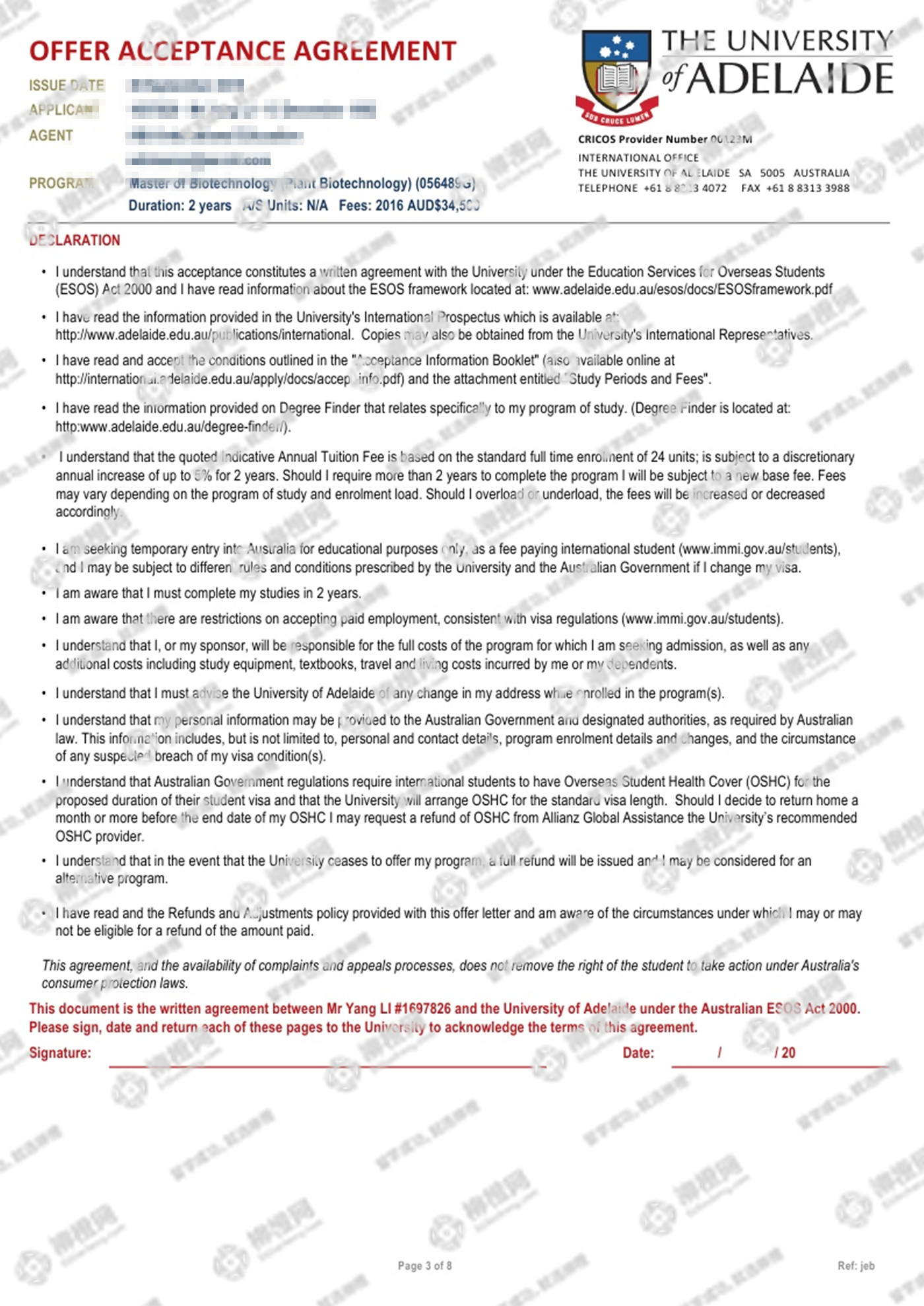 恭喜李同学成功获得澳洲阿德莱德大学offer