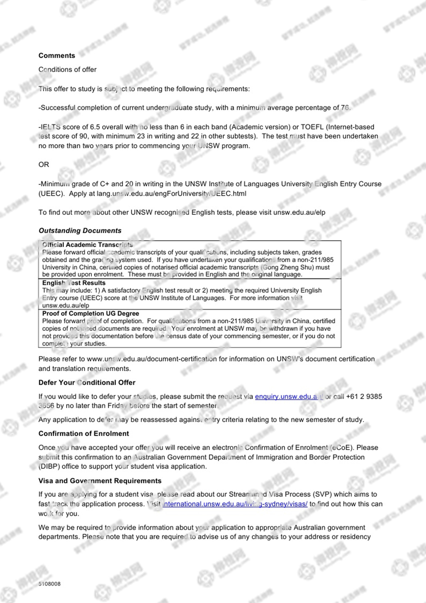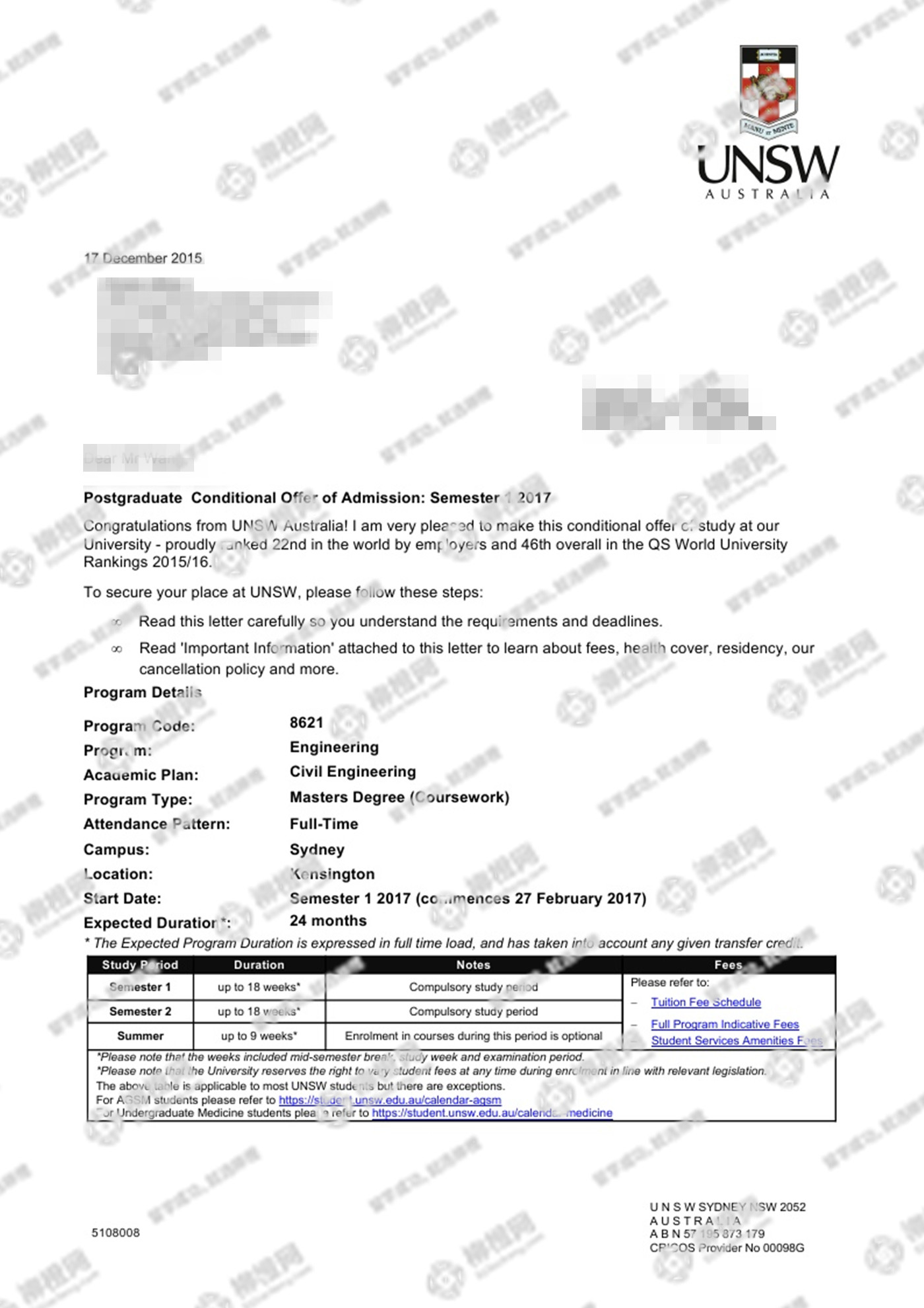 王同学澳洲新南威尔士大学offer