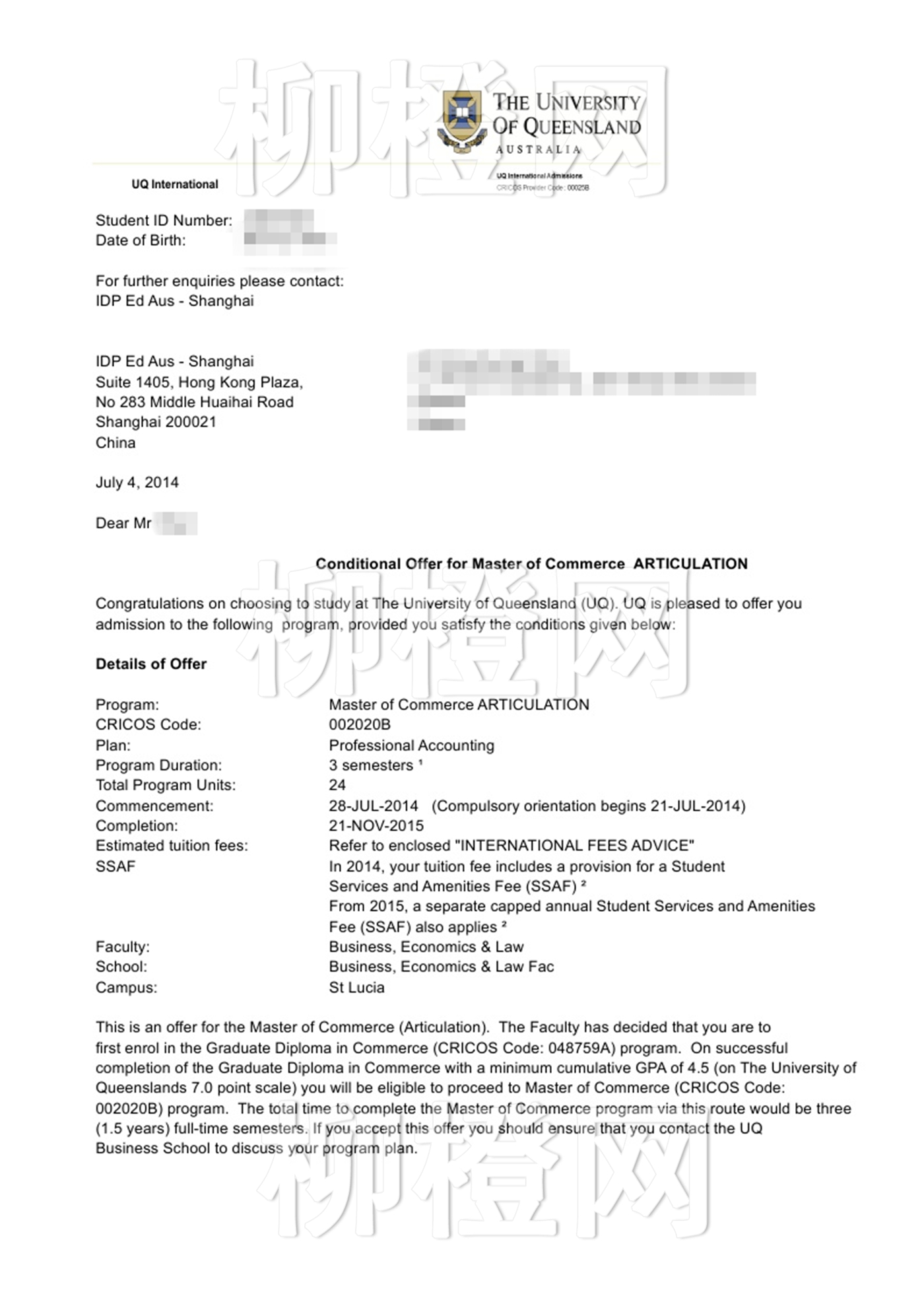 暨南大学经济学专业 GPA2.87成功拿到昆士兰大学的offer