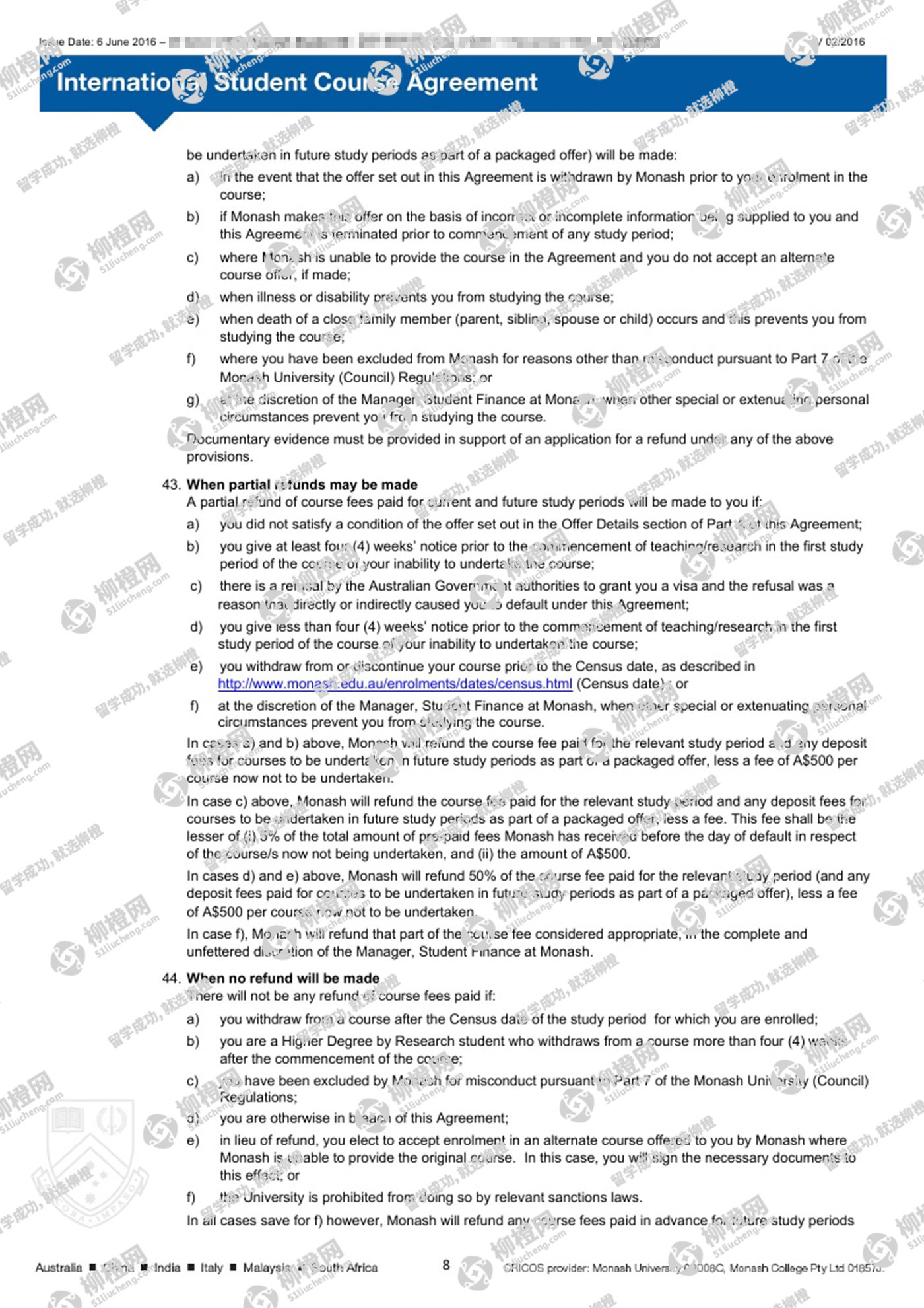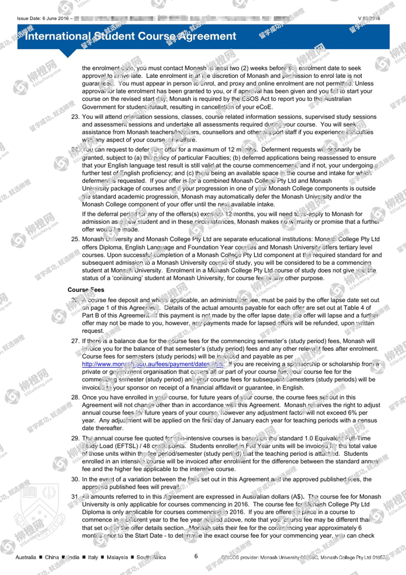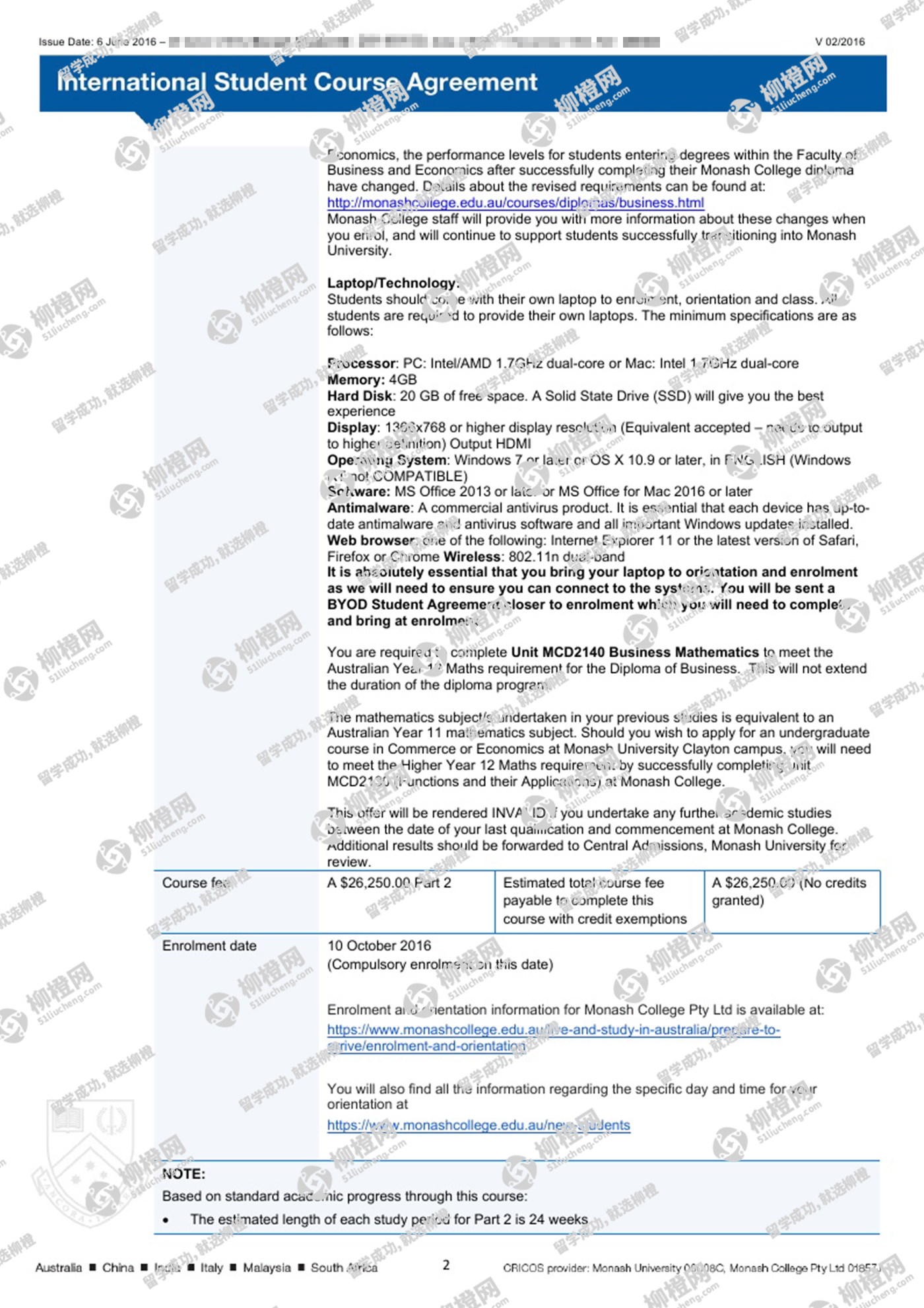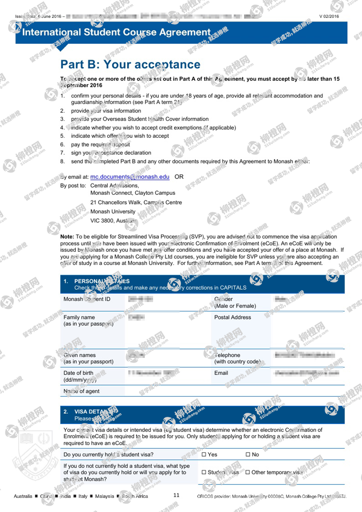 恭喜陈同学在柳橙网刘勇龙老师指导下顺利拿到莫纳什大学商业文凭课程offer