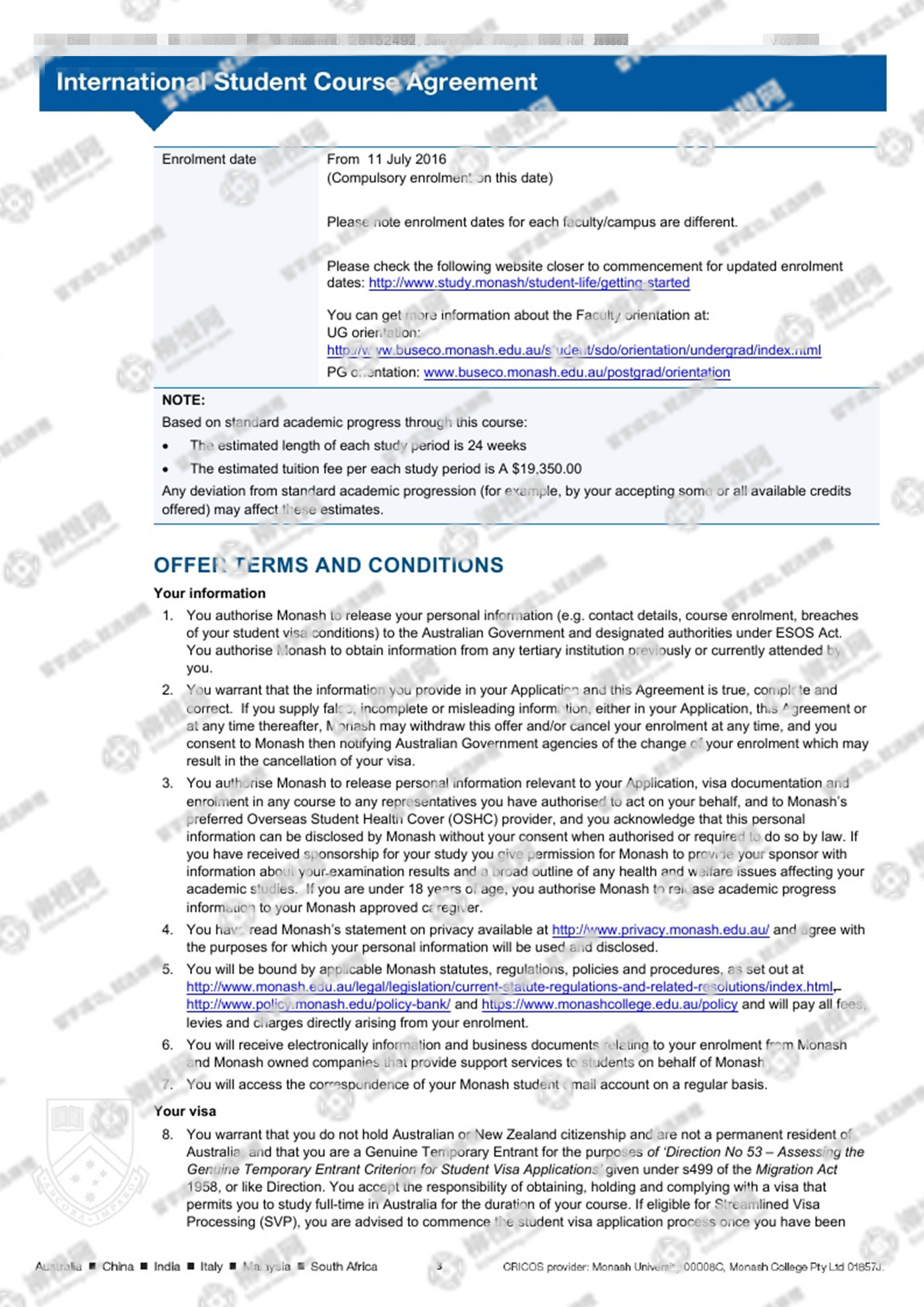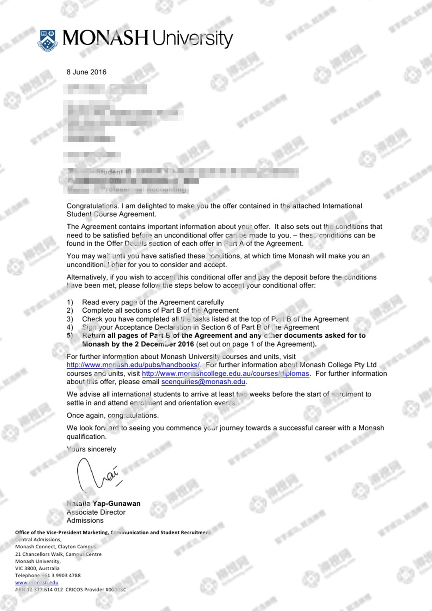 集美大学 bachelor of science 申到莫纳什大学 Master of Professional Accounting