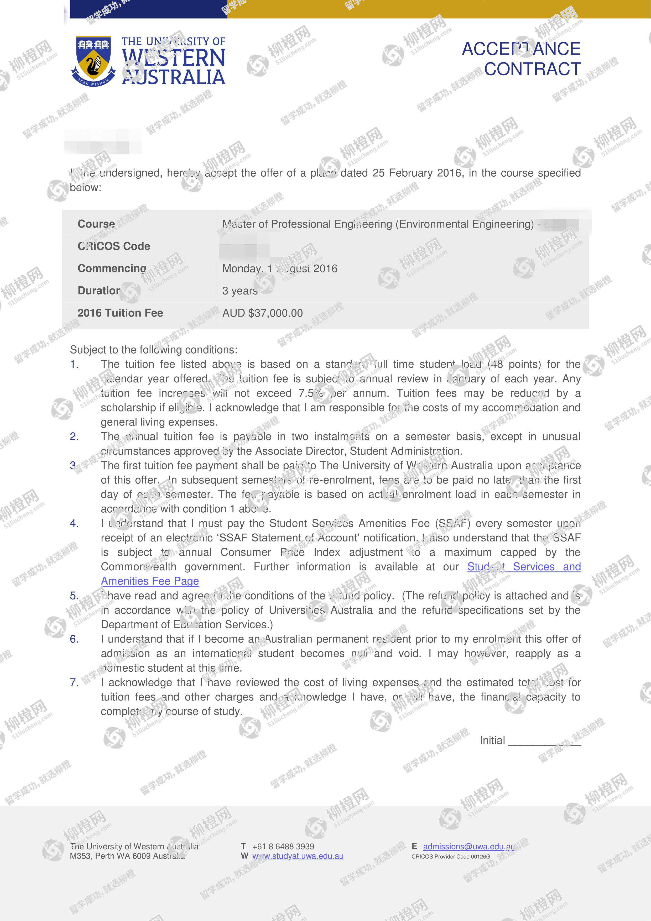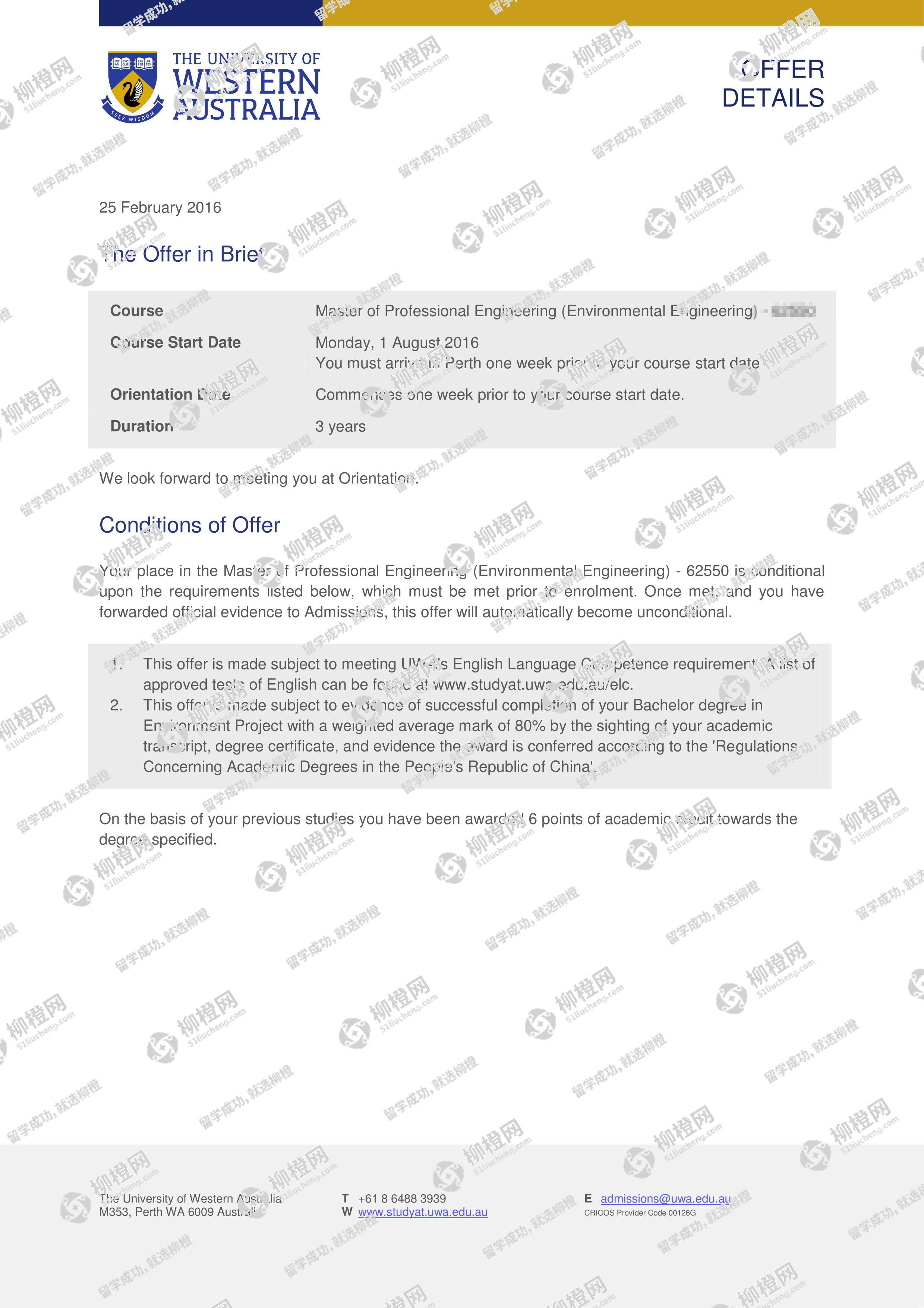 浙江农林大学 环境工程 81.2 申到西澳大学 Master of Professional Engineering-Environmental Engineering